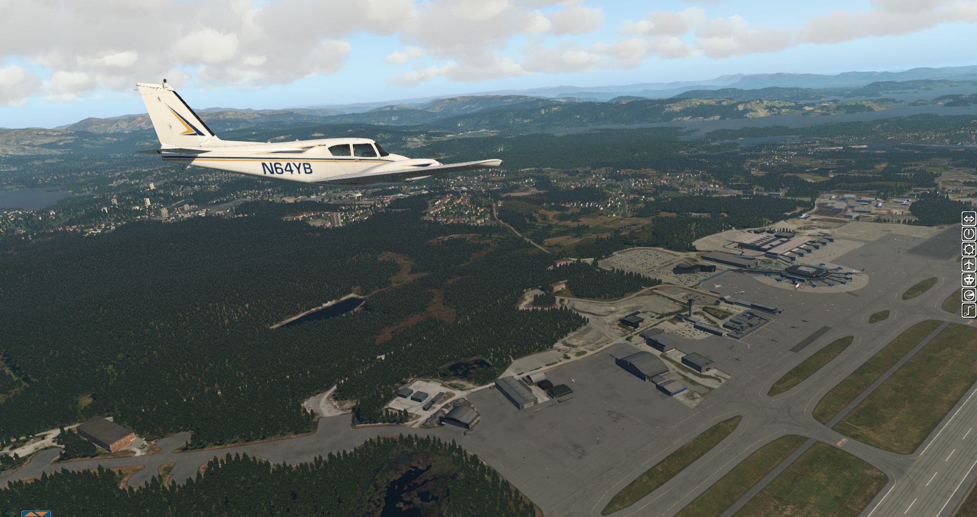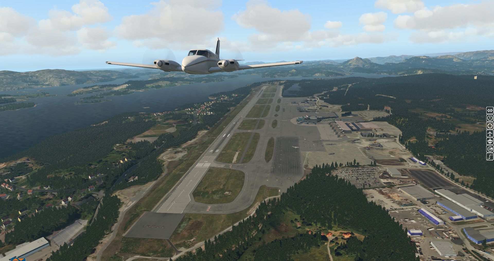 Zurück zum Flughafen Bergen. Wir hatten ja bereits einen Überflug mit einer Twin Comanche, daher setzen wir nun zur Landung an.