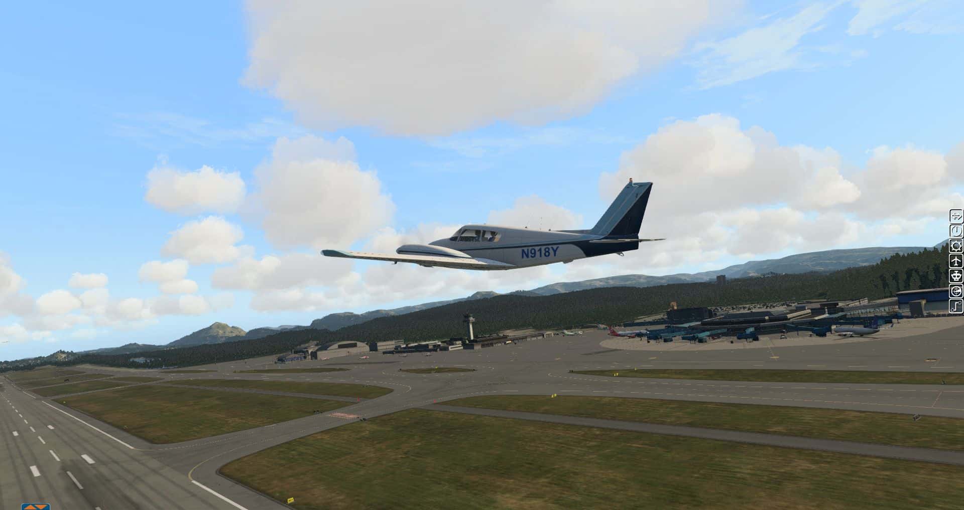 X-Plane schafft es hier nicht nur eine unebene Landebahn aufzubauen, sondern auch das direkte Umfeld plausibel nachzubilden.