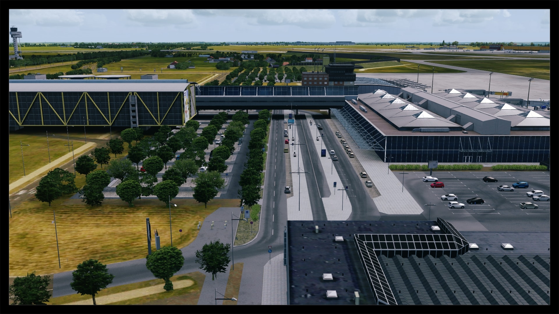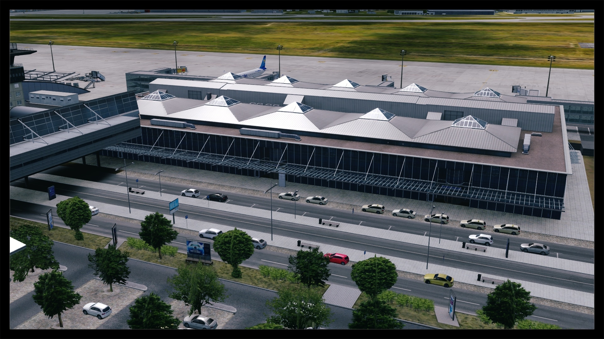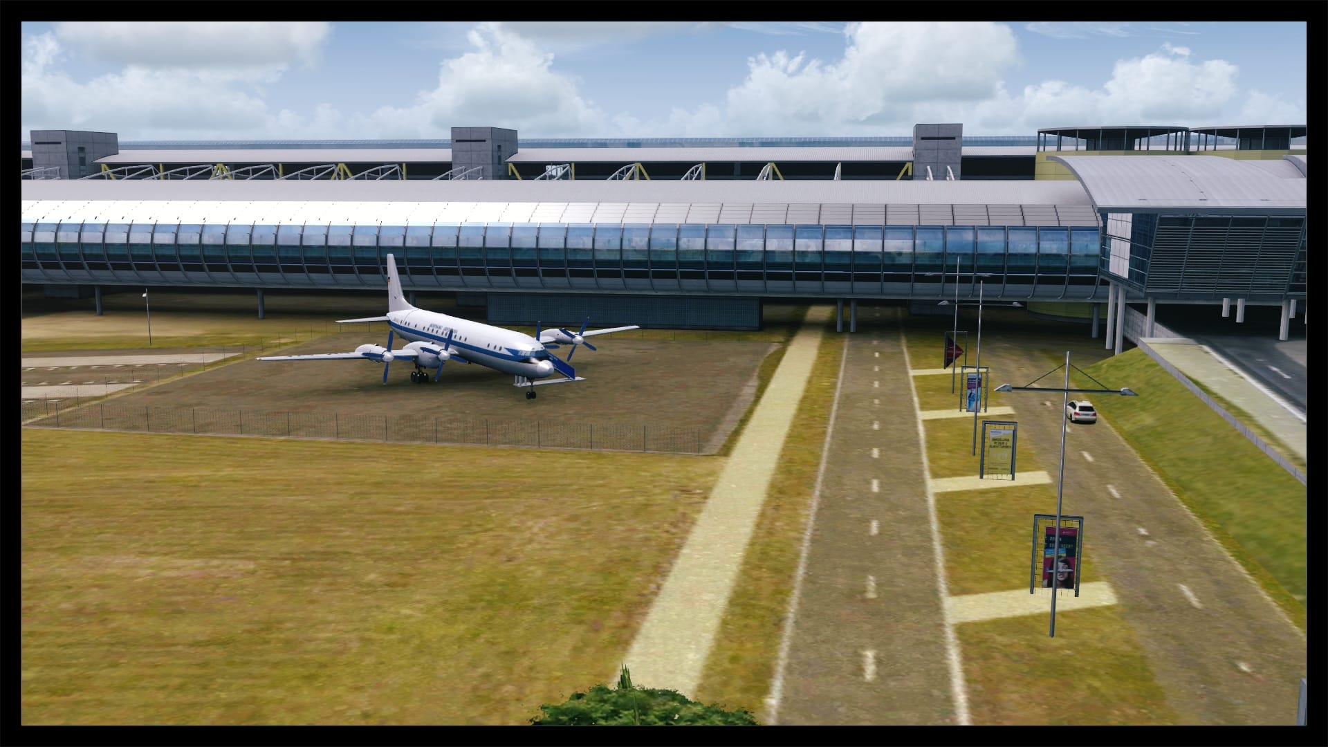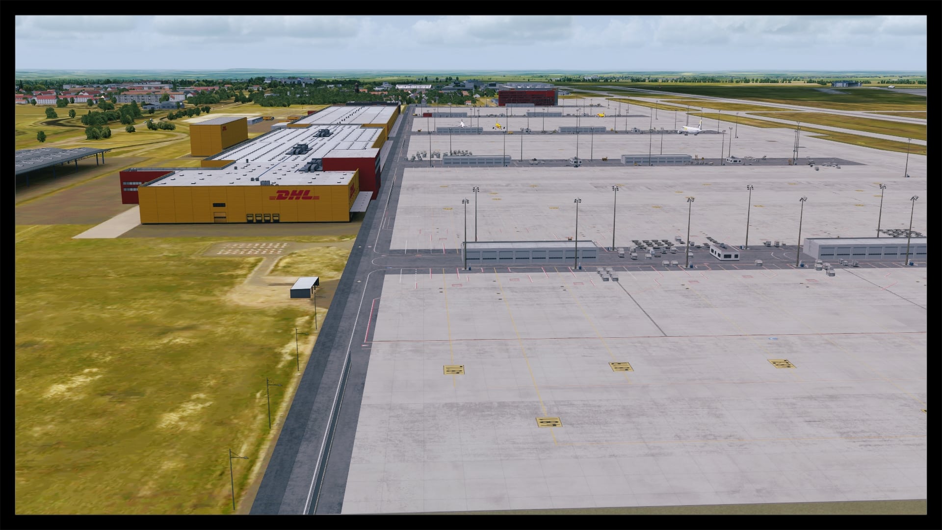 Oftmals, und zum Teil auch berechtigt, wird die Landseite von Addon Flughäfen vernachlässigt – nicht so bei Leipzig. Sicher, Leipzig hat mit dem ausladenden Parkhaus und dem angrenzenden Bahnhof auch eine besondere Infrastruktur, bei der eine ordentliche Umsetzung fast zwingend ist, um eine solide Szenerie zu kreieren. Dies ist Digital Design auch ohne Abstriche gelungen. Die direkte Zufahrt zum Terminal glänzt mit eigenen Straßentexturen inkl. Abnutzungsspuren, Werbetafeln, parkende Fahrzeuge und einer ausgewogenen Beschilderung.
