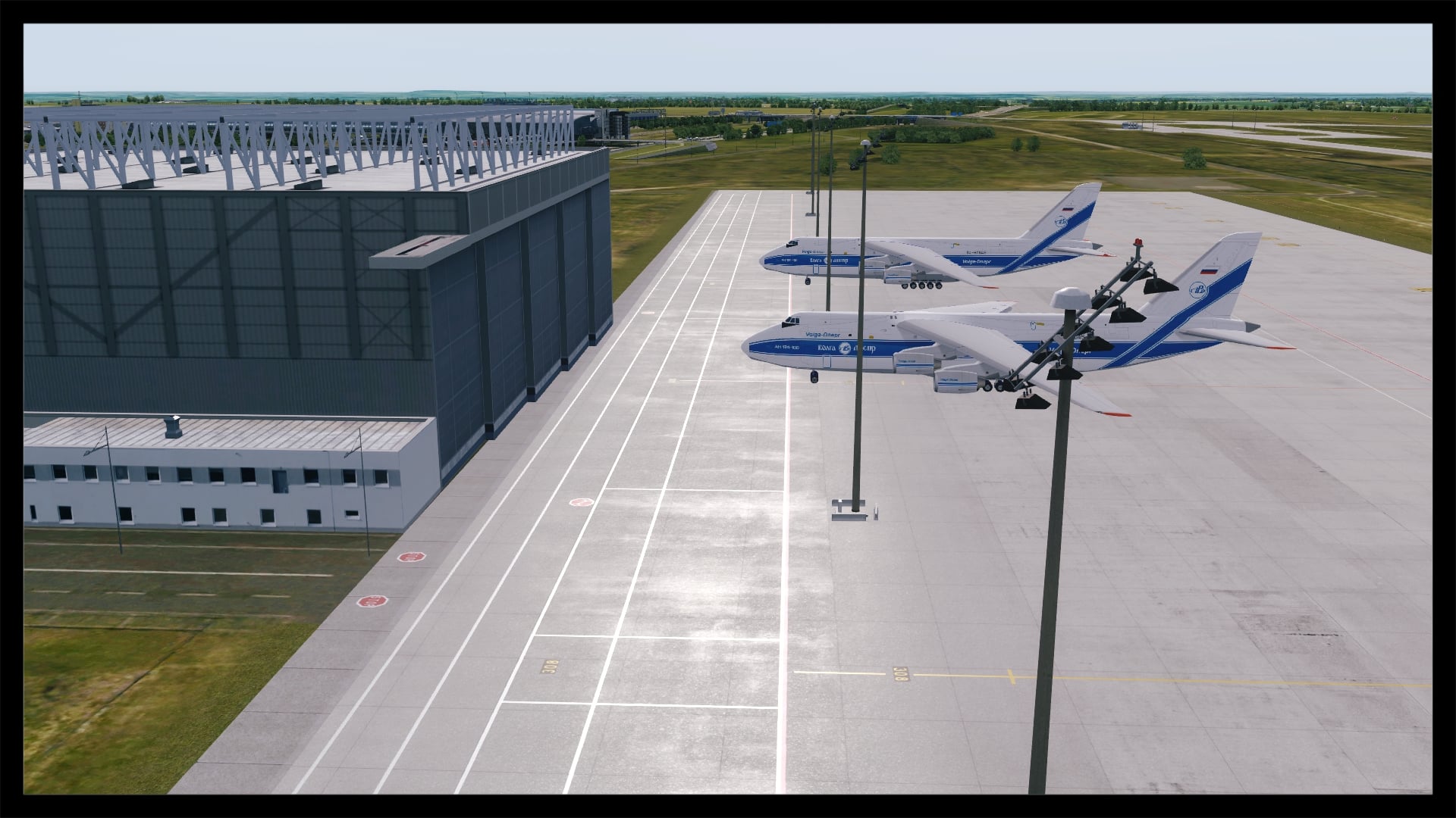 Direkt daneben befindet sich die neu errichtete Wartungshalle inkl. Vorfeld für die Antonovs. Auch hier spiegeln sich die zuvor genannten Qualitäten wieder. Schön zusehen ist es, dass die Qualität kontinuierlich über den gesamten Platz beibehalten wurde und nicht einzelne Areale ausgespart wurden.
