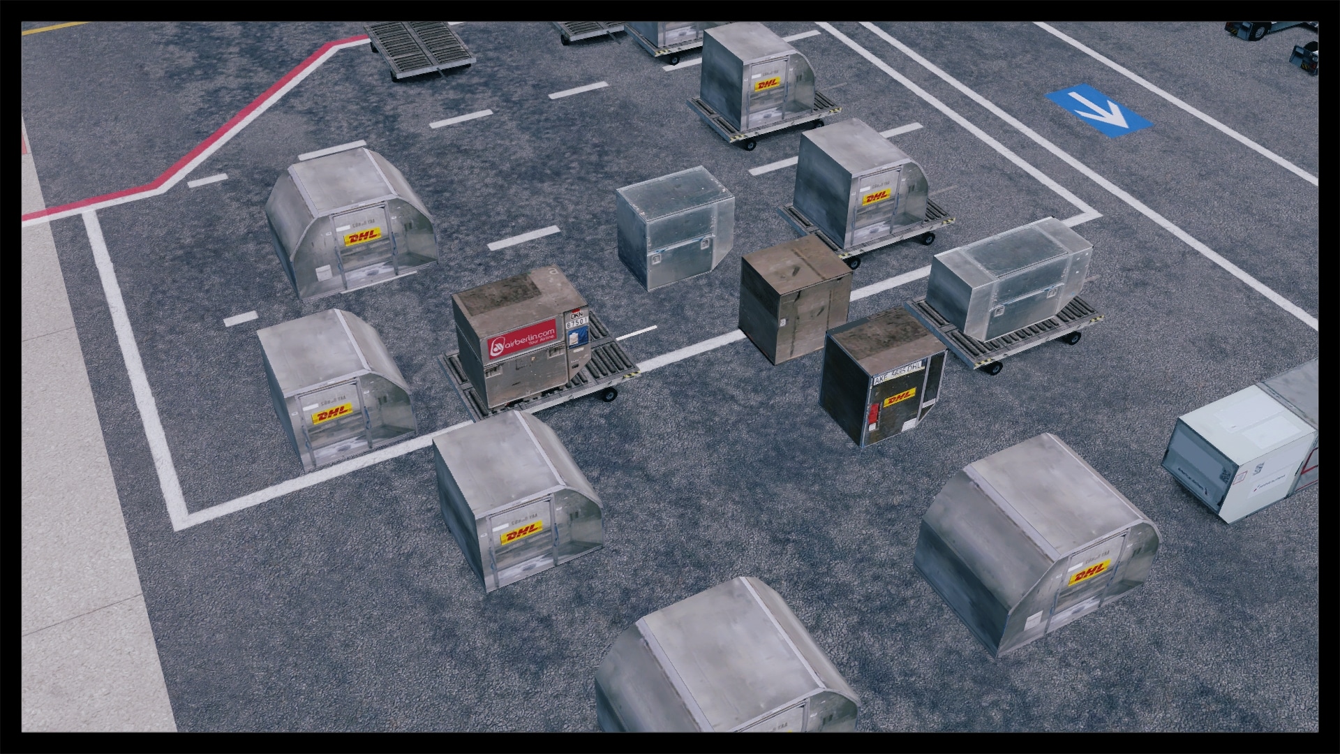 Die Versorgungs- und Abfertigungsfahrzeuge, Container und sonstigen Objekte sind sehr ansehnlich und bereichern das Vorfeld. Besonders die vielen verschiedenen Typen von Fahrzeugen und Containern tragen zum Bild eines geschäftigen Flughafens zu.