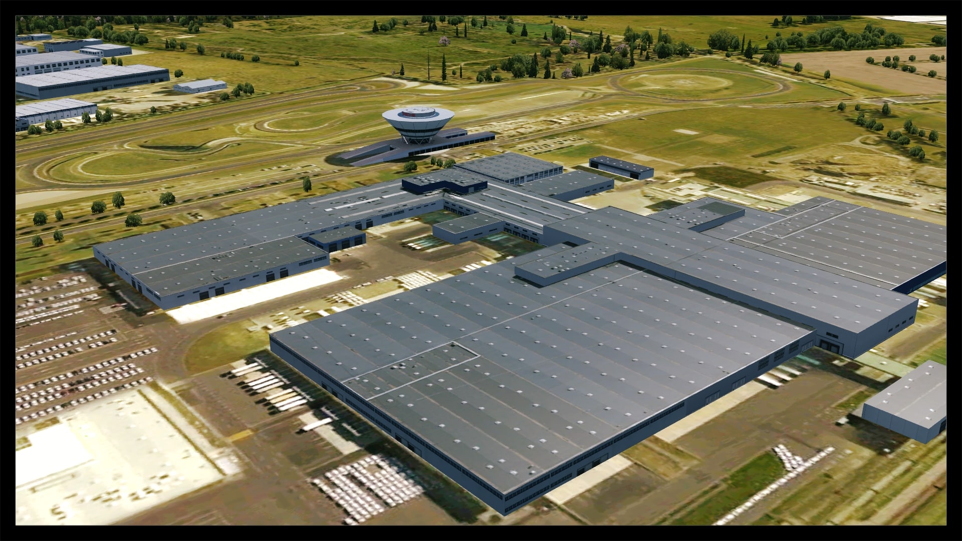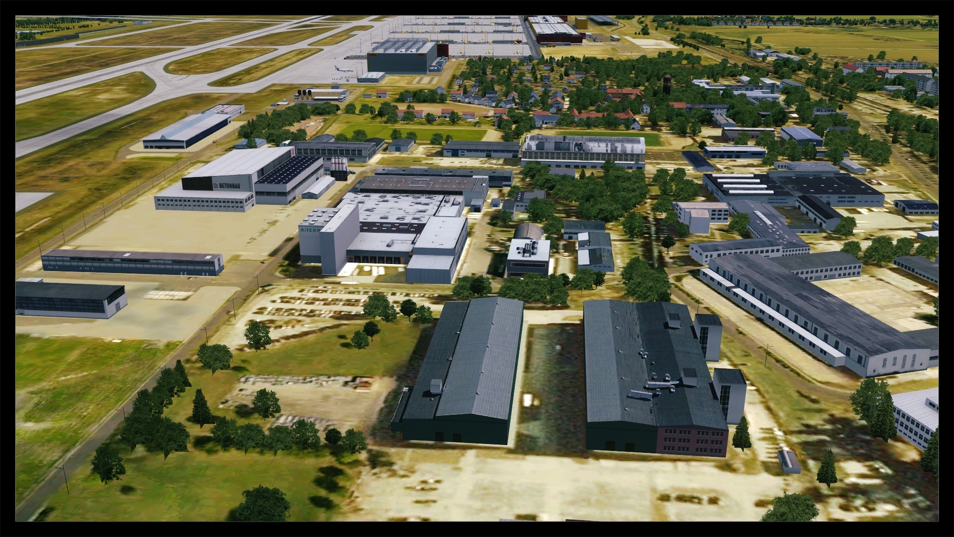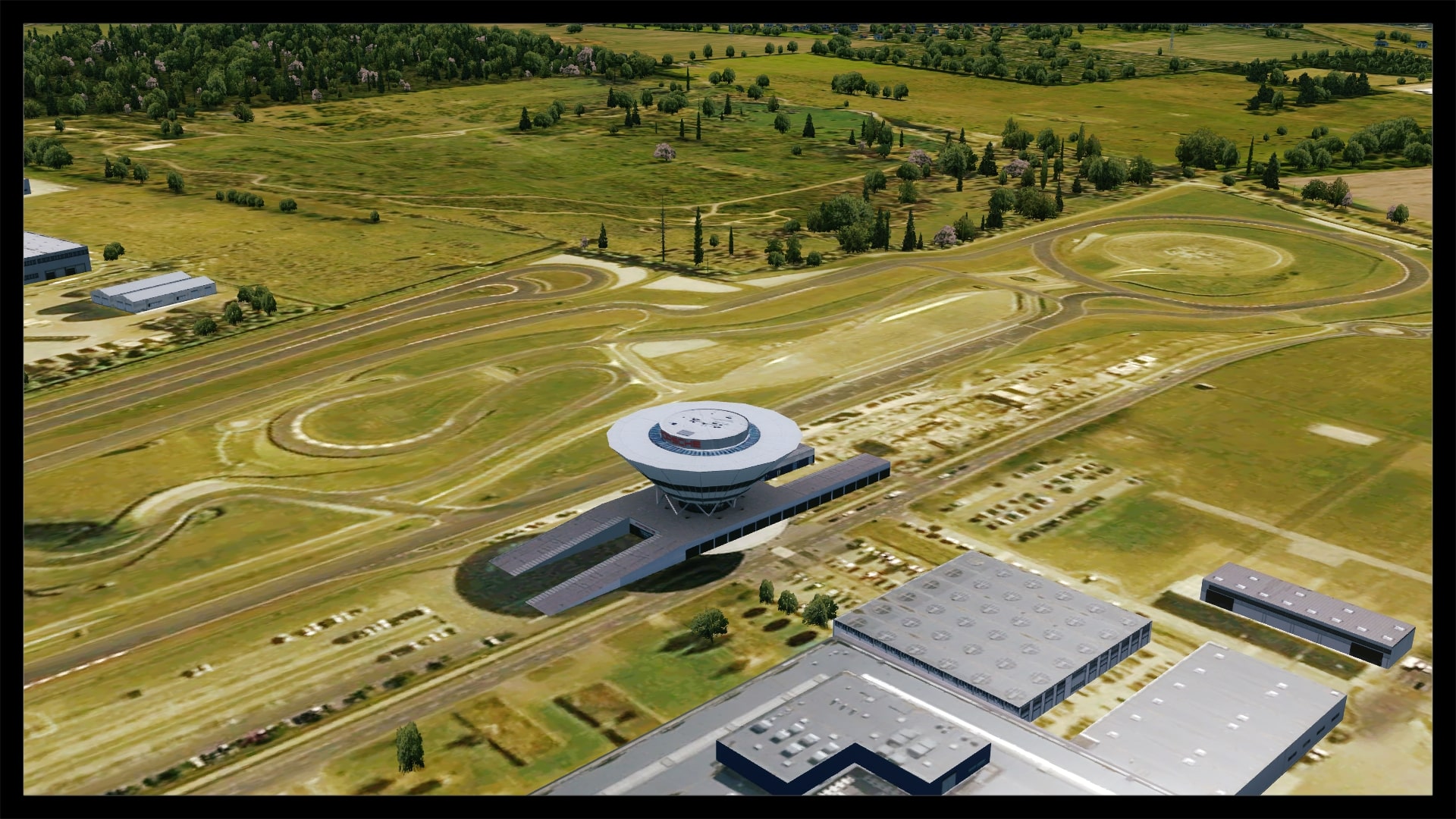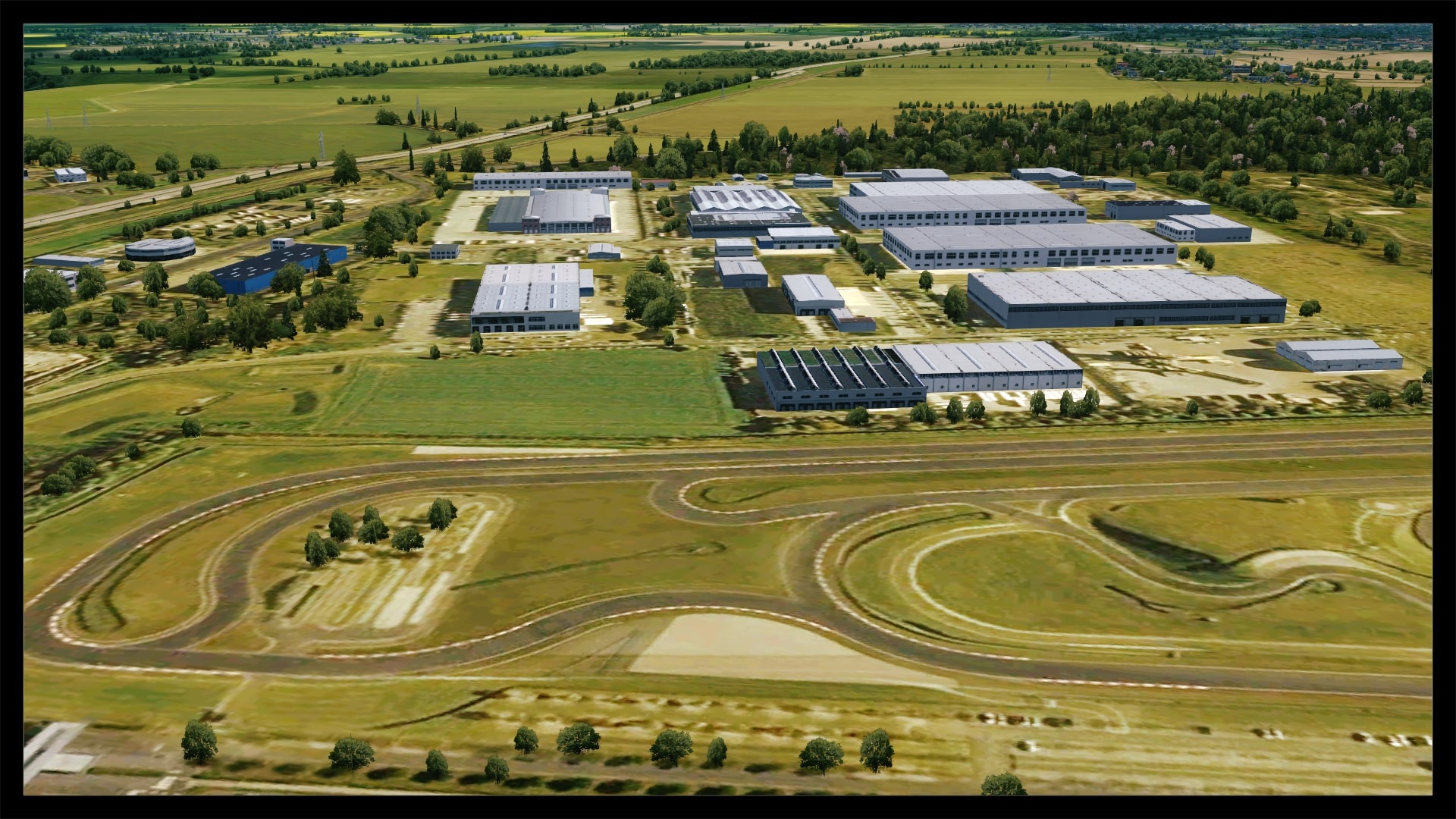 Neben dem Flughafen ist auch das Porschewerk inklusive der Teststrecke mitumgesetzt. Daneben wurden natürlich alle markanten Gebäude der näheren Umgebung modelliert.
