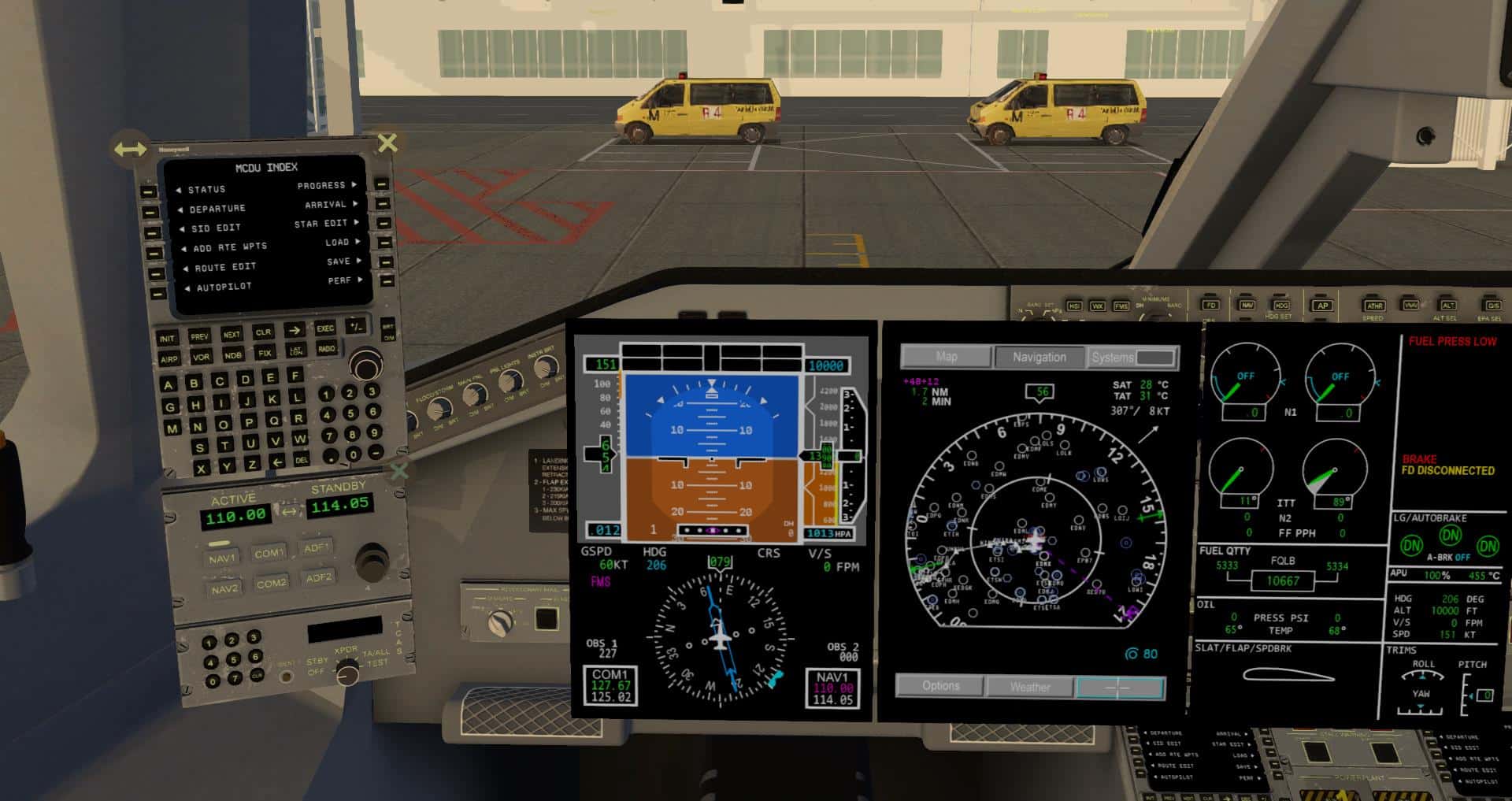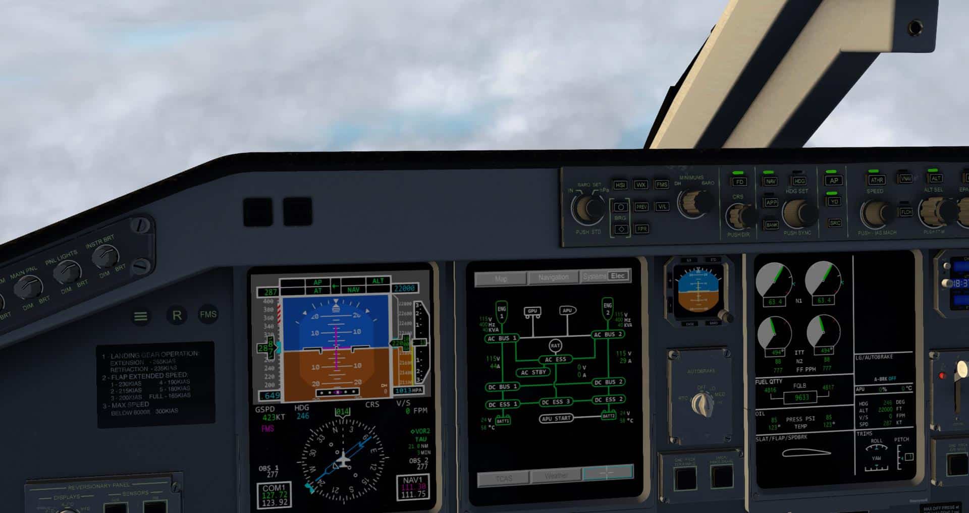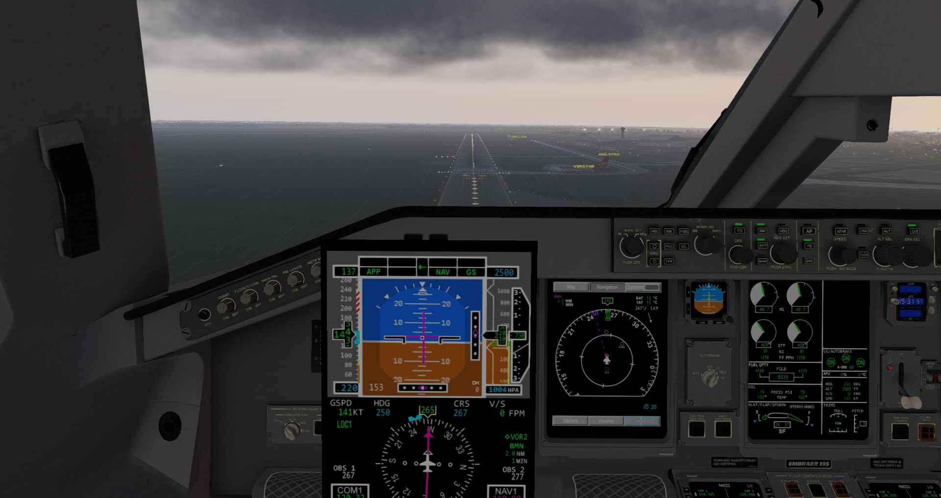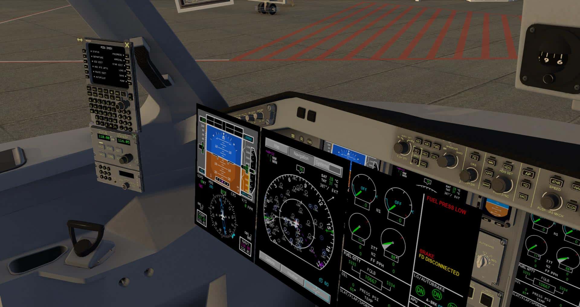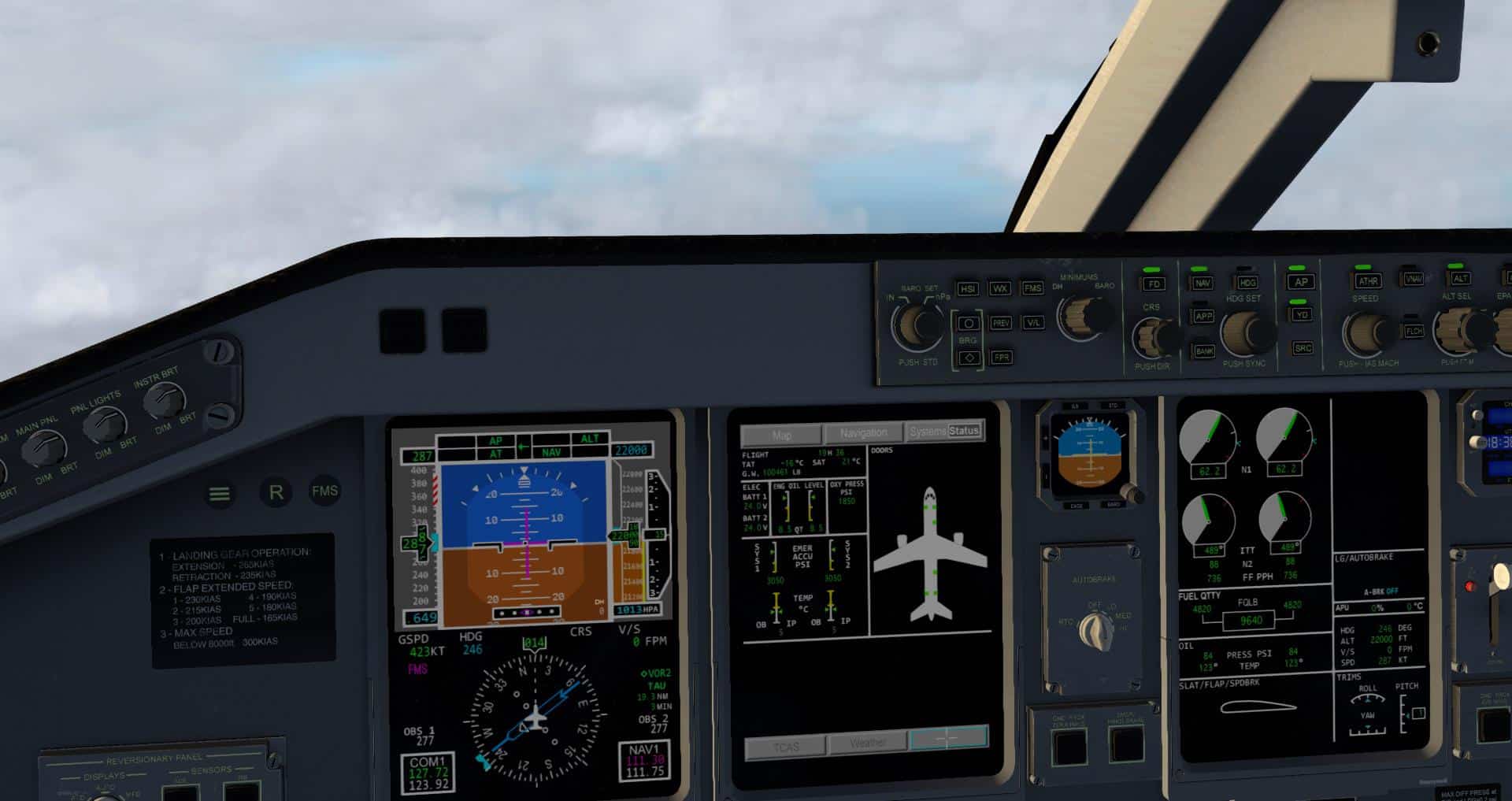 Systemtiefe? Nun ja… das ist wohl der Punkt, auf den ich vorher am meisten gehofft hatte. Eine Embraer mit einigermaßen vernünftiger Systemtiefe war meine Hoffnung. So etwas grob in die Richtung, die JARDesign so gegangen ist. Nichts, womit man Study-Level-Sim-Liebhaber (der ich auch, aber nicht ausschließlich, bin) hinter dem Ofen hervorholen möchte, aber eine solide Geschichte, die sich dem realen Vorbild schon gut annähert.