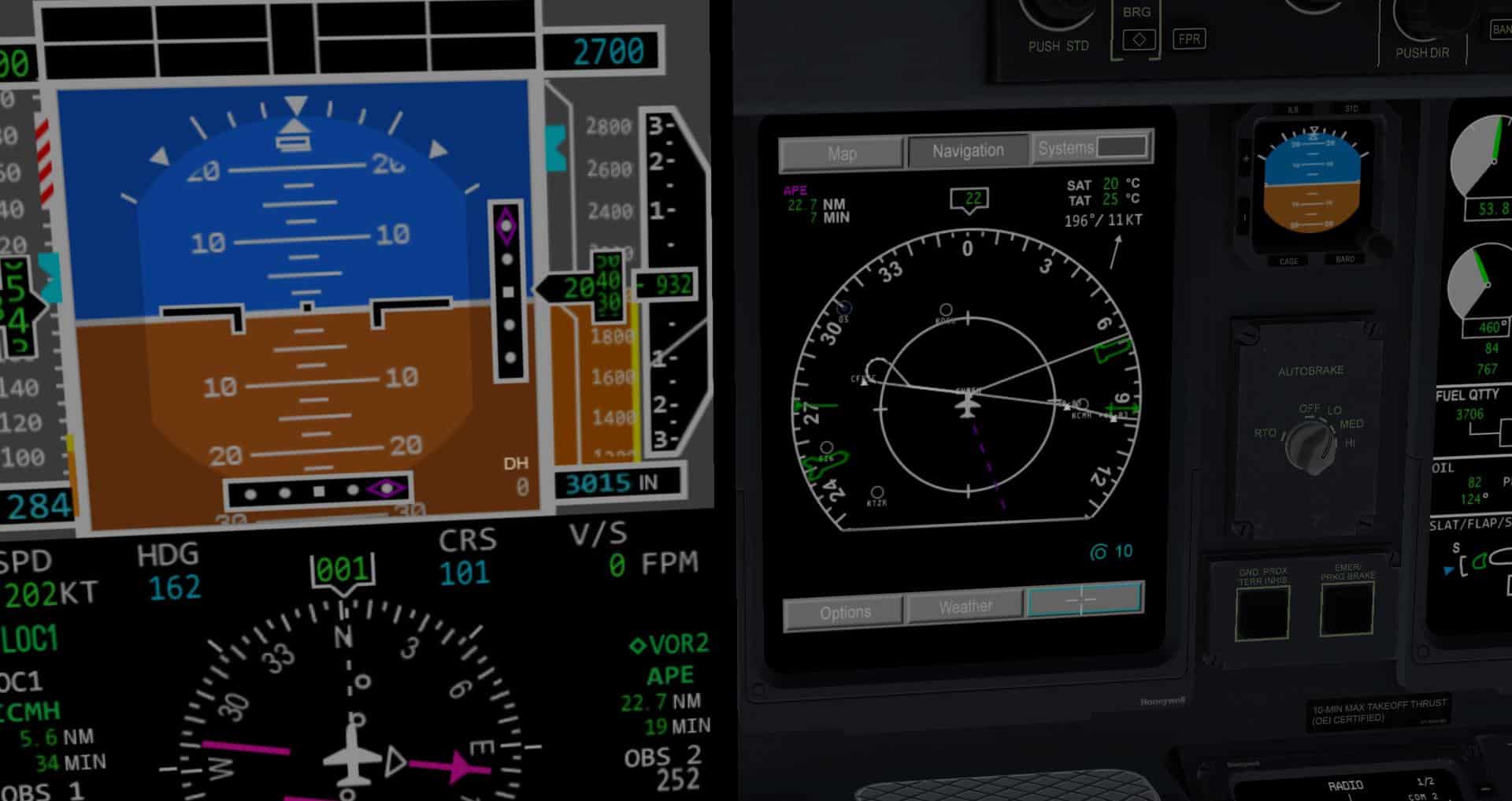 Zu der niedrigen Bildschirmauflösung von PFD/MFD: Ich hab mir das mal in PlaneMaker angeschaut. Da ginge noch mehr. Es ist noch viel ungenutzter Platz da, den man für höhere Auflösungen verwenden könnte (maximal 2048×2048 dürfen alle PlaneMaker-Instrumente zusammengenommen einnehmen, d.h. PFD, MFD, usw.). Damit das gut aussieht, müsste man dann aber auch z.B. Speed Tape und Altitude Tape auf dem PFD selbst erstellen — das geht auch mit PlaneMaker, da braucht man nur vier bis fünf Zeilen Plugin-Code für (und das SASL-Plugin wird ja eh von X-Crafts genutzt bzw. in X-Plane 11 ginge das sogar mit dem nativen xLua). Mit PlaneMaker + Lua kann man VIEL machen (siehe Zibos 737-Modifikation) und es muss optisch NICHT niedrig aufgelöst sein.