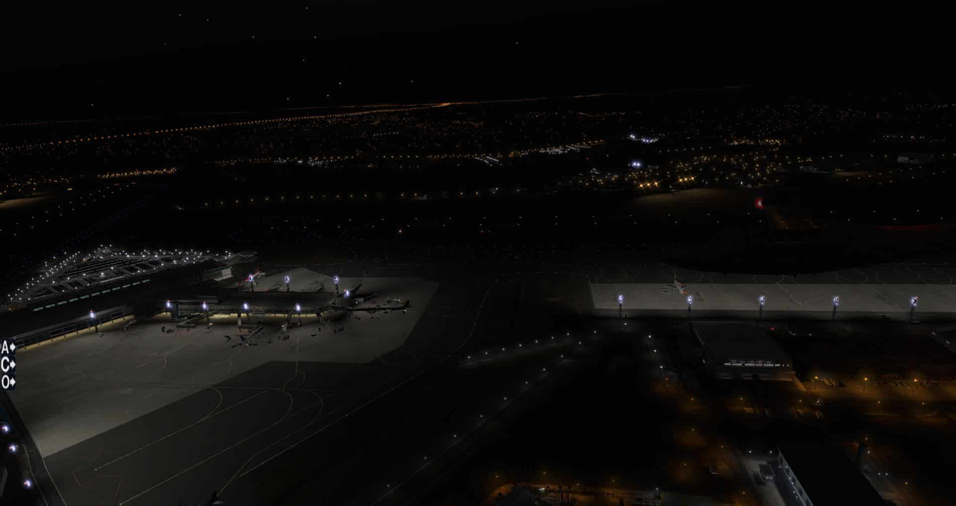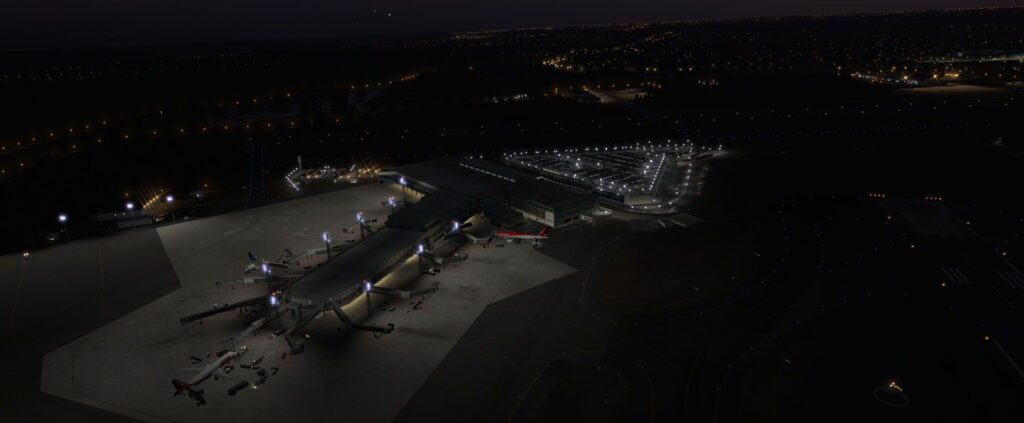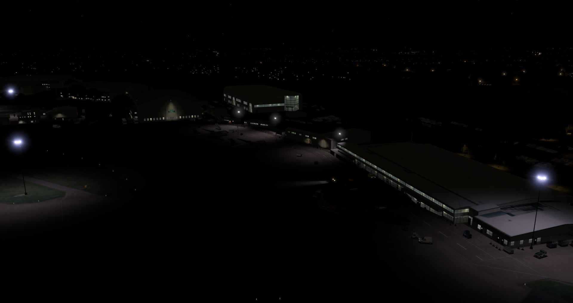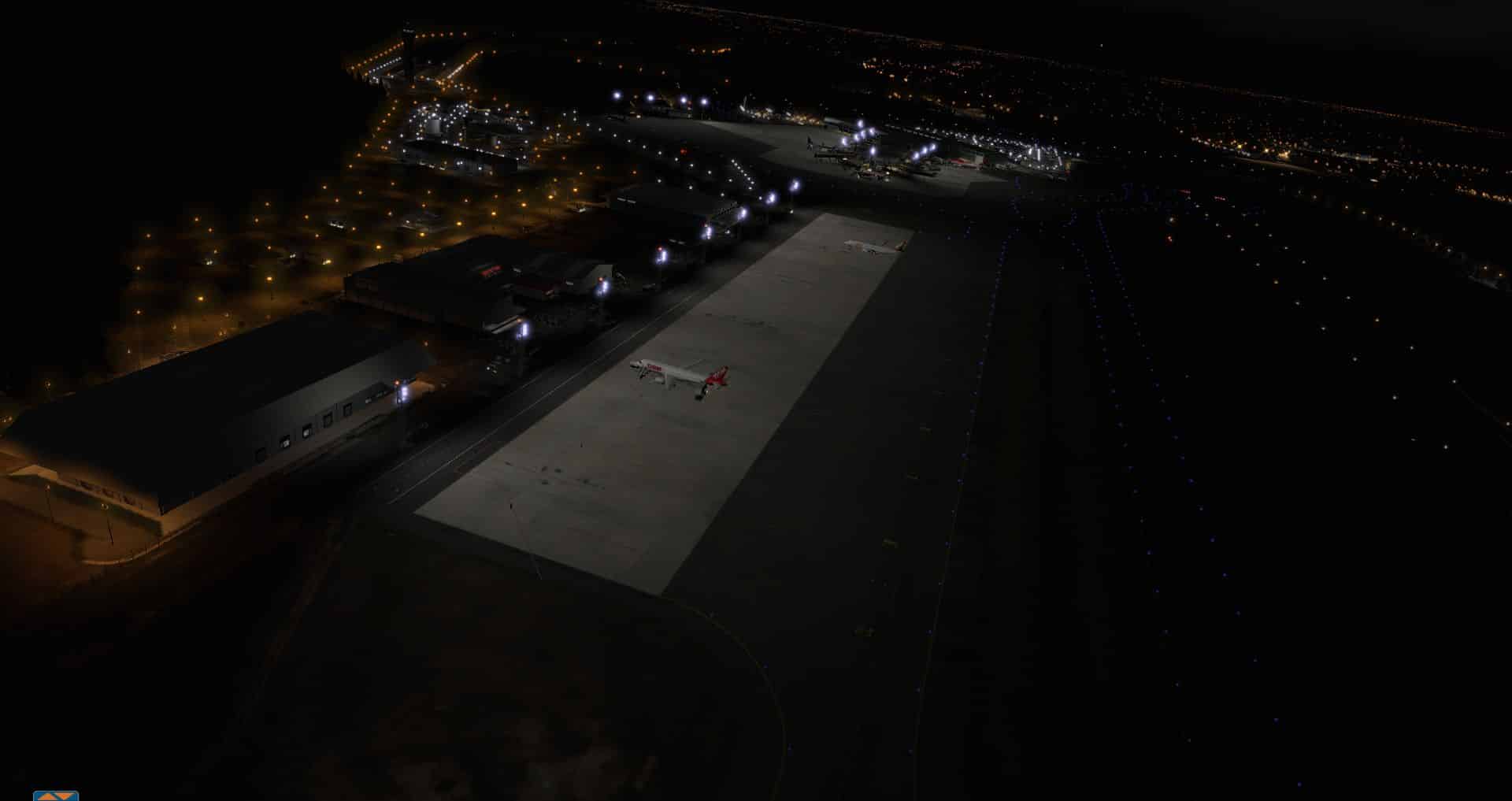 Die Nachtbleuchtung macht schon hier einen ordentlichen Eindruck, wie auch die recht dezenten Bodentexturen. Doch der Flughafen macht etwas her.