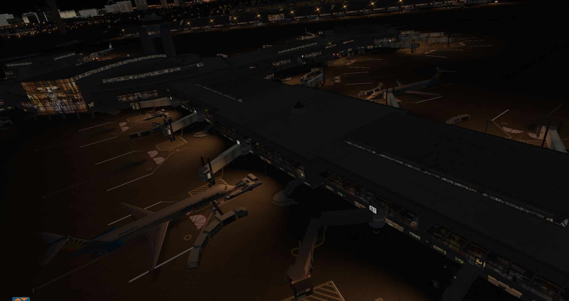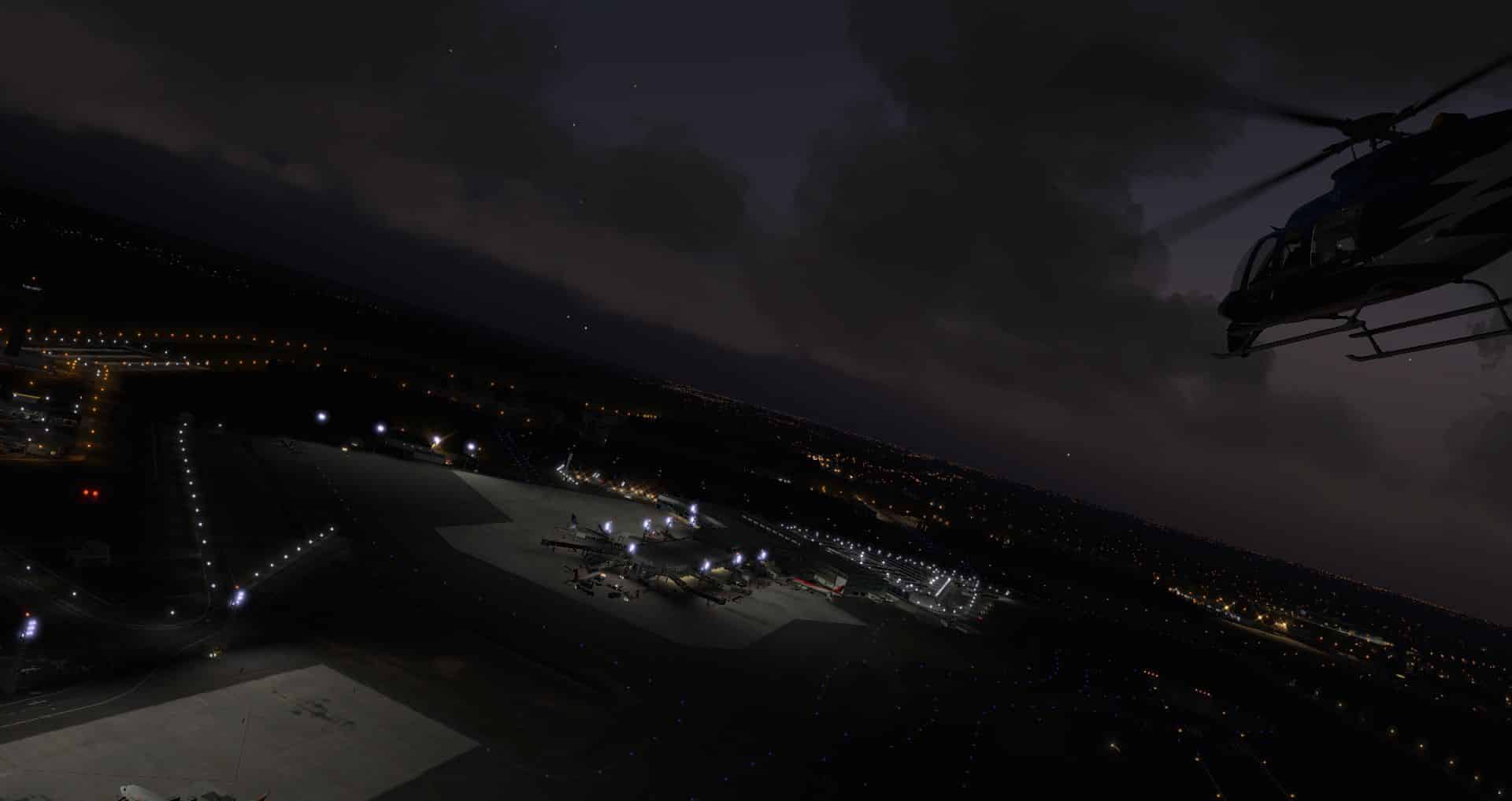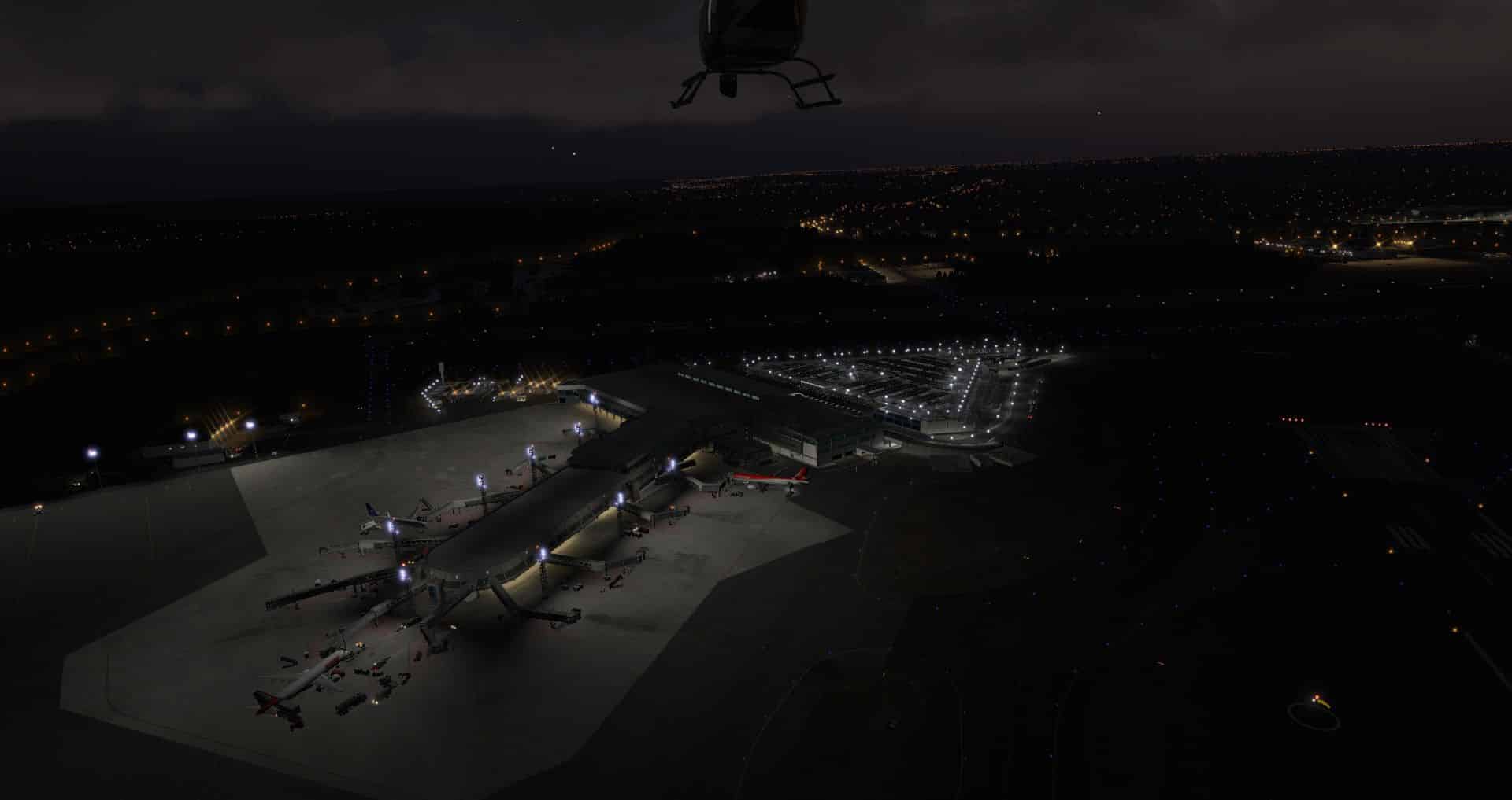 Die Nachtbleuchtung macht schon hier einen ordentlichen Eindruck, wie auch die recht dezenten Bodentexturen. Doch der Flughafen macht etwas her.