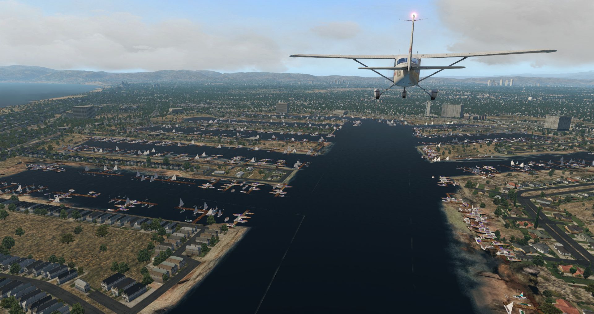 Wenn wir hier einmal die Yachten, Bootsanleger und die Wolken ausblenden (wobei die Default Wolken ja auch nicht mehr so viel schlechter sind) ist dies X-Plane 11 im Auslieferungszustand.