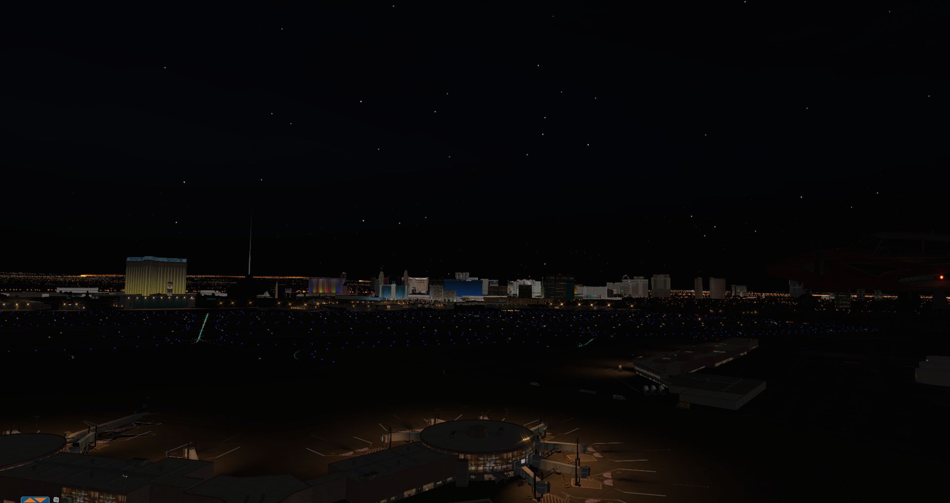 Wenn man mal davon absieht das Tom Curtis doppelt so viele Kasinos darstellt und auf seinen Flughafen Custom Gebäude nutzt, steht Laminars kostenlose Erweiterung der Payware in nichts nach. Die Kasinos bei Nacht sind sogar deutlich besser.