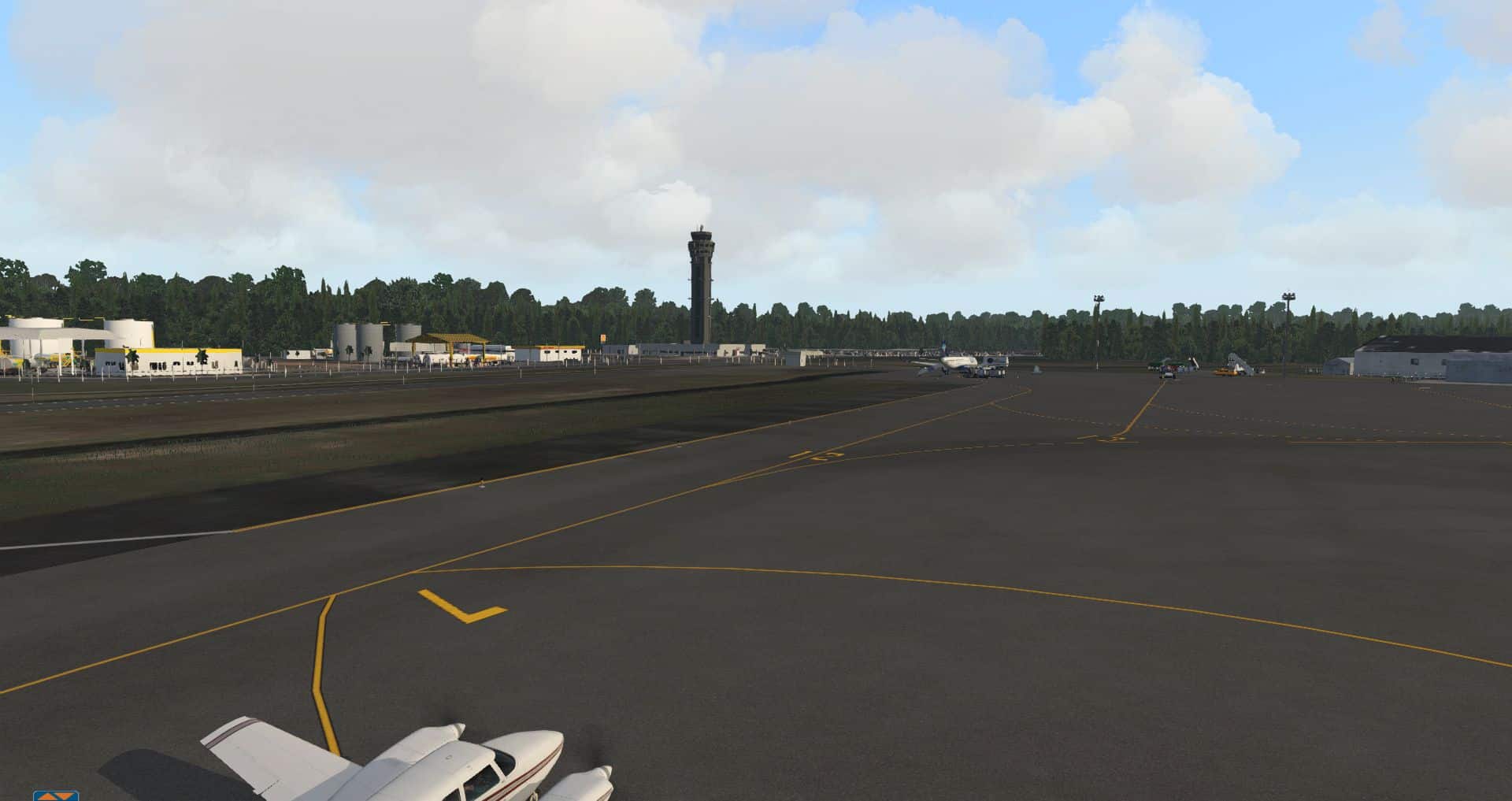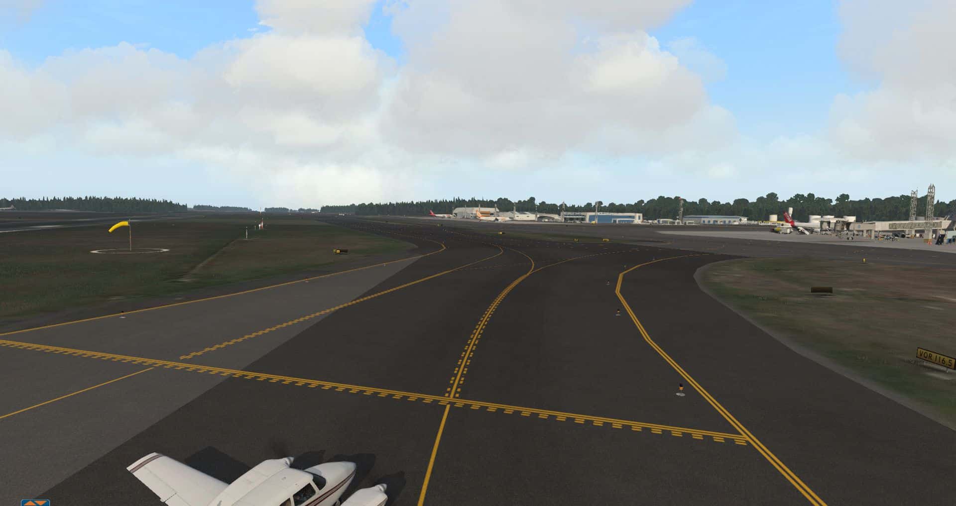 Nach dem Start sehen wir, dass der ganze Flughafen auf einer recht detaillierten, langgestreckten Bodentextur beruht. Doch wenn man ehrlich ist erinnern die verwendeten Bäume nicht unbedingt an Brasilien.