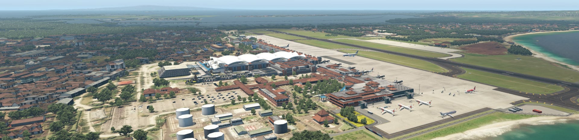 Der Flughafen Bali war 2016 für knapp 20.000.000 Passagiere verantwortlich und ist damit der zweitgrößte Flughafen in Indonesien. Während der Flughafen von deutschen Airlines aktuell nicht angeflogen wird, bietet die Piste 09/27 mit drei Kilometern Länge dennoch ausreichend Platz und Reserven für alle gängigen Flugmuster, wenn man mal realistisch von der A380 absieht, die mit der Bahnlänge ohne weiteres klar käme, allerdings eine zu hohe ICAO Rescue Fire Fighting Category (RFF) erfordert. Aber das muss im Simulator ja nun auch niemanden interessieren.