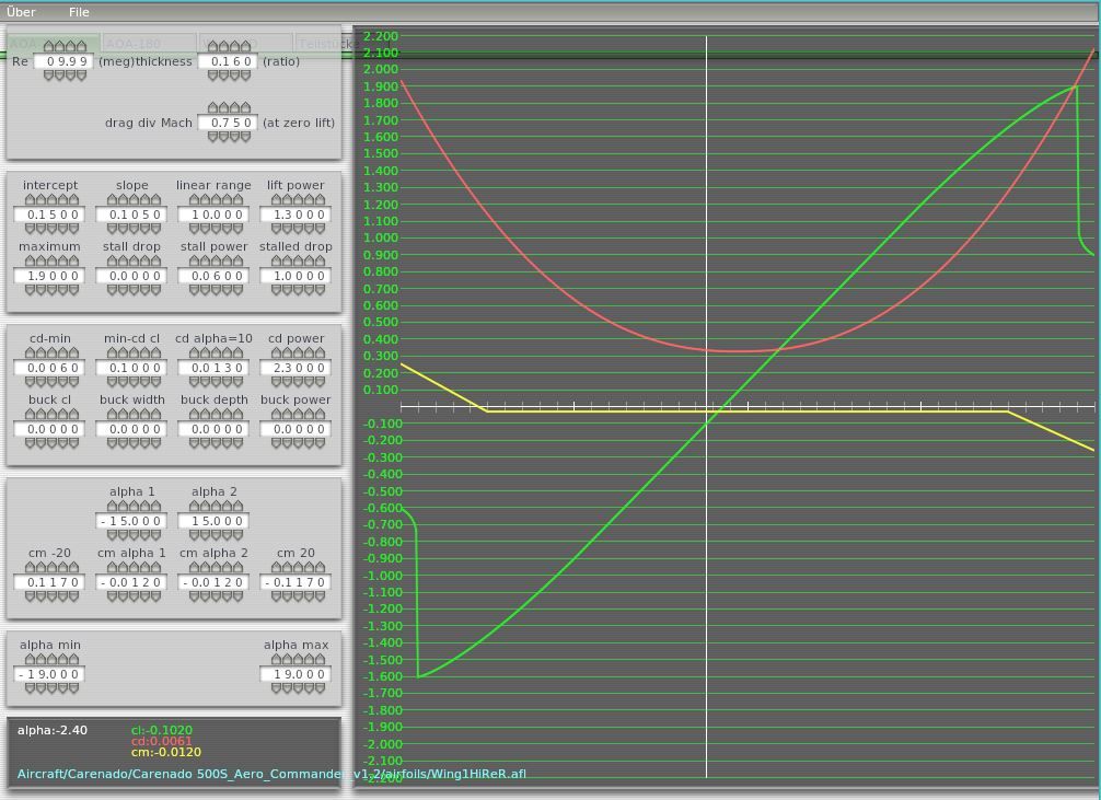 X-Plane hat jedoch ein eigenses Tool dabei um diese Dateien zu lesen, den Airfoil Maker. Mit dem erhalten wir zum Beispiel bei der Default Cessna 172 folgende Anzeige:
