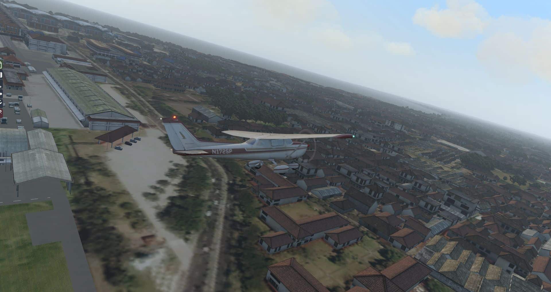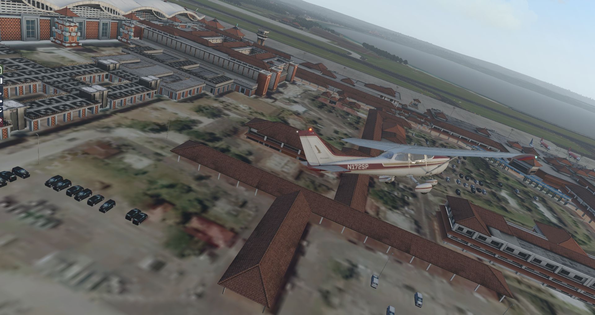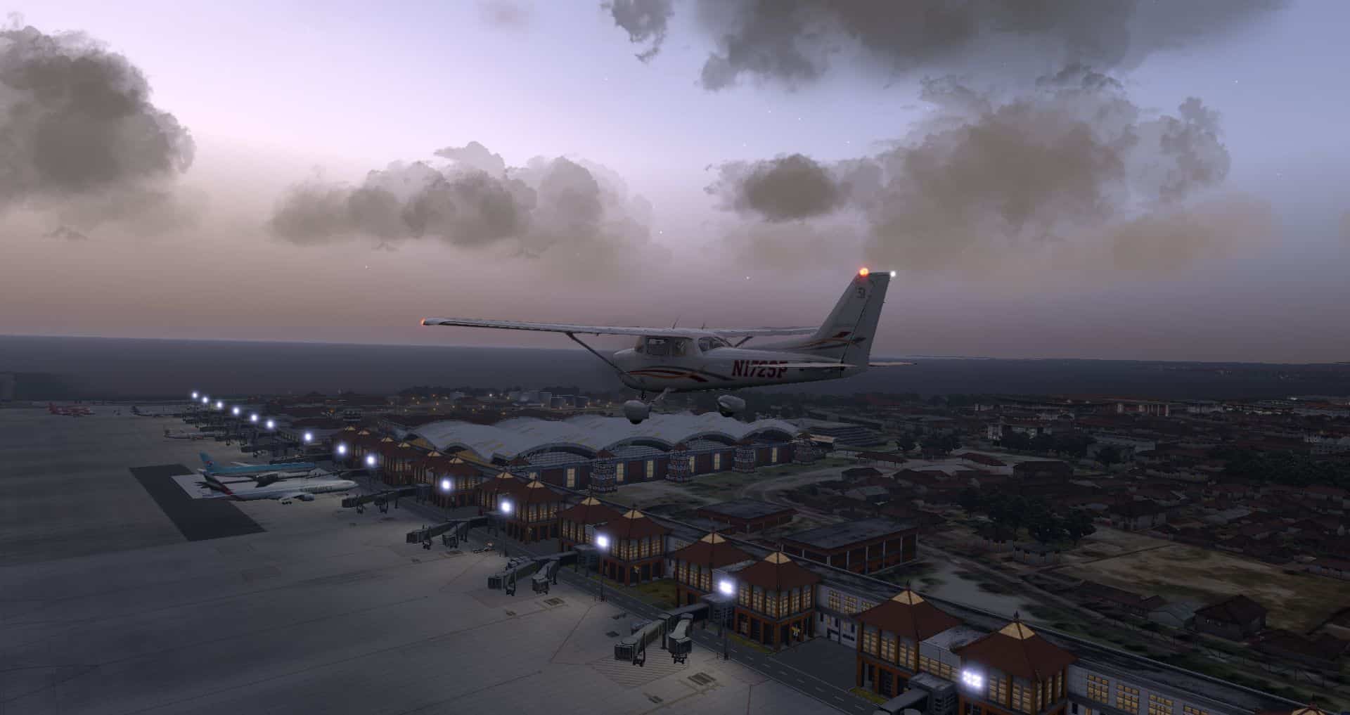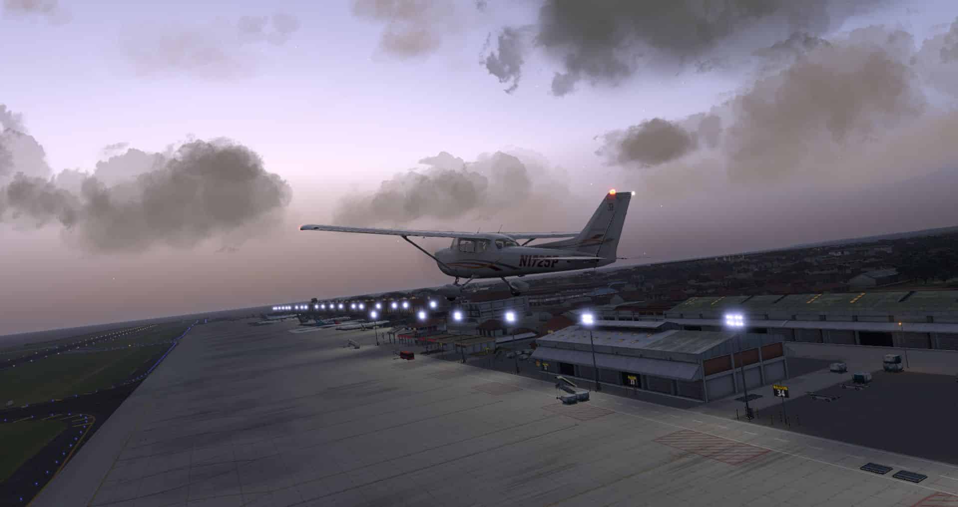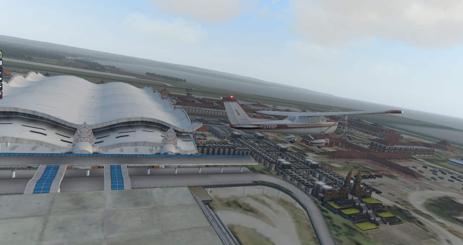 Bei einem Überflug mit der Default Cessna mit Reality Expansion Pack, sehen wir uns die Vorderseite des Terminals an.