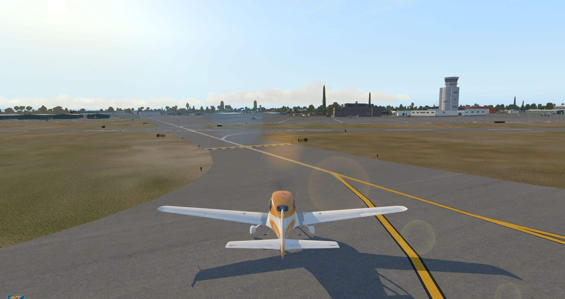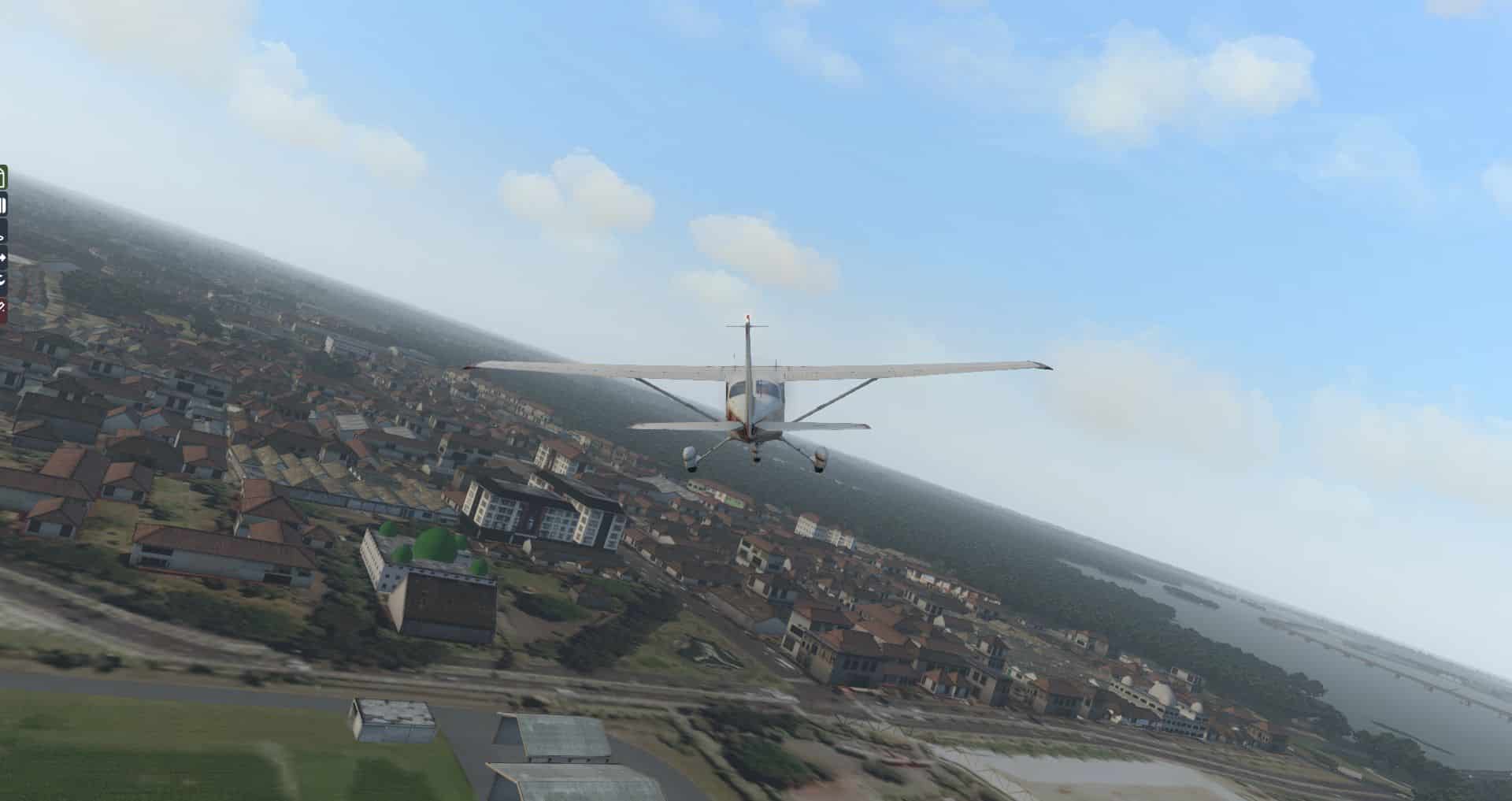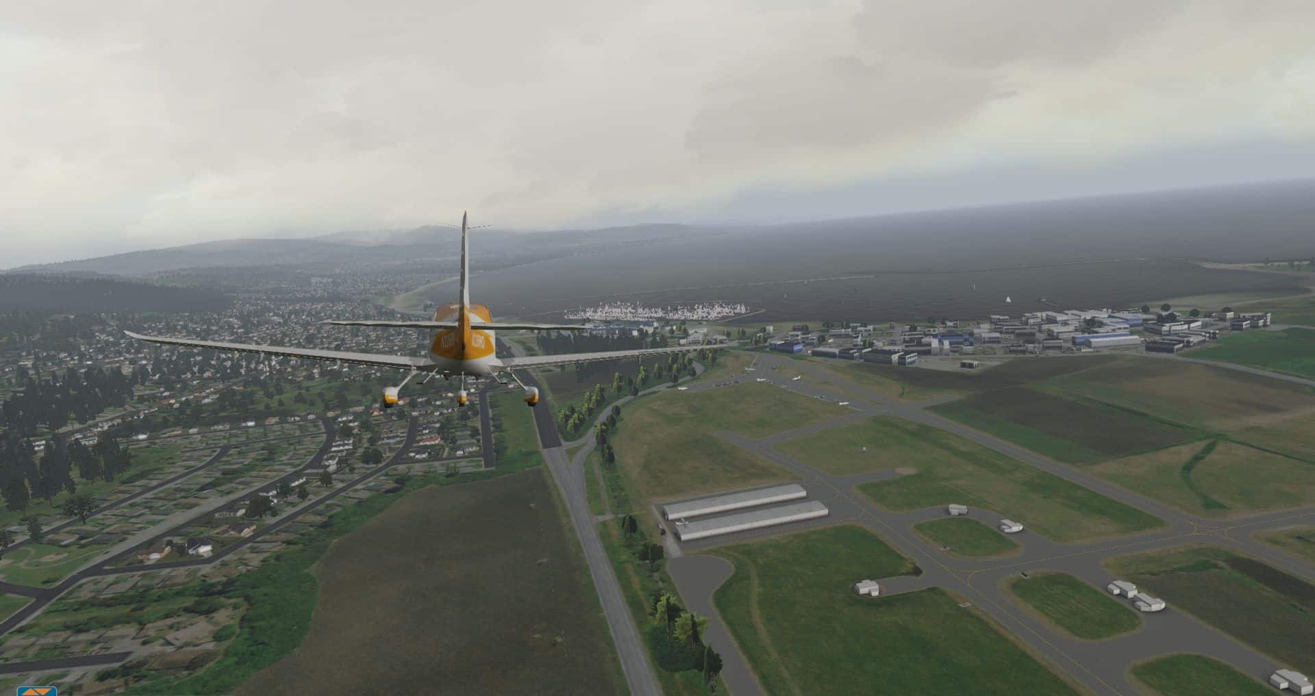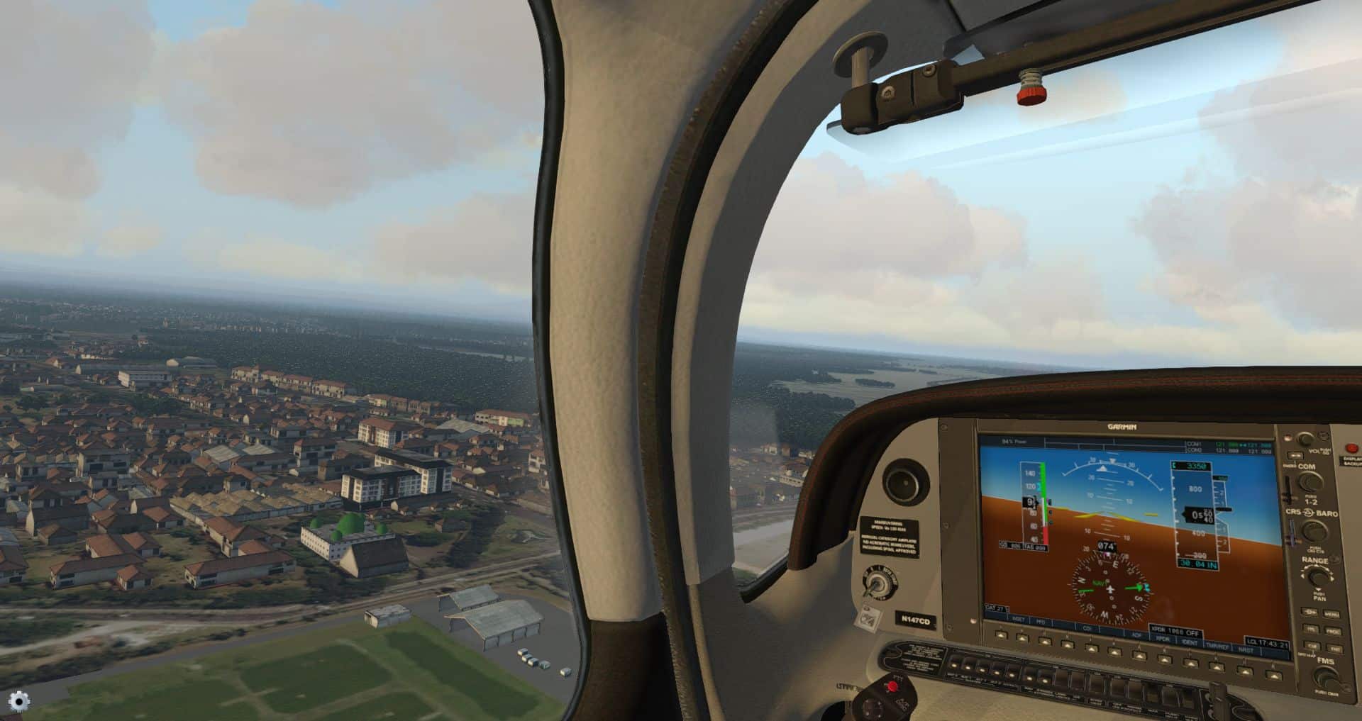Bei einem Überflug mit der Default Cessna mit Reality Expansion Pack, sehen wir uns die Vorderseite des Terminals an.