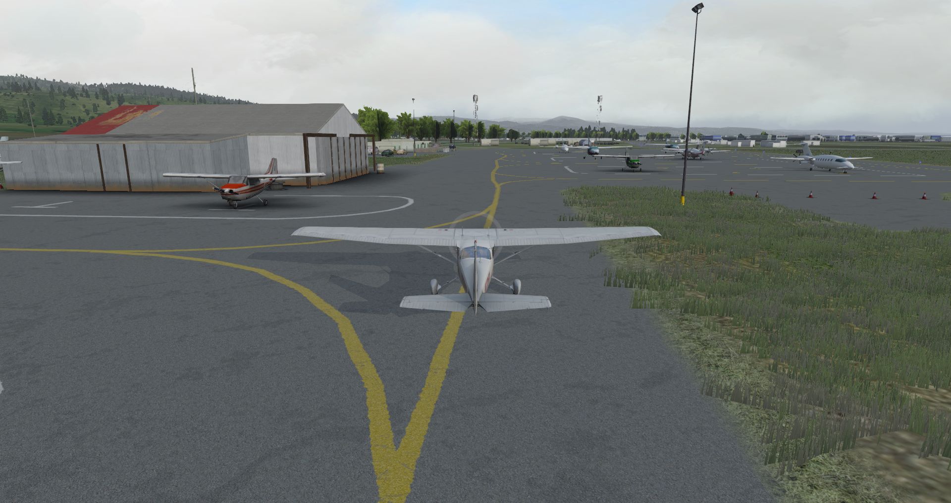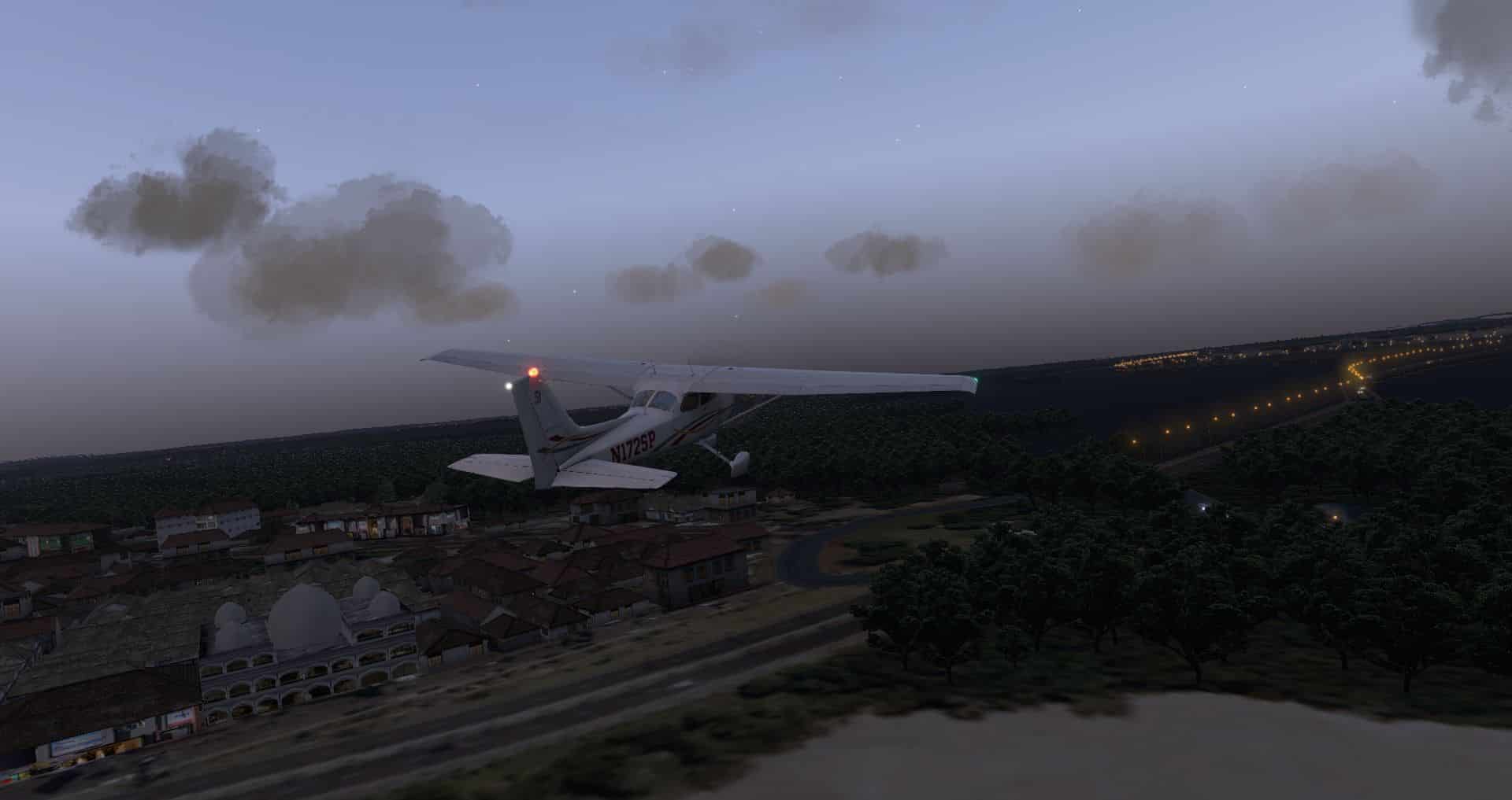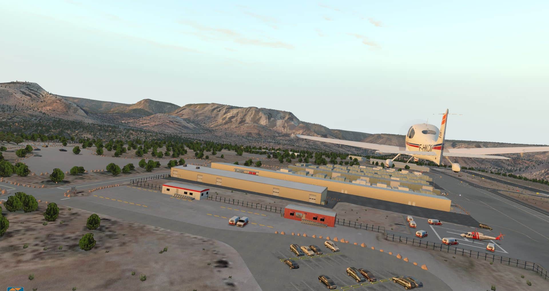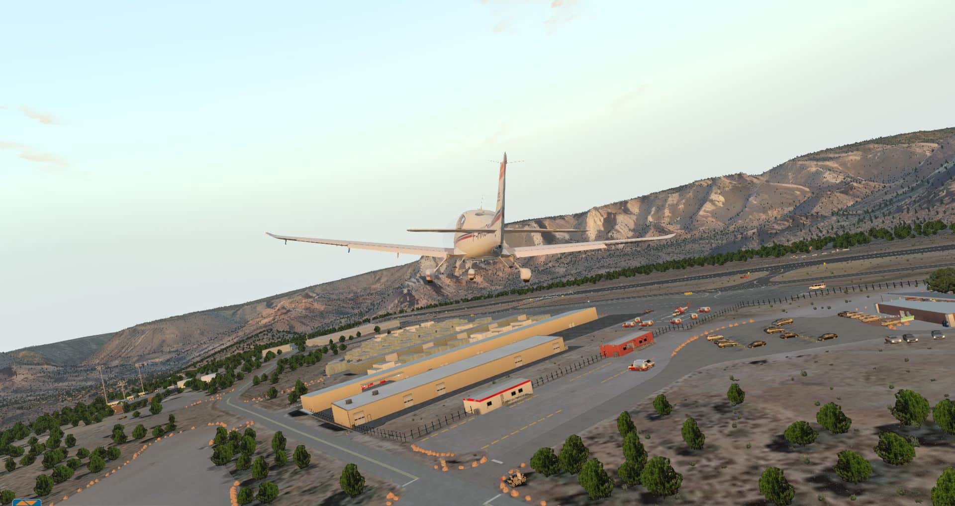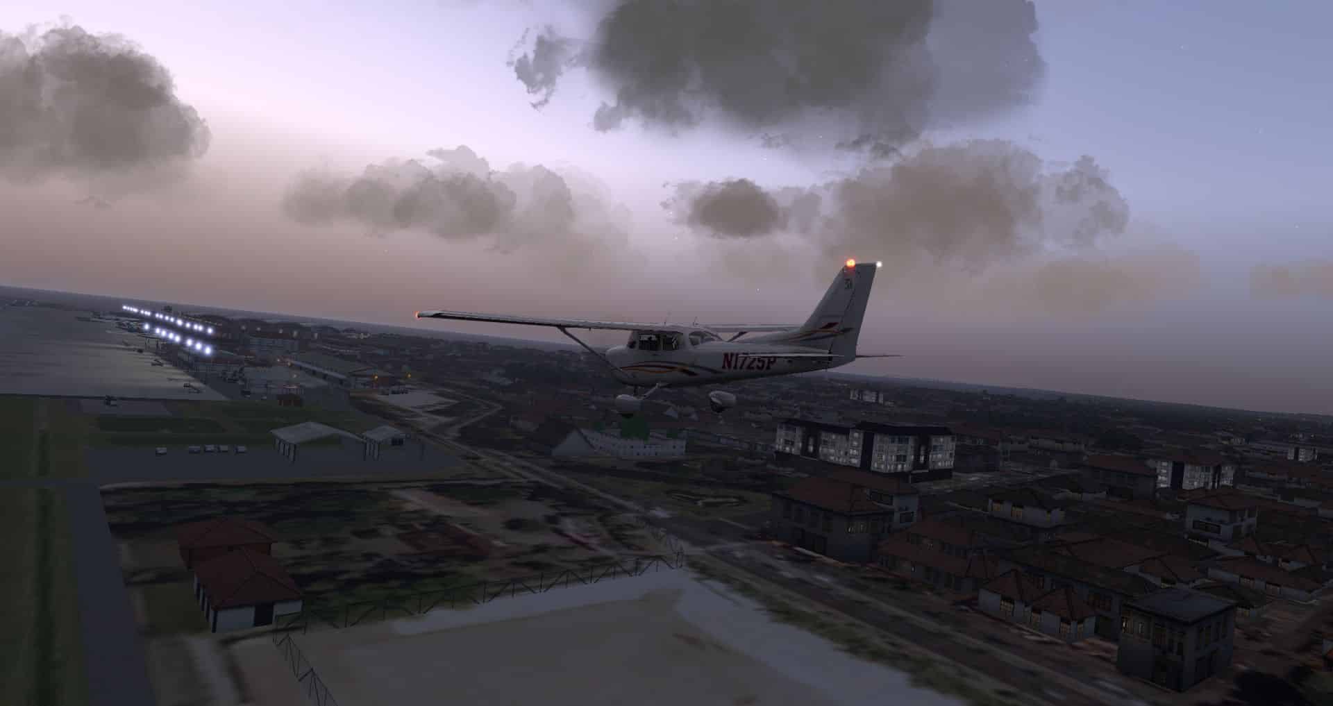 Bei einem Überflug mit der Default Cessna mit Reality Expansion Pack, sehen wir uns die Vorderseite des Terminals an.