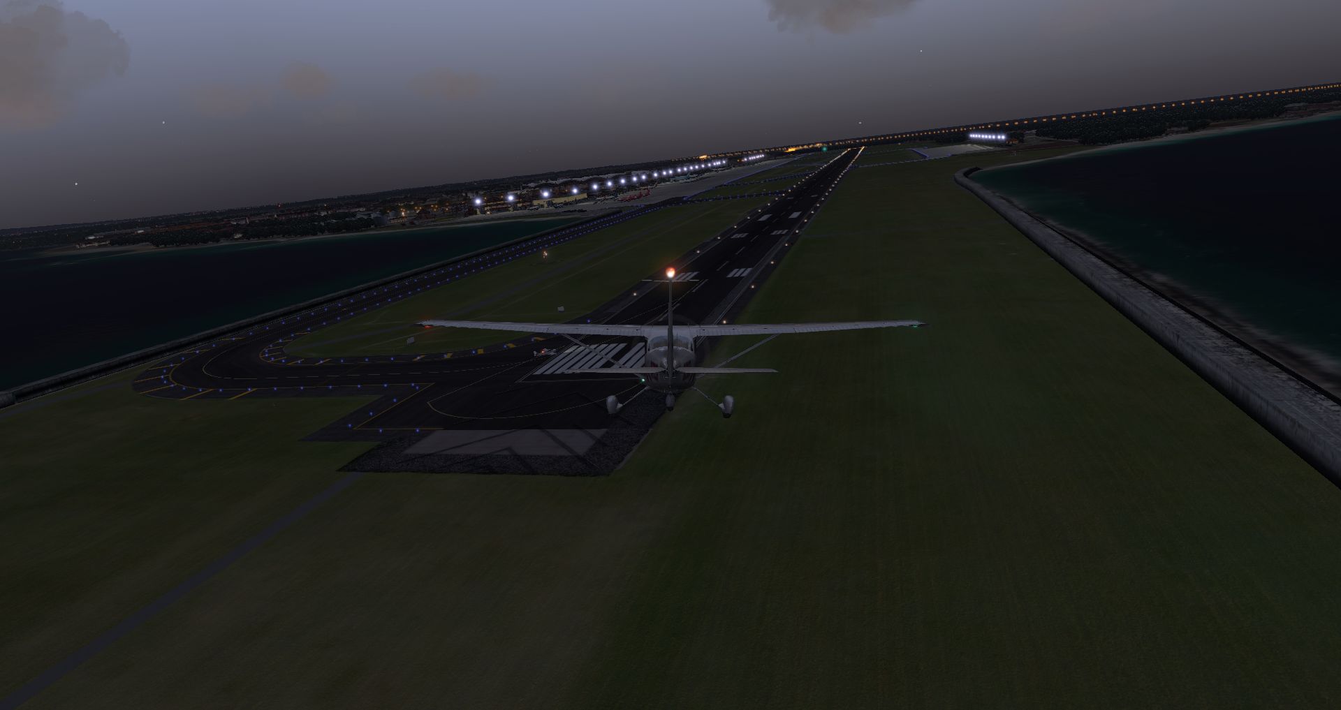 Auch das Terminalgebäude selbst und die Beleuchtung ist jetzt weit besser zu sehen, genauso wie der Anfang der Landebahn. Dort ist jedoch vor allem auf die Kaimauer zu achten.