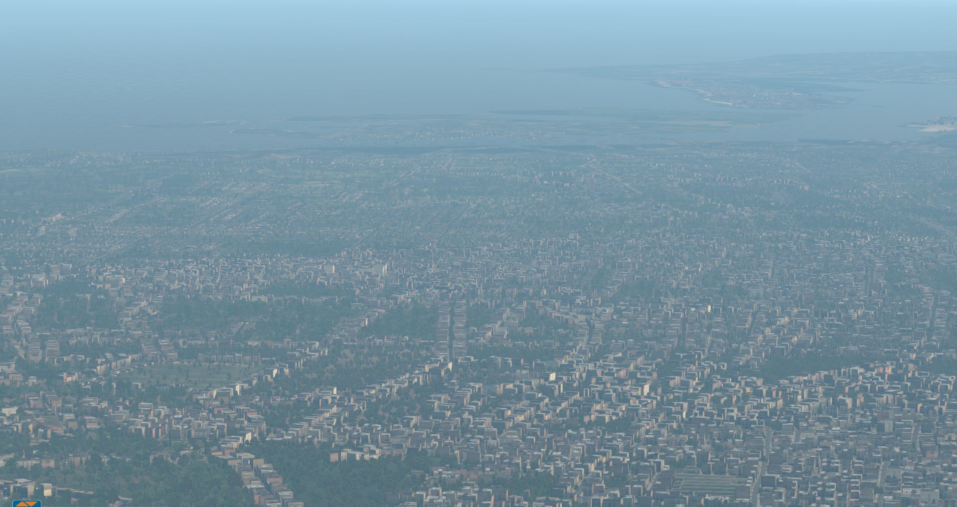Wie man jedoch auch sieht sind die meisten Gebäude beim Anflug. Default-X-Plane 11 Gebäude, erst wenn wir uns wirklich dem Flughafen nähern, werden diese durch Custom-Gebäude ersetzt.