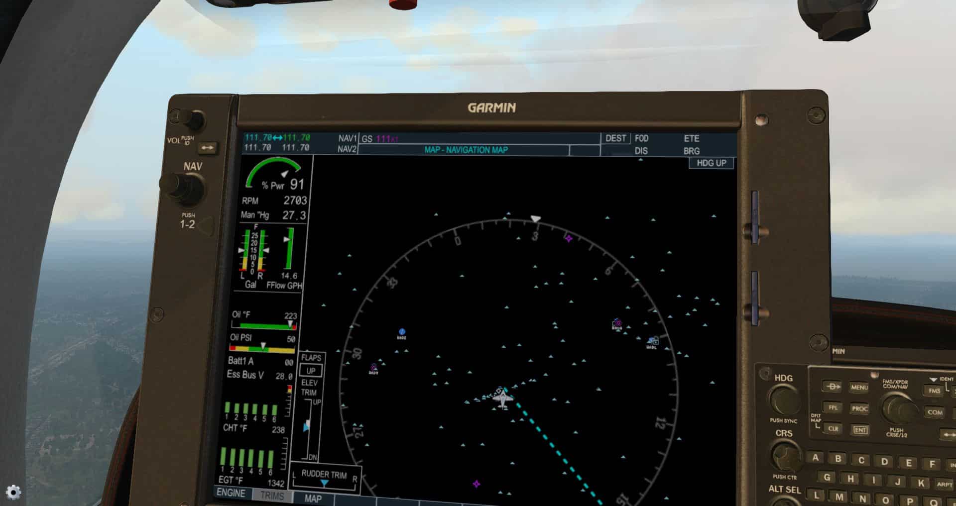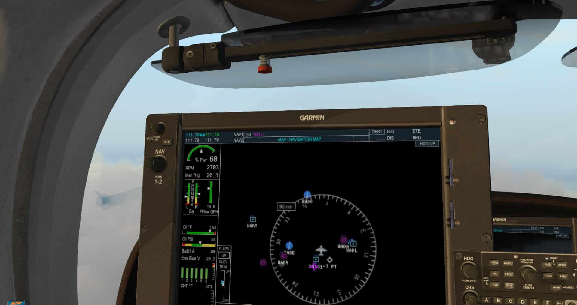 Hier sehen wir die Terminals sogar deutlich besser. Doch auch im Cockpit fällt ein großer Unterschied sofort ins Auge: Dank größerer Symbole kann man wesentlich besser verstehen, was das MFD uns darstellt, ohne nah heran zu zoomen.