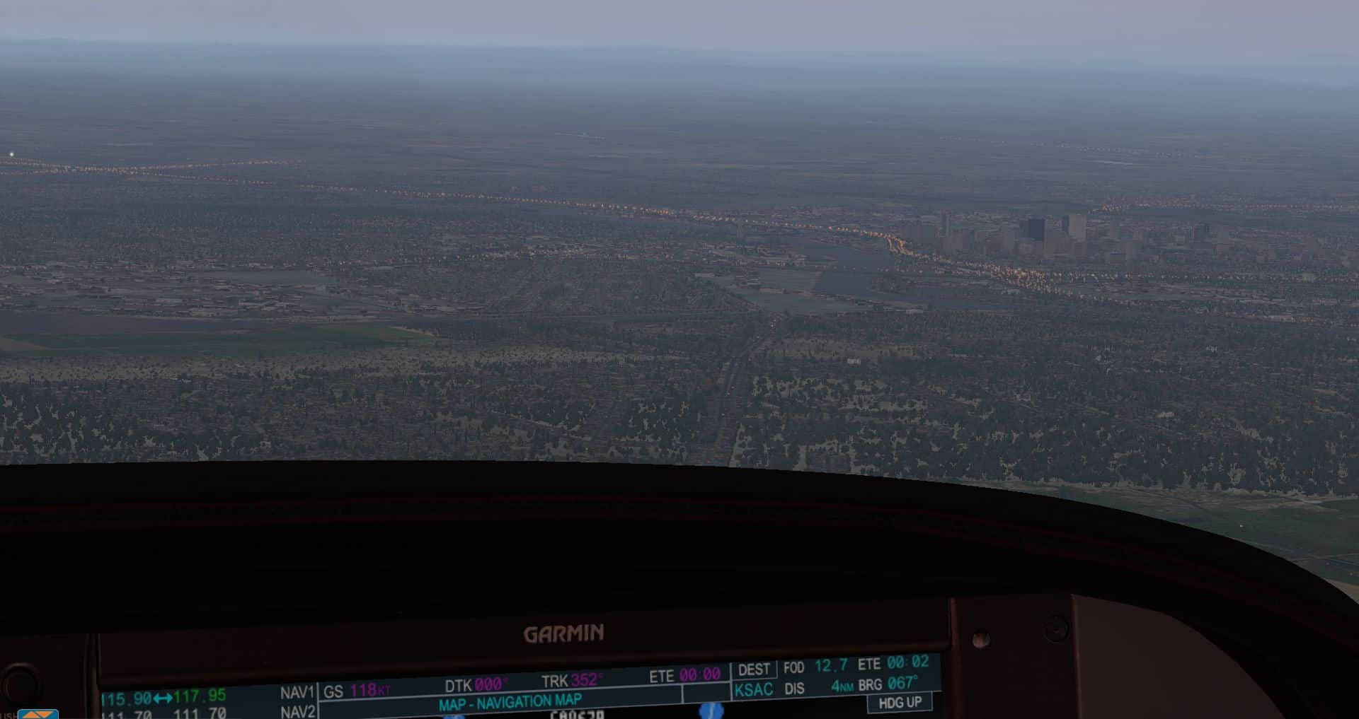 Doch wir haben auch noch einige Tests für die Cirrus auf dem Programm. Wir machen uns auf den Weg zu einem etwas größeren Flug. Unser Ziel: Sacramento (KSAC).