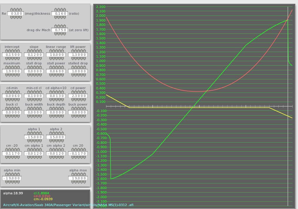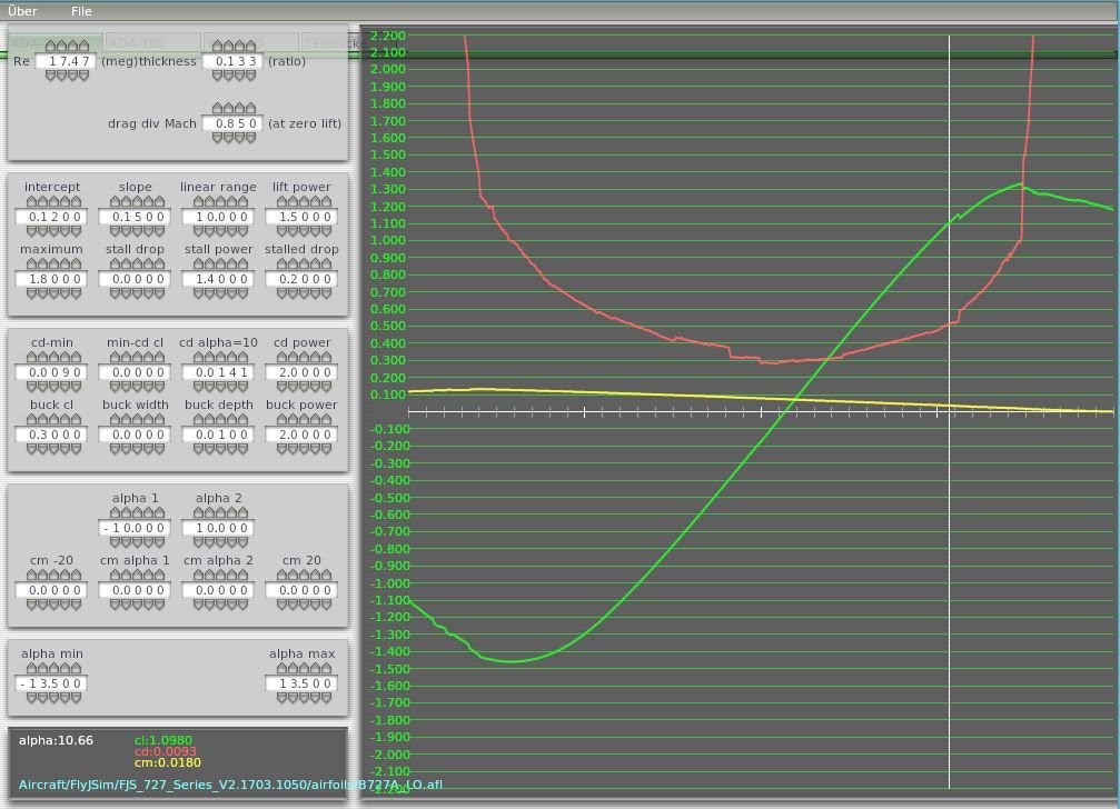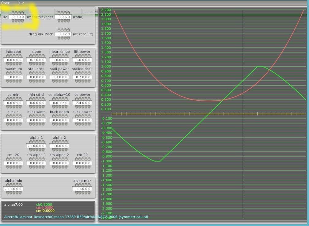 Da X-Plane zwei verschiedene Kurven für zwei Reynolds Zahlen hat, kann es abschätzen was für eine Reibung und was für ein Auftrieb zu diesen Zeitpunkt auf das Flugzeug in dieser Höhe wirkt.
