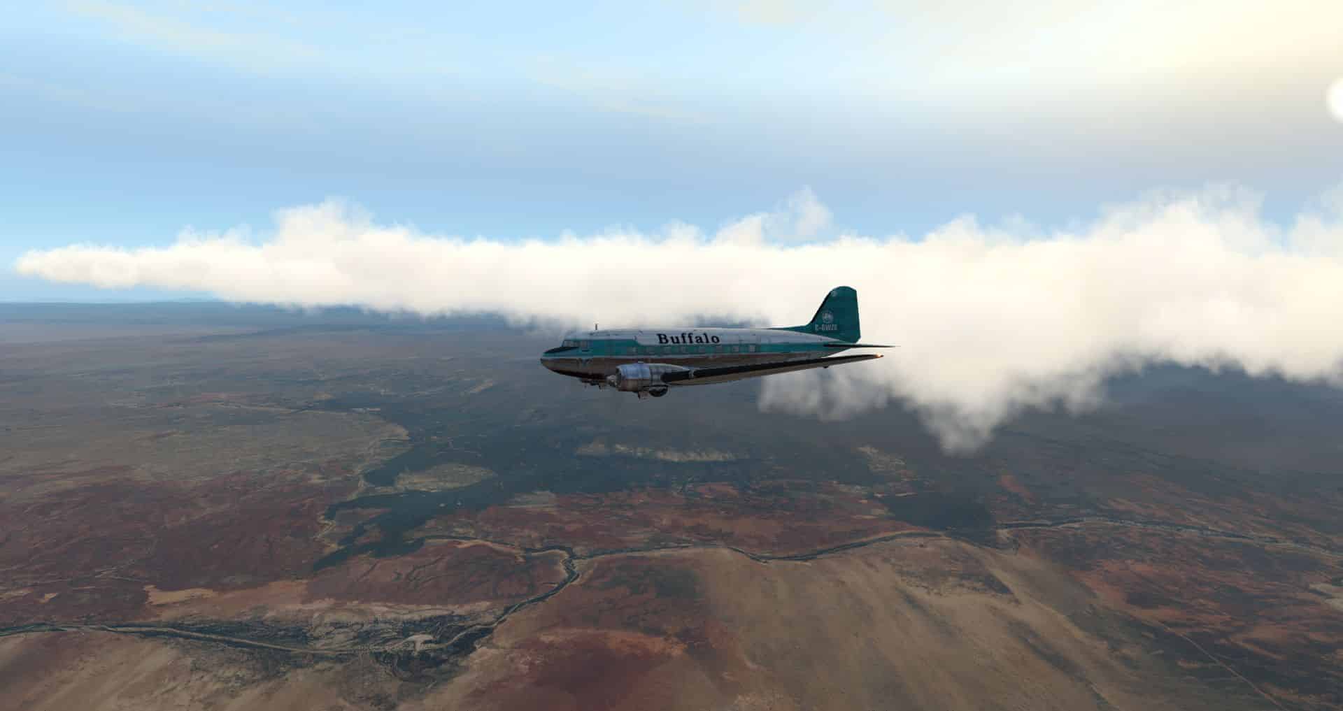 Die VSkyLabs DC-3 hat mit Version 2.0 bei Grafiken und Flugverhalten deutlich zugelegt, doch da diese Woche noch FMOD folgen soll: