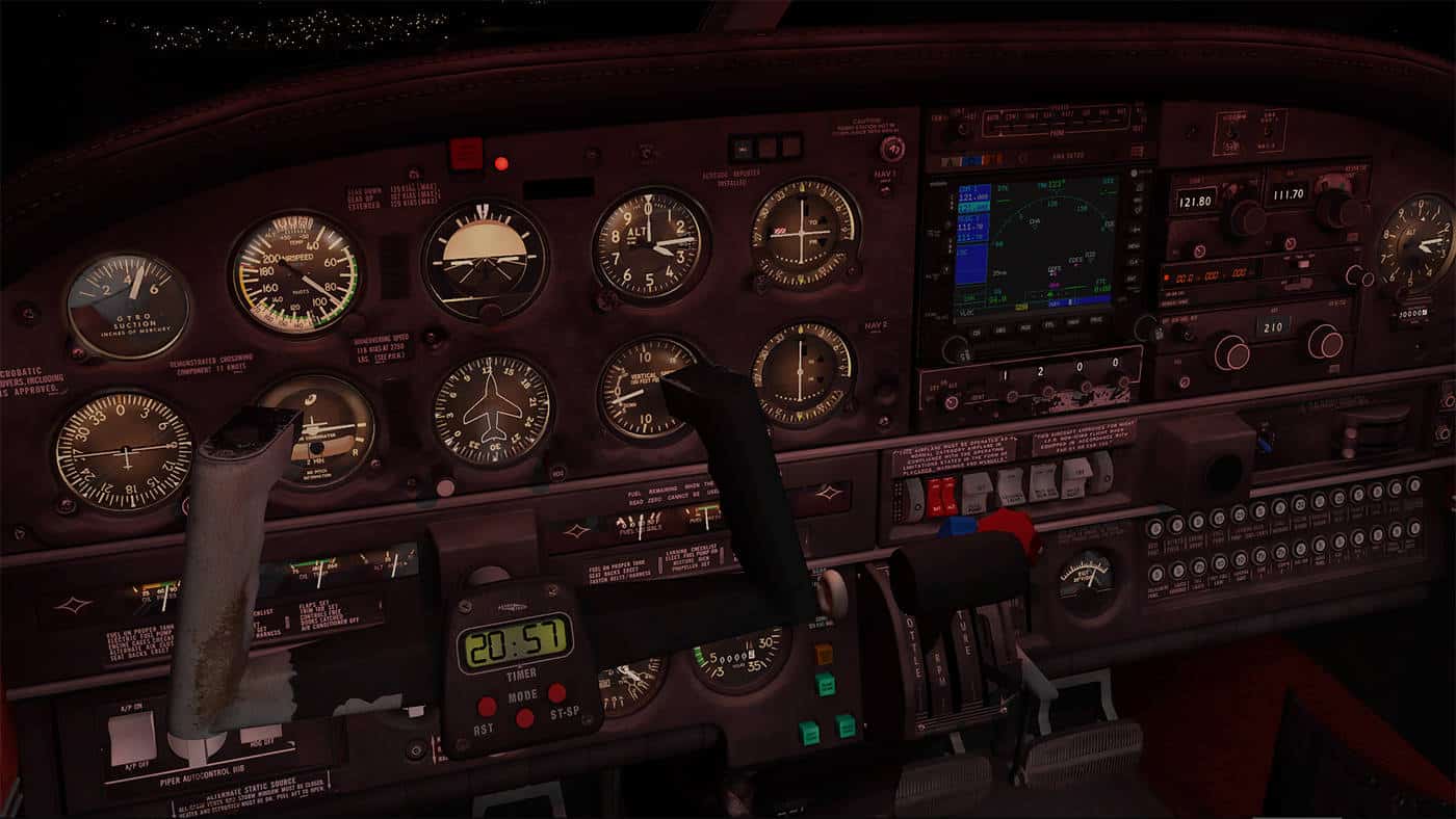 Es fehlt ein ADF, ein zweiter Höhenmesser und ein separates DME. Die vFlyteAir Arrow hat zwar ein DME, das aber über NAV1 läuft – fliegt man mit NAV1 aber einen ILS-Anflug (und das geht hier nur mit NAV1, NAV2 hat keine vertikale Anzeige), kann man kein VOR/DME einstellen. Bei den meisten ILS-Anflügen braucht man ein separates DME.