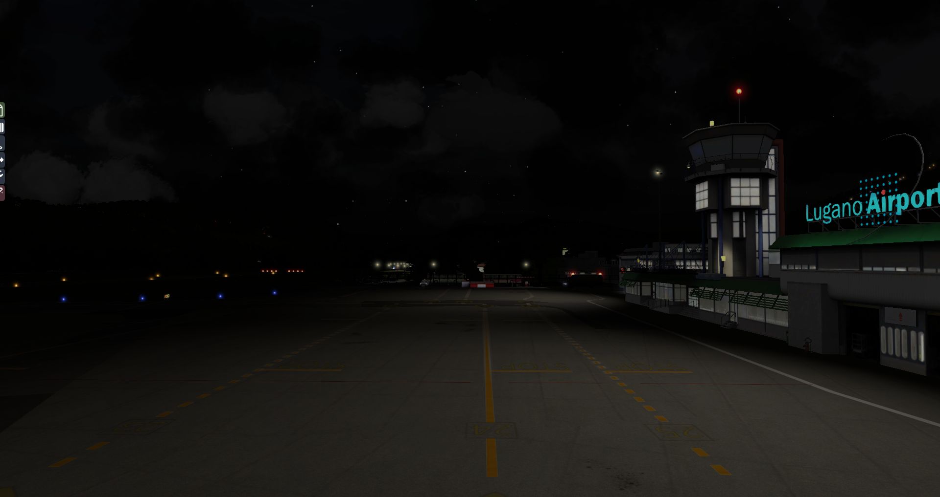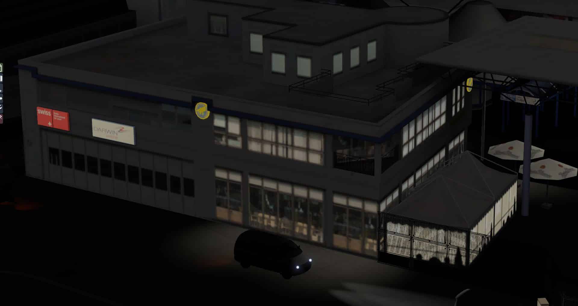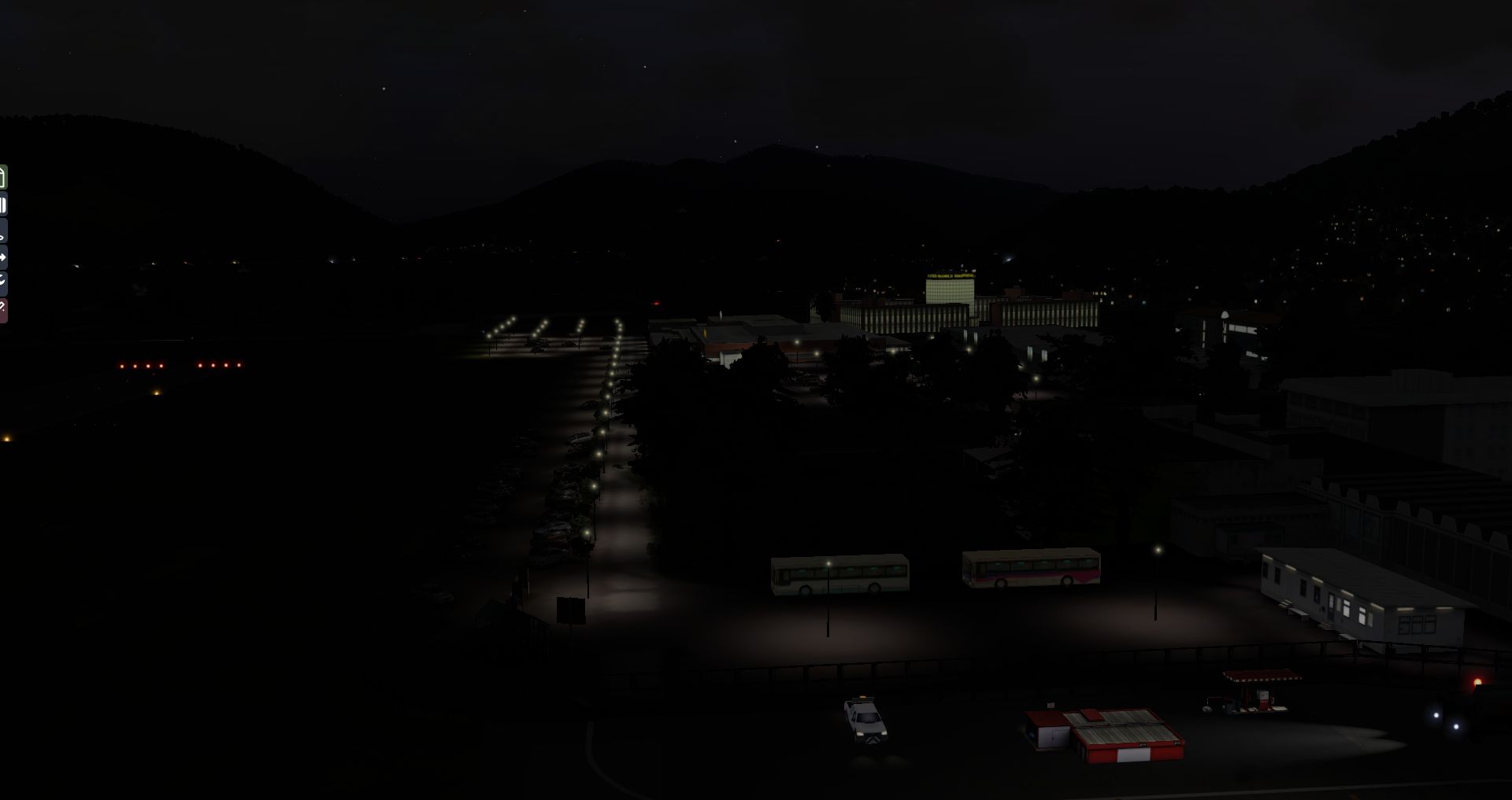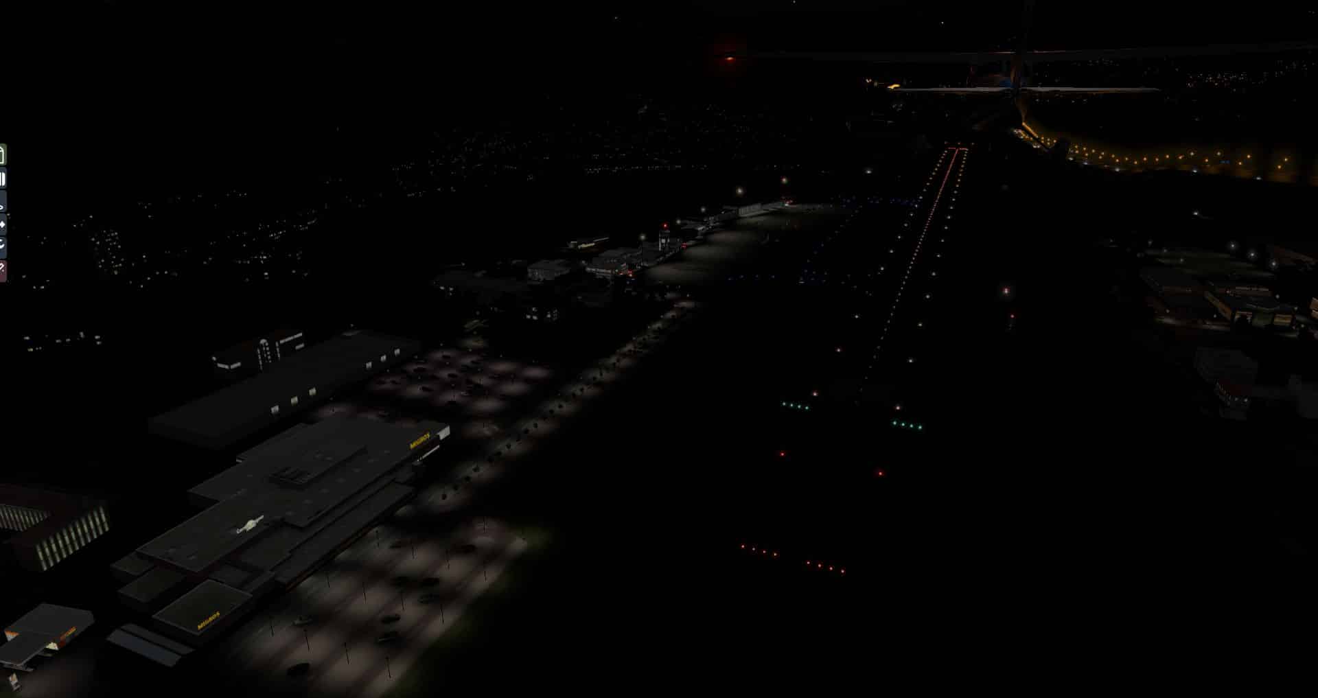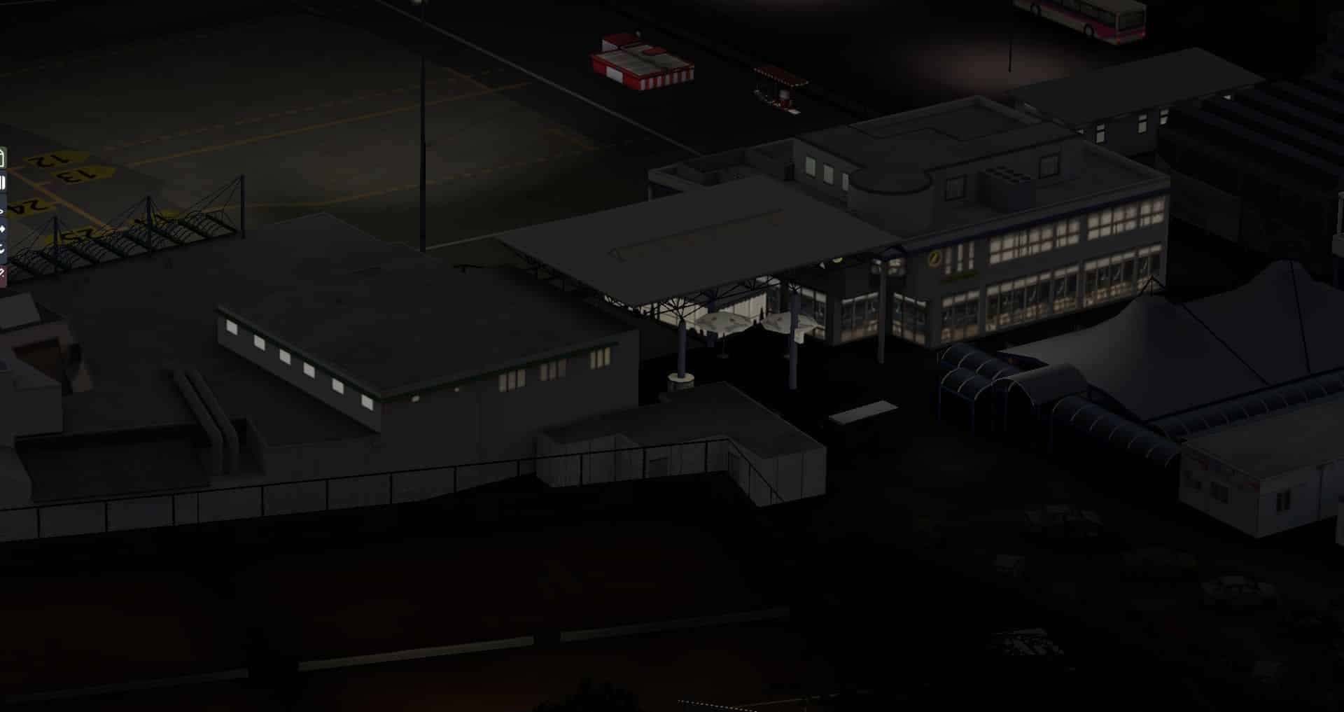 Auf den ersten Blick macht der Flughafen immer noch einen guten Eindruck, doch die Gegend wirkt etwas voll. Wenn man genauer hinsieht ist es sogar eindeutig zu voll, da es zu Kollisionen zwischen AutoGen und Flughafengebäuden kommt. Auch bei Nacht macht er sich noch ganz passabel. Aber wieder ist er recht einsam.