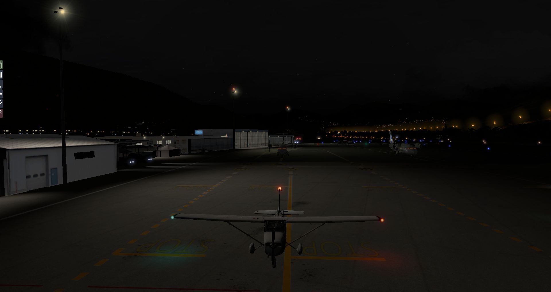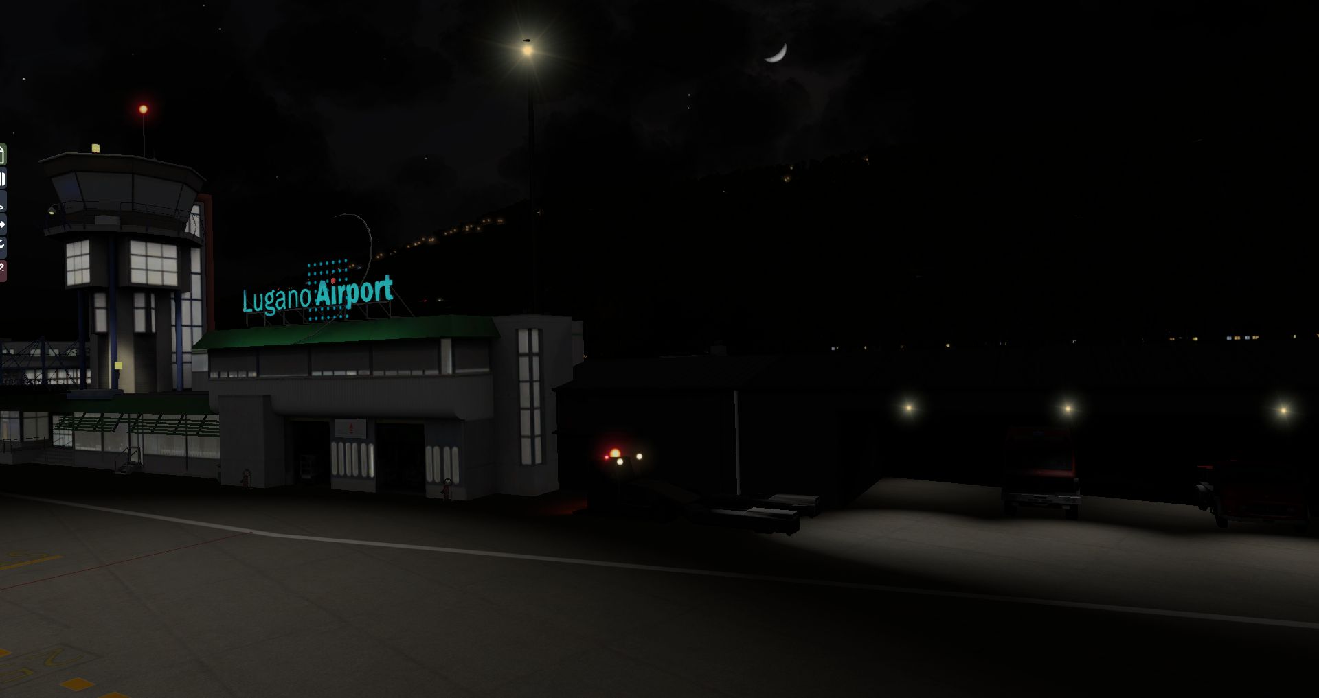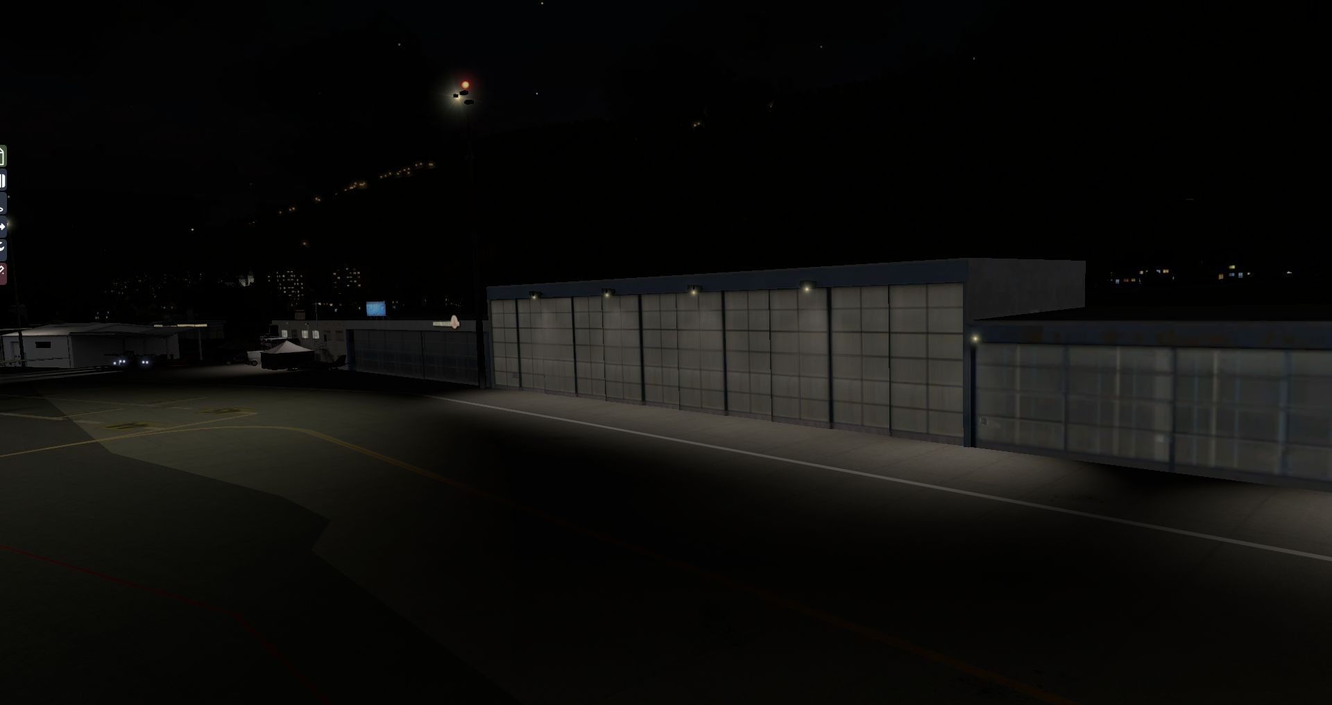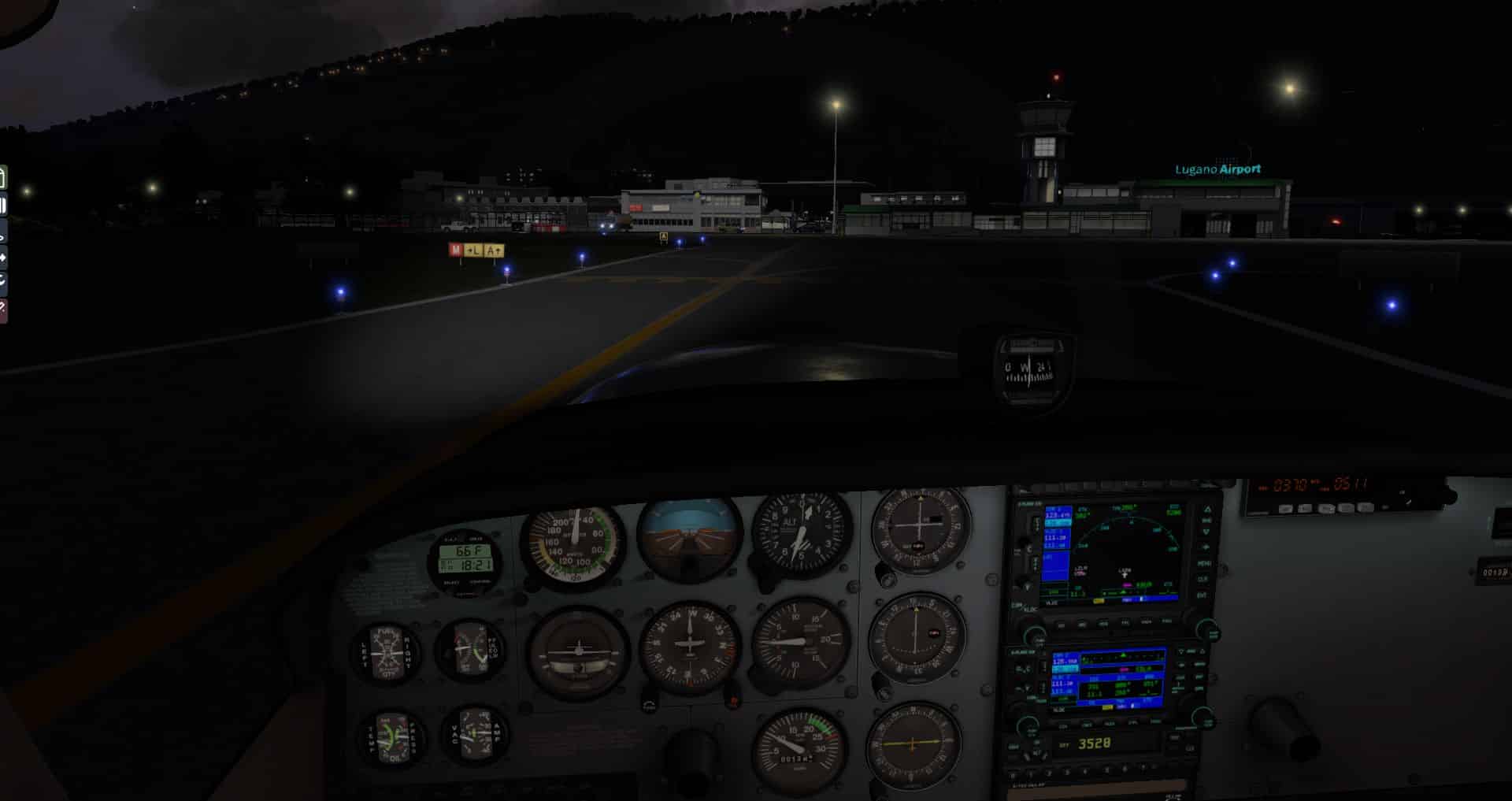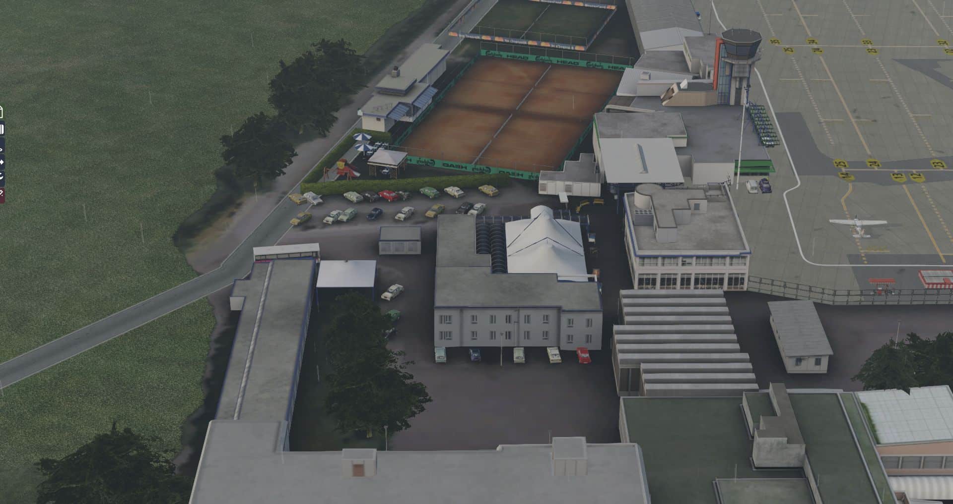 Auf den ersten Blick macht der Flughafen immer noch einen guten Eindruck, doch die Gegend wirkt etwas voll. Wenn man genauer hinsieht ist es sogar eindeutig zu voll, da es zu Kollisionen zwischen AutoGen und Flughafengebäuden kommt. Auch bei Nacht macht er sich noch ganz passabel. Aber wieder ist er recht einsam.