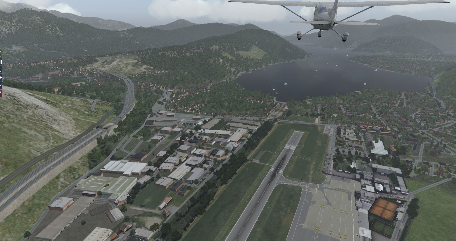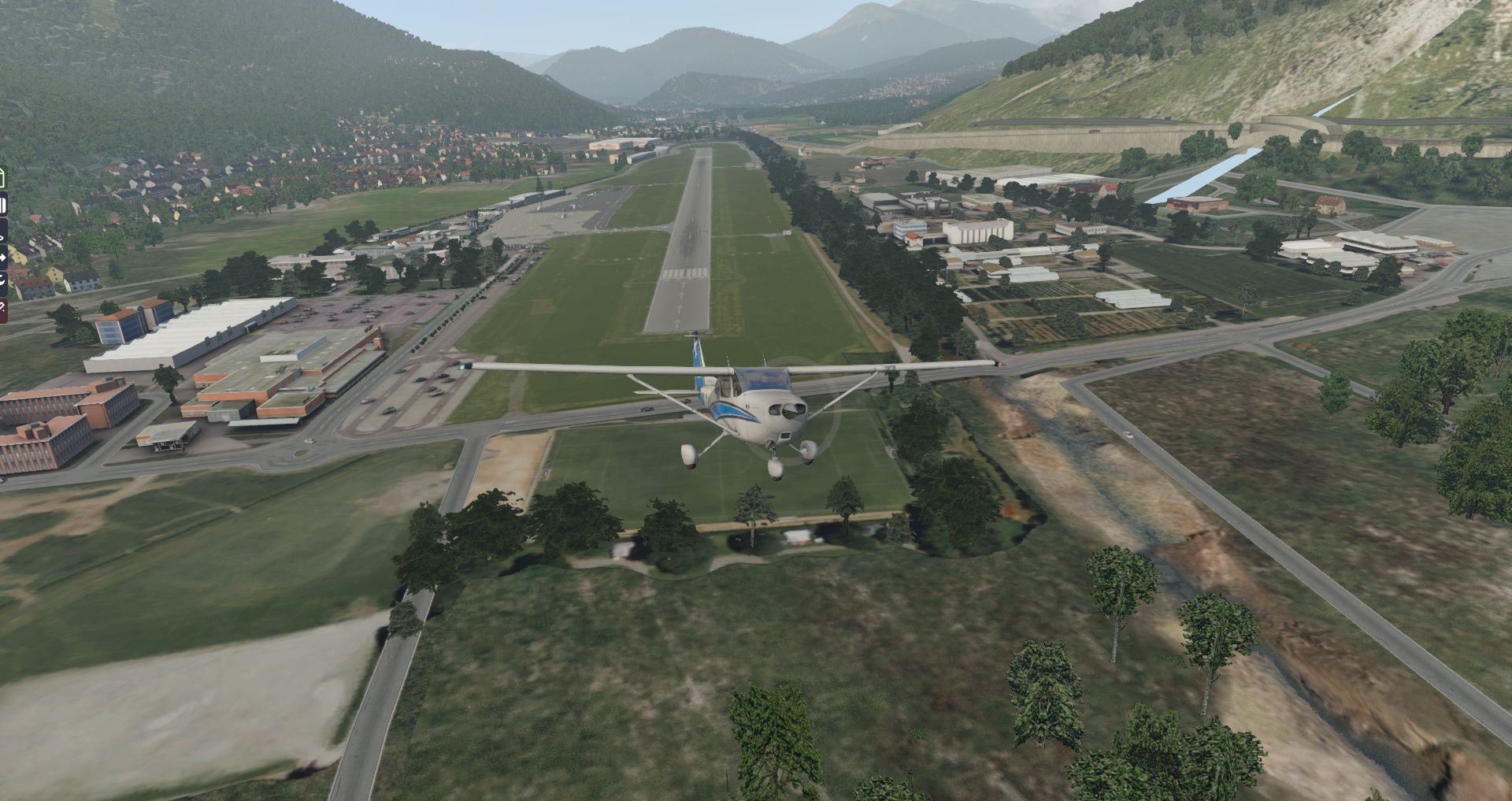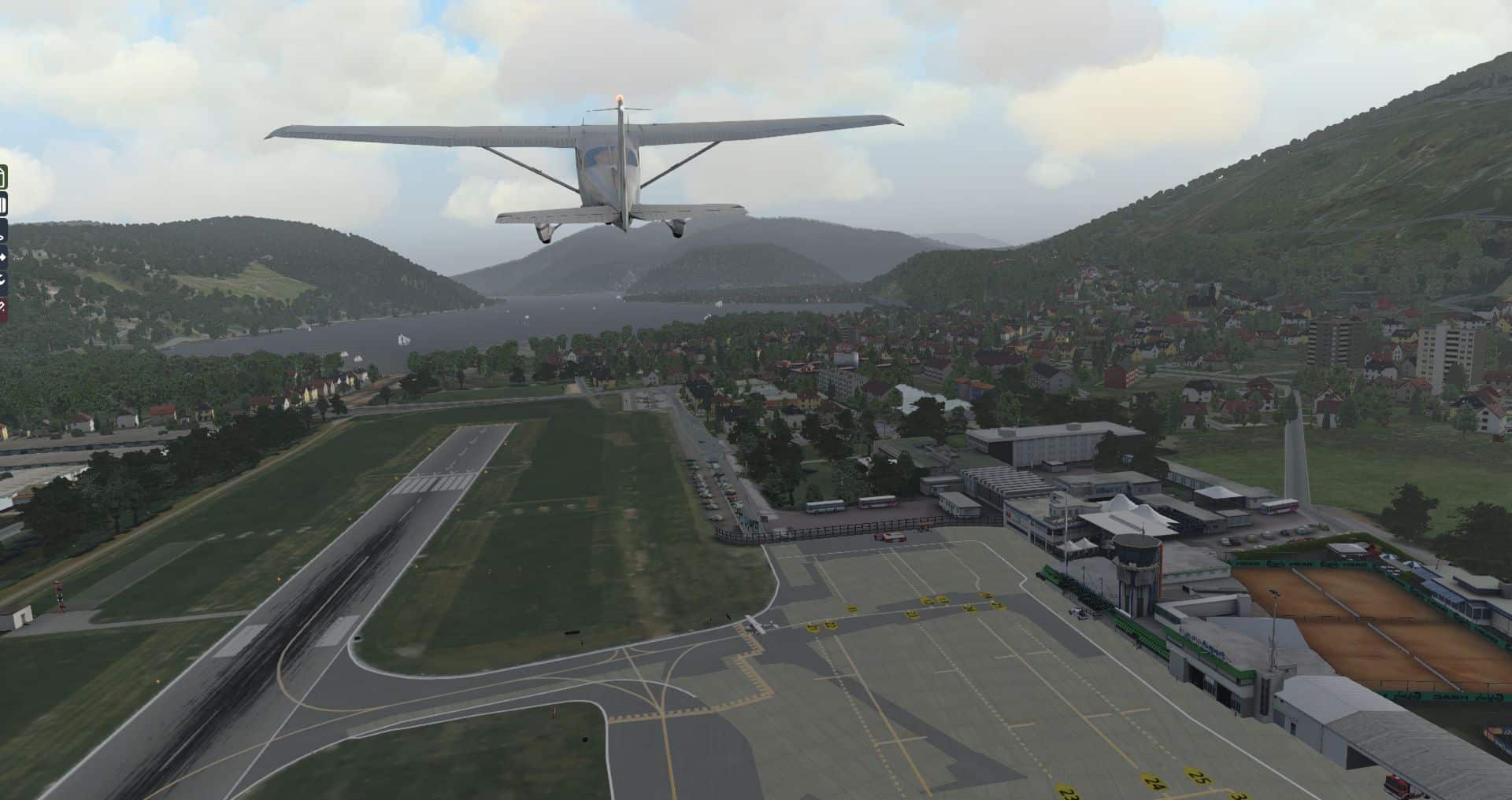 Wenden wir uns jetzt einem etwas längeren Video zu: Im Video ist kaum zu übersehen, dass Lugano genau an einer Kante des Mesh liegt und offensichtlich unterschiedliche Meshes zum Einsatz kamen. Doch den Flughafen selbst betrifft das Problem nicht, daher habe ich es für diesen Test ignoriert.