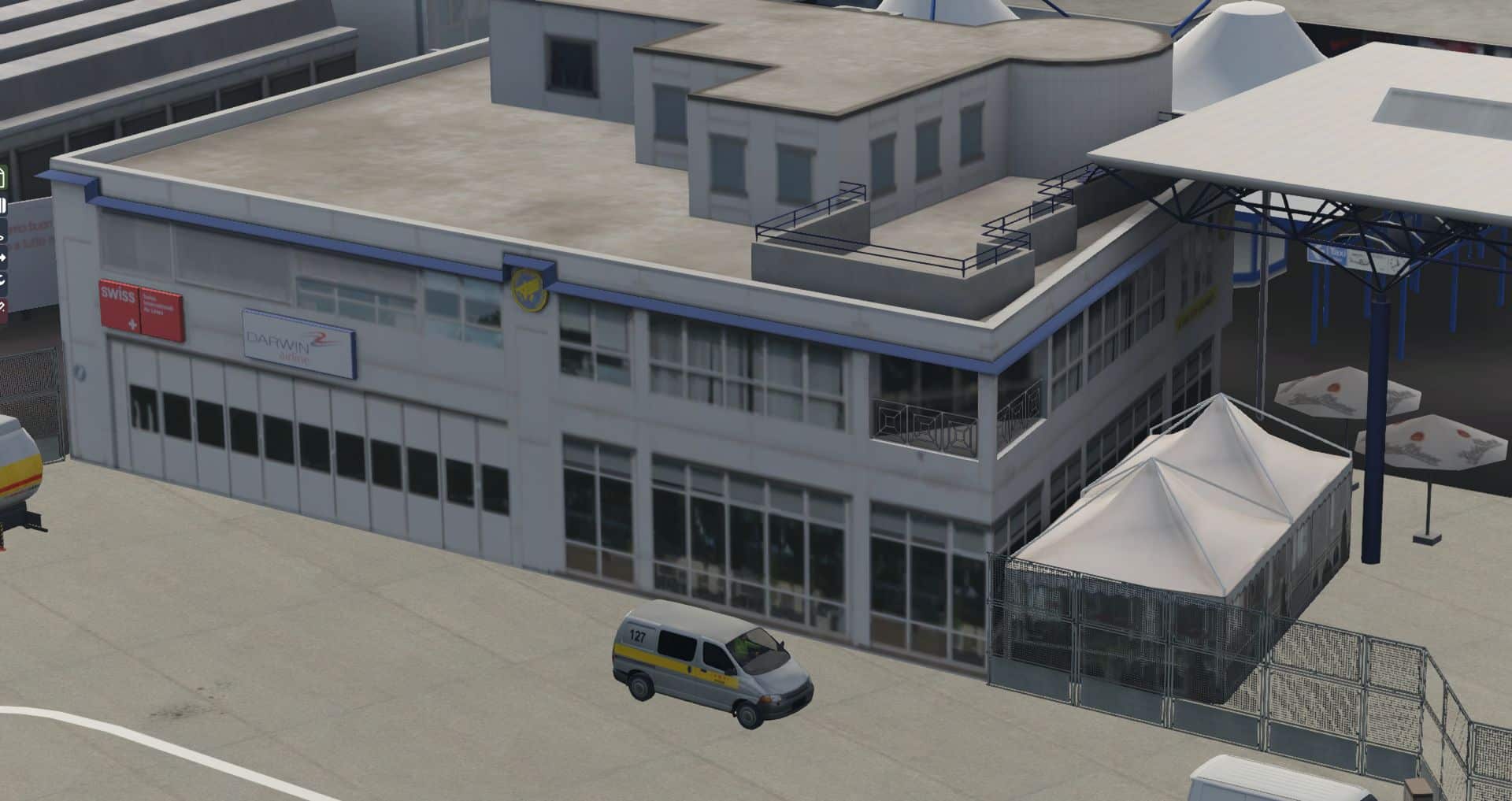Wesentliche Änderungen sind: Zum einen hat man den Flughafen auf die Nutzung von statischen und AI Flugzeugen vorbereitet. Zum anderen hat man die Ausleuchtung einem gewissen Feintuning unterworfen, indem die Texturen sauberer auf dem Mesh und den Objekten aufliegen.