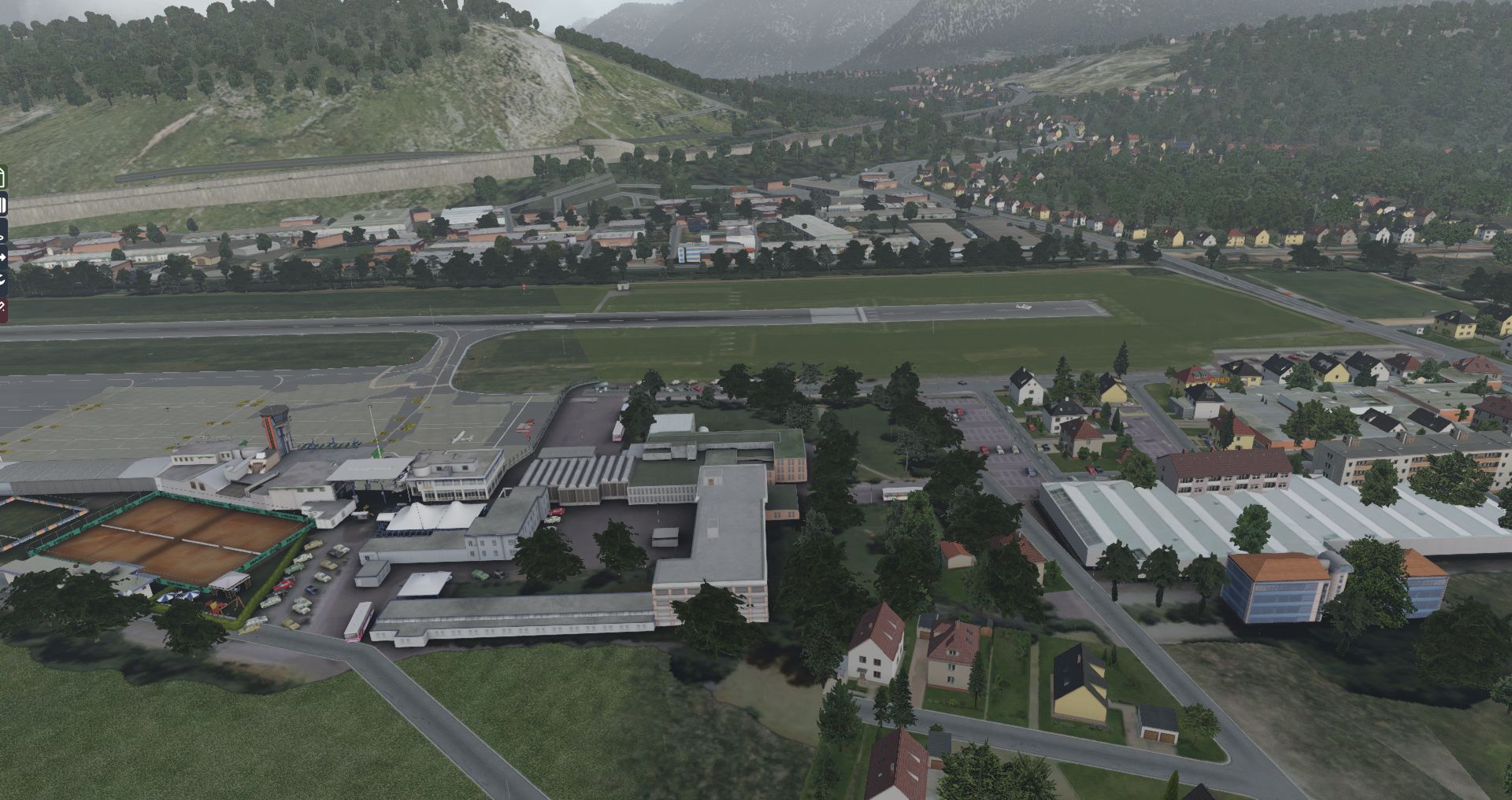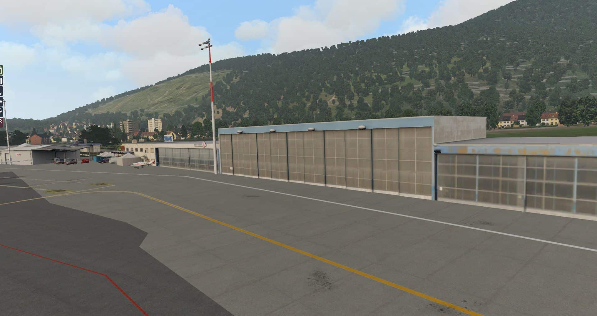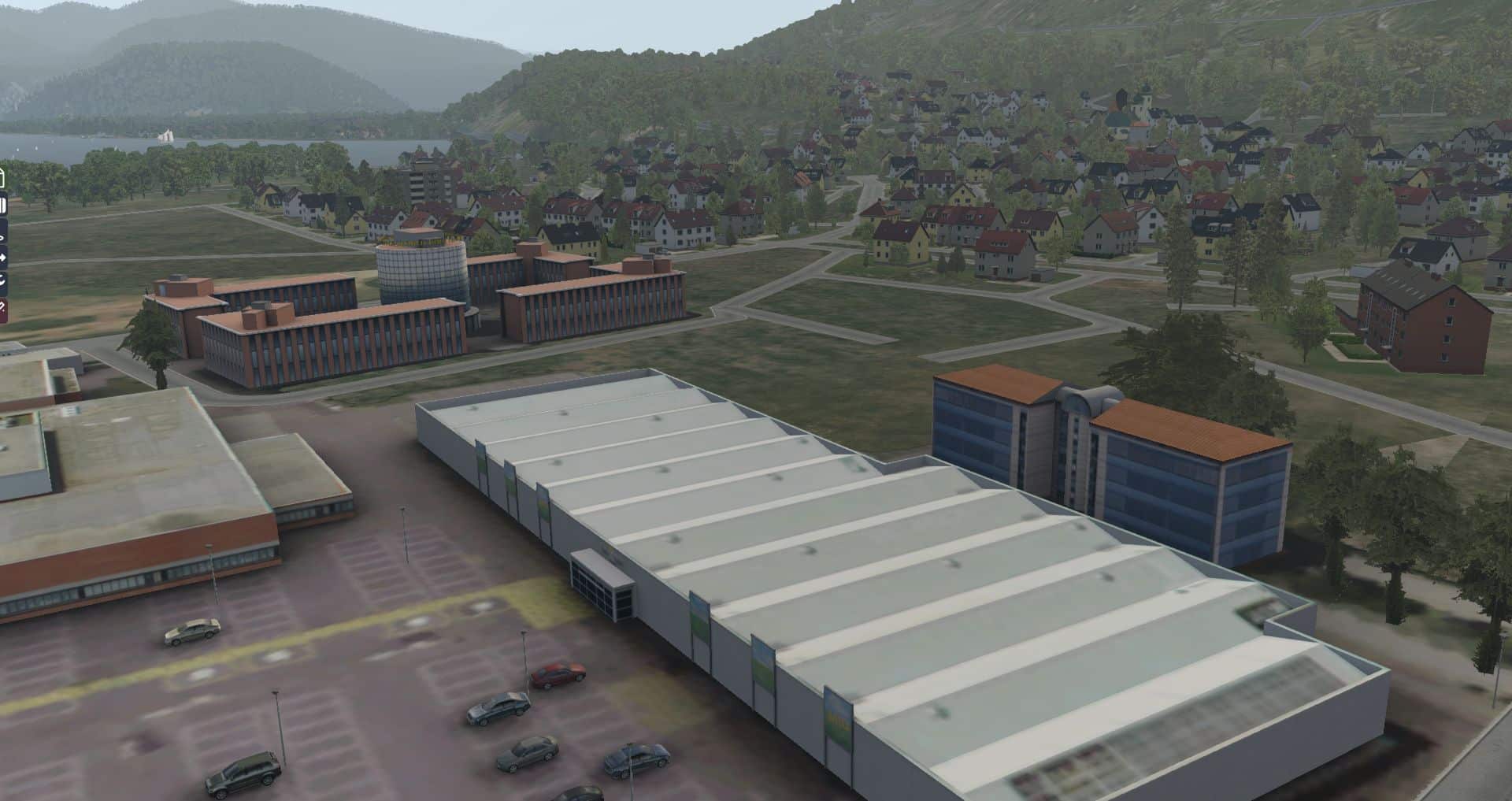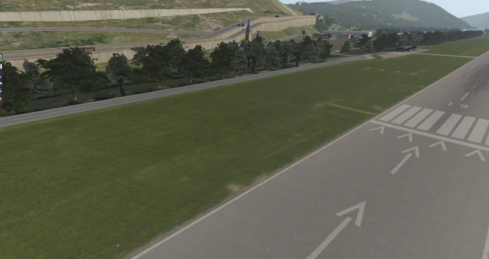 Erst durch das Wegräumen des AutoGen erkennt man wirklich, was in dieser Szenerie drinsteckte. Zusätzlich wurden – wie auch bei Dublin – in dieser Szenerie wieder echte Straßen verlegt. Auf den Fotos macht das nicht viel her, aber auf dem Video werden wir sehen wie sich der Eindruck ändert, wenn man im Landeanflug nicht das einzige bewegte Objekt ist.