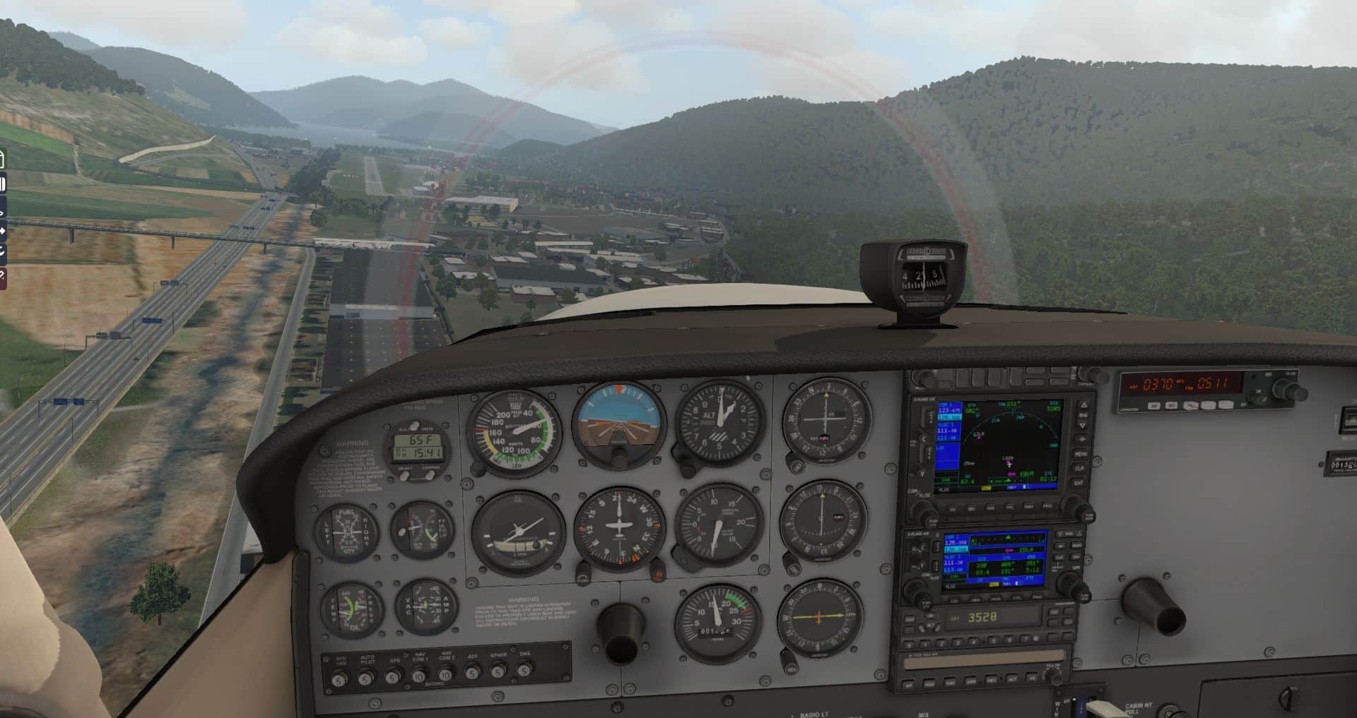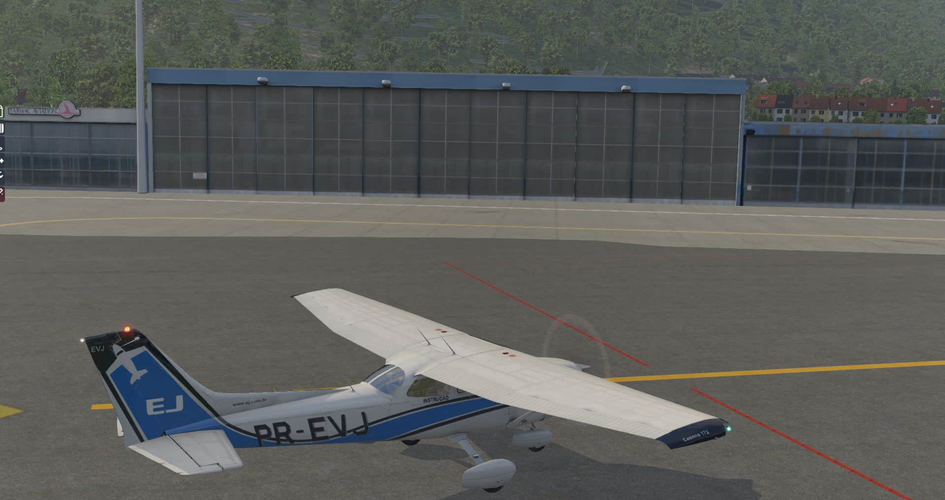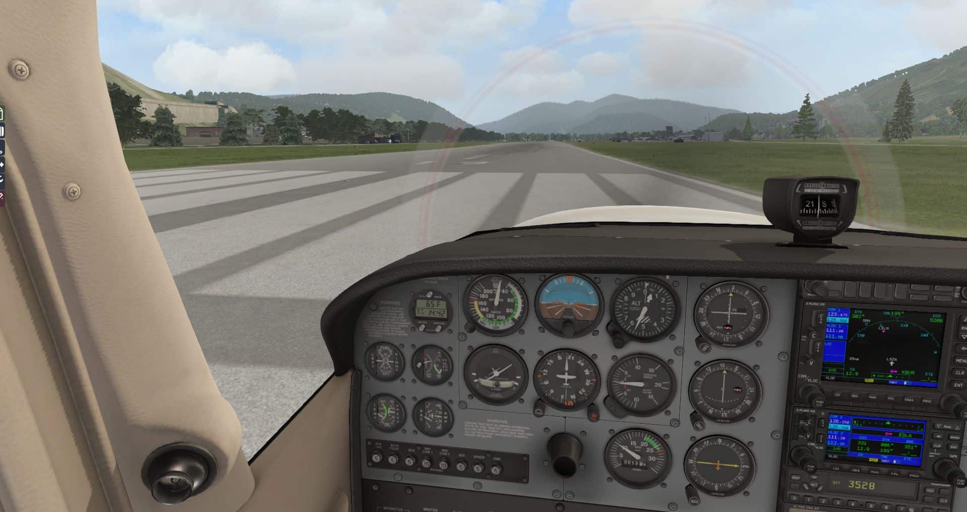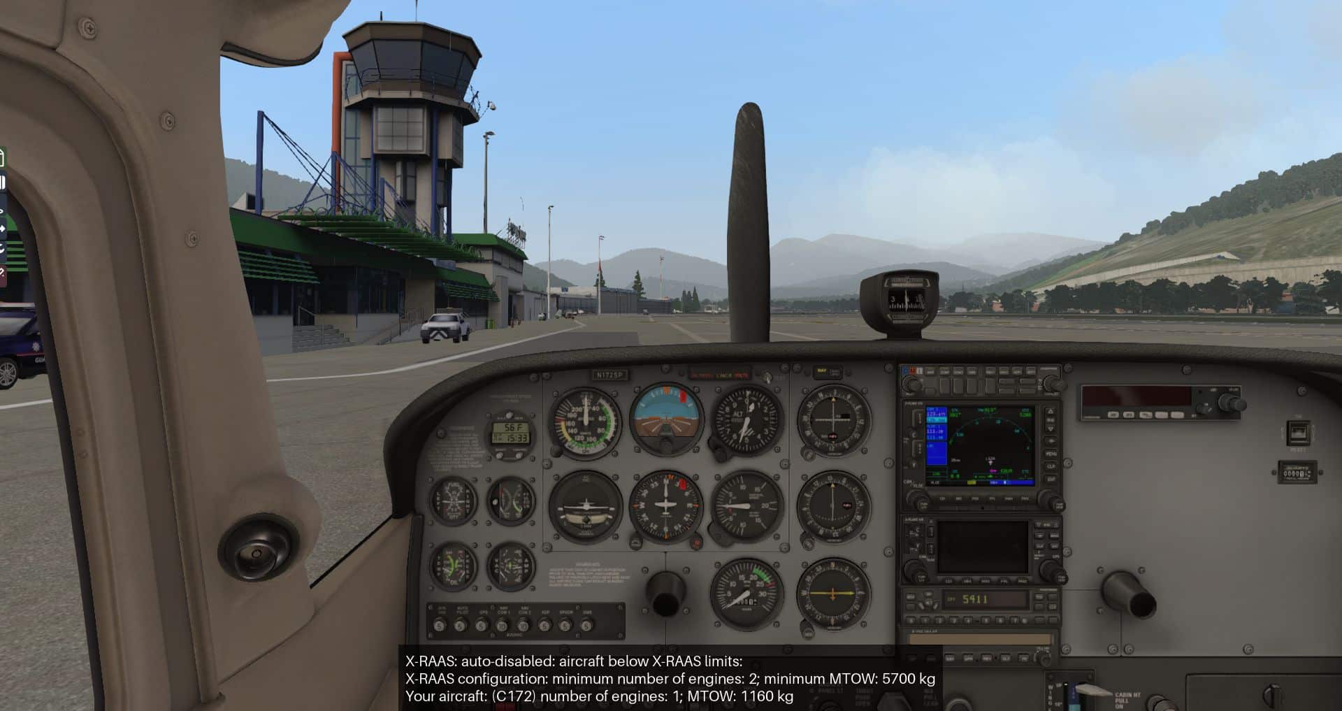 Als Flugzeug kommt wieder die Default C172 zum Einsatz, wie in letzter Zeit üblich mit dem REP-Plugin, das seit dem letzten Update auch wesentlich stärker die Windgeräusche einsetzt, wie auch eine Reihe von Problemen bei der Zündung beseitigte.