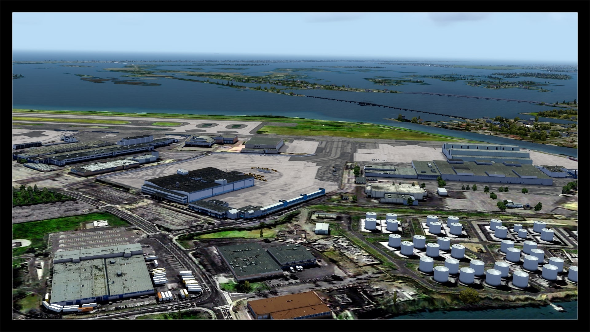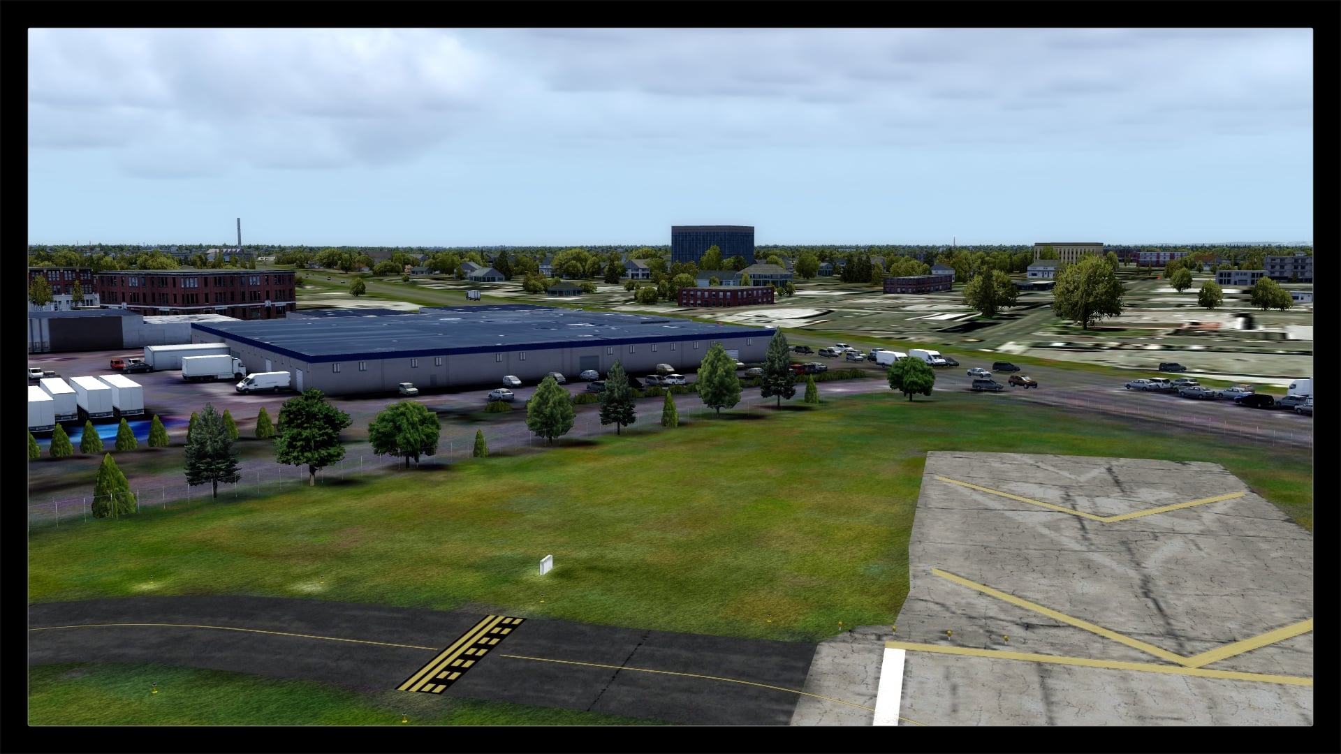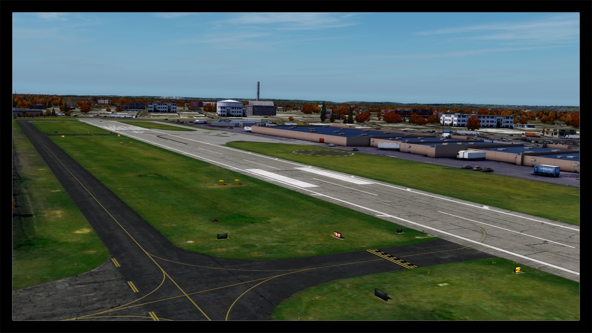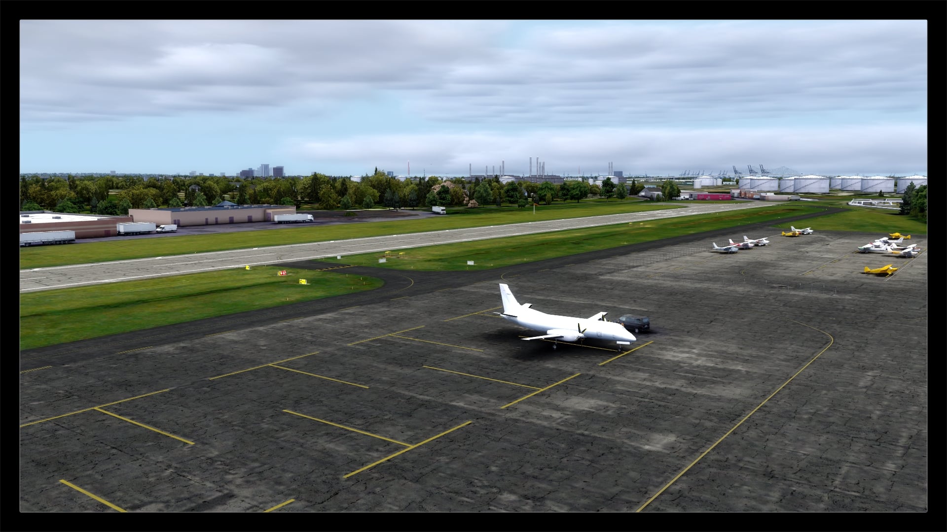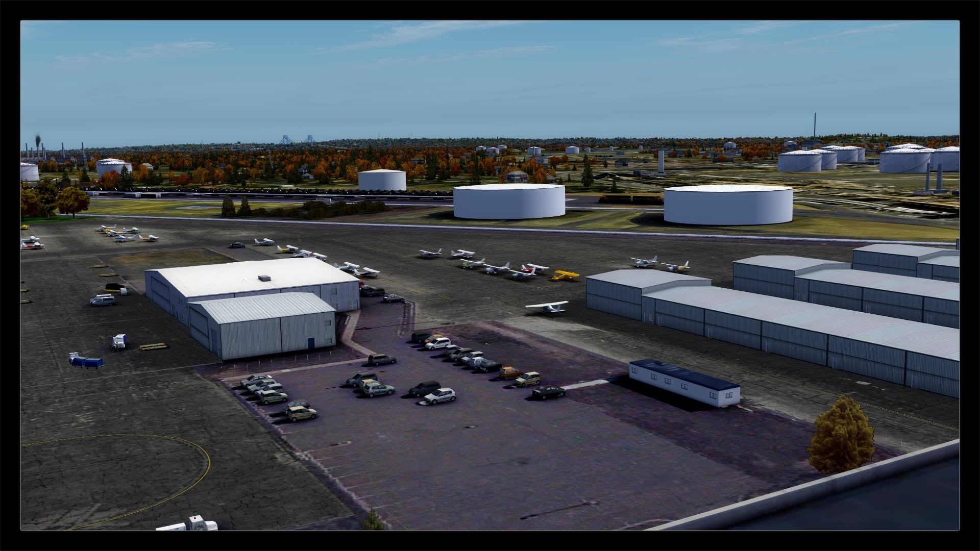 Eingebettet zwischen zwei Golfplätzen, liegt der Essex County Airport ca. 30 km nordwestlich von Manhattan. Abgewickelt wird ausschließlich GA Verkehr. Daher ist es auch nur schwer nachvollziehbar, wieso auf dem Flughafen ULD (Unit Load Device) Container rumstehen. Wie bei den anderen Airports sind die Bodentexturen ganz annehmbar. Allerdings ist der Qualitätsunterscheid zwischen Betonoberfläche und Grasnarbe teilweise stark ausgeprägt. Der Tower ist allenfalls eher rudimentär dargestellt. Der Platz an sich fügt sich sehr gut in die Umgebung ein. Einzig die Einflugschneise der Bahn 22 schneidet sich unschön in einen Teil des angrenzenden Industriegebietes ein. In der Realität ist der Straßenverlauf anders und das Industriegebiet nicht so geformt wie im Simulator ist unklar, und hier der Fehler bei Orbx oder Drzewiecki liegt kann ich nicht beurteilen. Die verwendeten statischen Modelle sind sehr schön und bedürfen keiner Kritik.