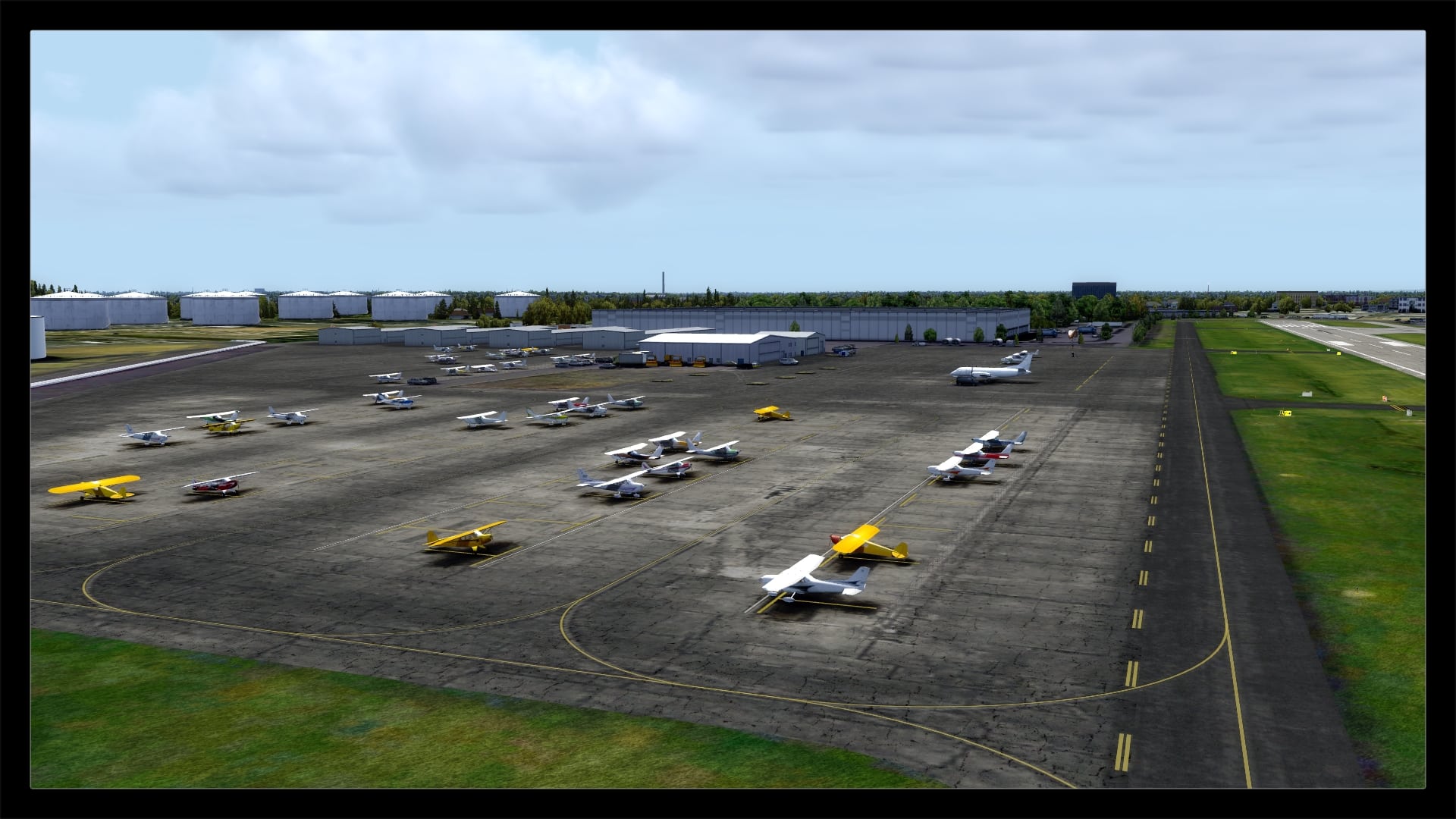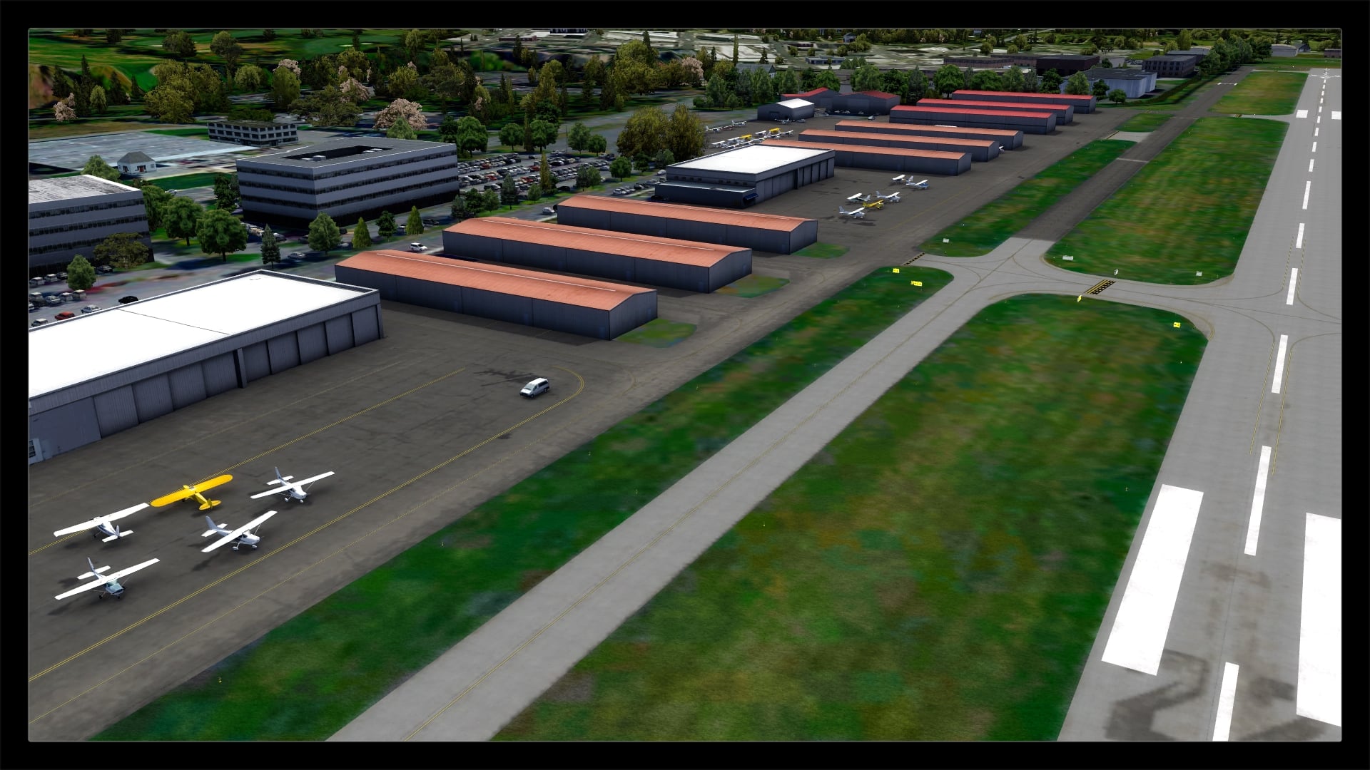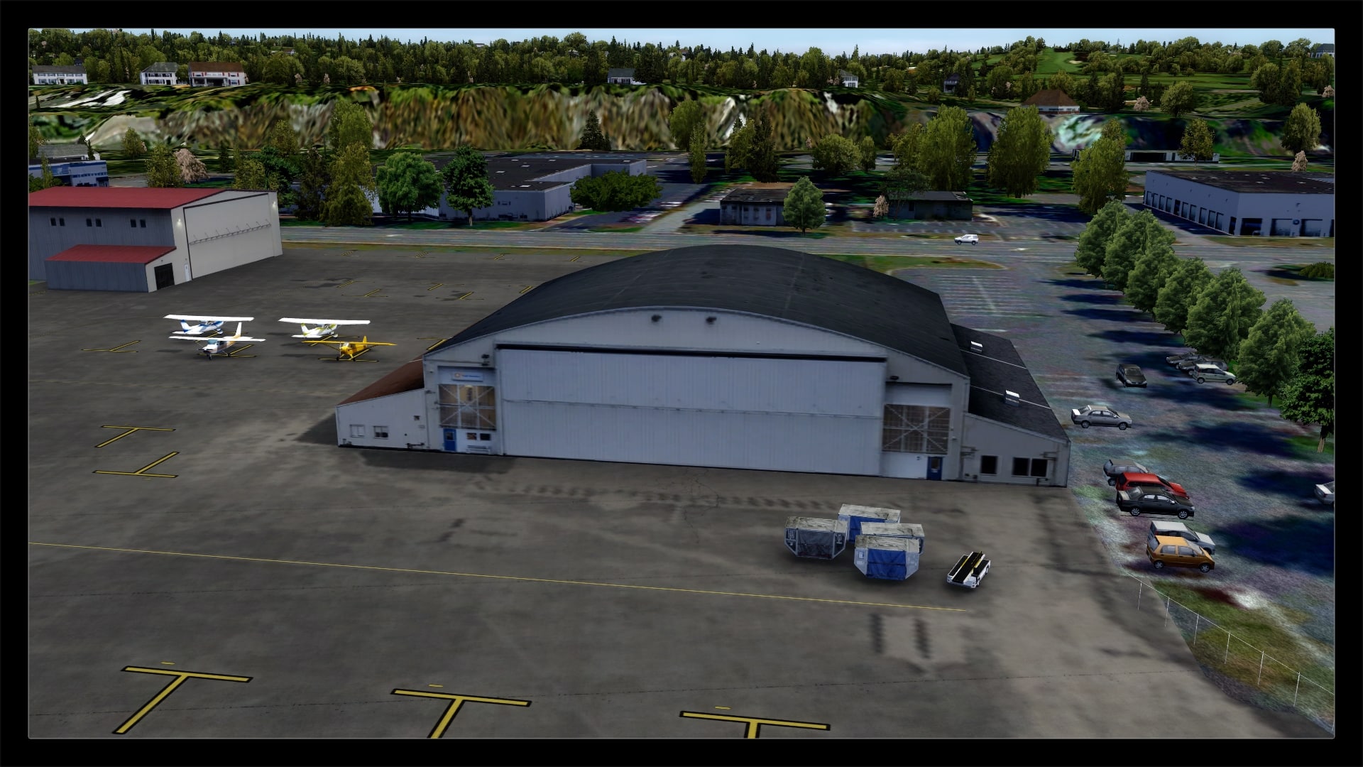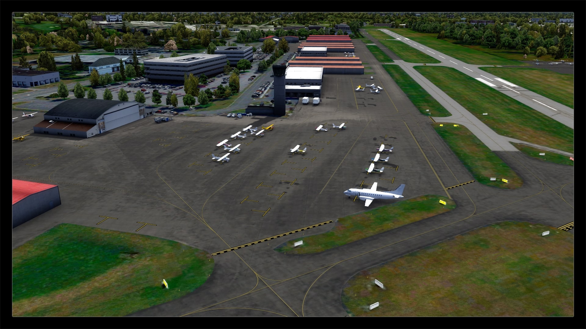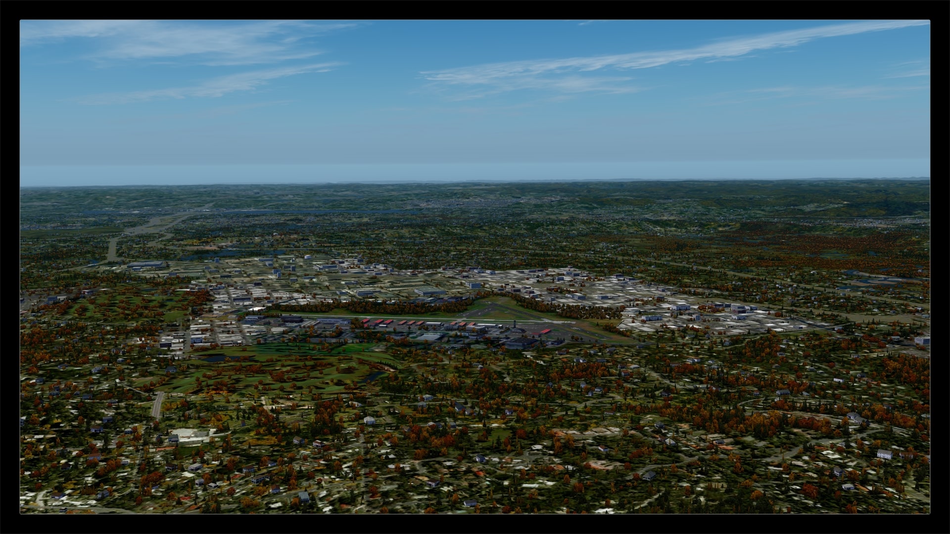 Eingebettet zwischen zwei Golfplätzen, liegt der Essex County Airport ca. 30 km nordwestlich von Manhattan. Abgewickelt wird ausschließlich GA Verkehr. Daher ist es auch nur schwer nachvollziehbar, wieso auf dem Flughafen ULD (Unit Load Device) Container rumstehen. Wie bei den anderen Airports sind die Bodentexturen ganz annehmbar. Allerdings ist der Qualitätsunterscheid zwischen Betonoberfläche und Grasnarbe teilweise stark ausgeprägt. Der Tower ist allenfalls eher rudimentär dargestellt. Der Platz an sich fügt sich sehr gut in die Umgebung ein. Einzig die Einflugschneise der Bahn 22 schneidet sich unschön in einen Teil des angrenzenden Industriegebietes ein. In der Realität ist der Straßenverlauf anders und das Industriegebiet nicht so geformt wie im Simulator ist unklar, und hier der Fehler bei Orbx oder Drzewiecki liegt kann ich nicht beurteilen. Die verwendeten statischen Modelle sind sehr schön und bedürfen keiner Kritik.