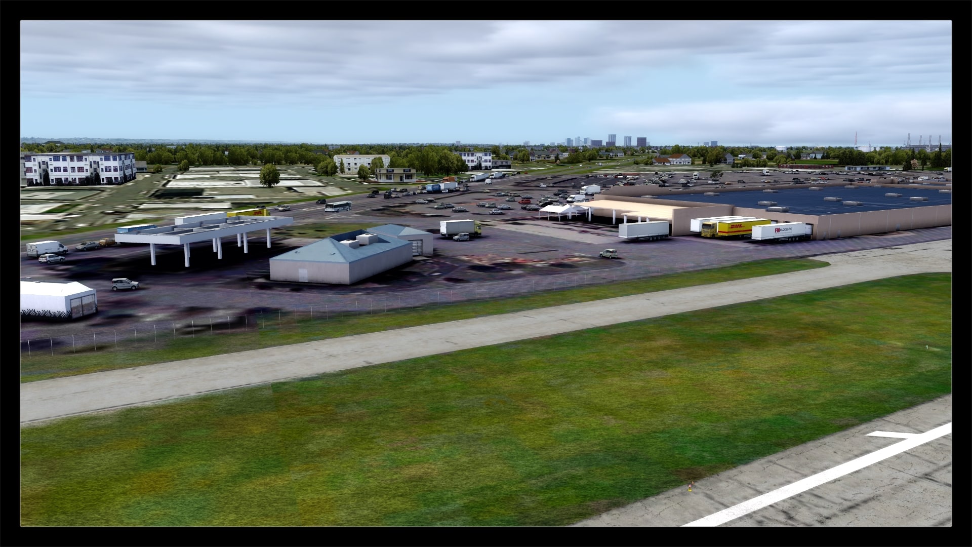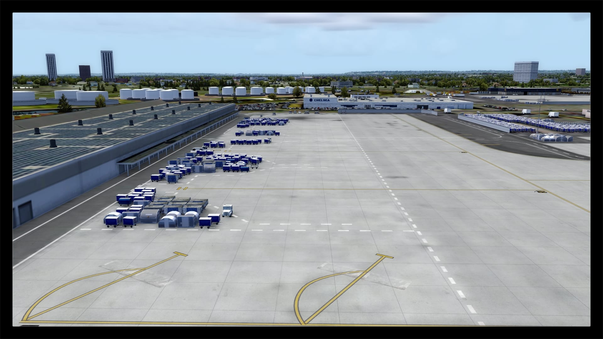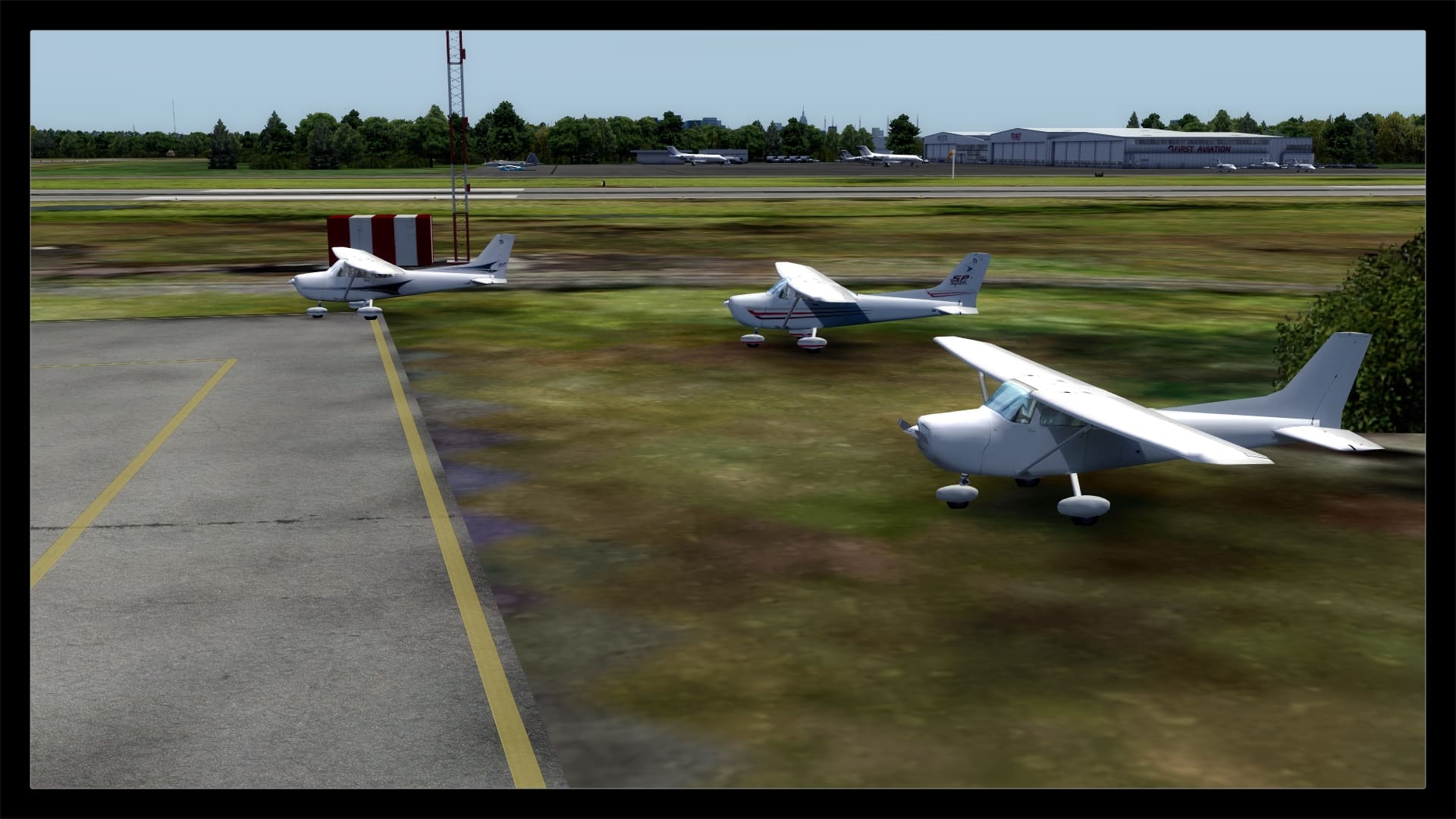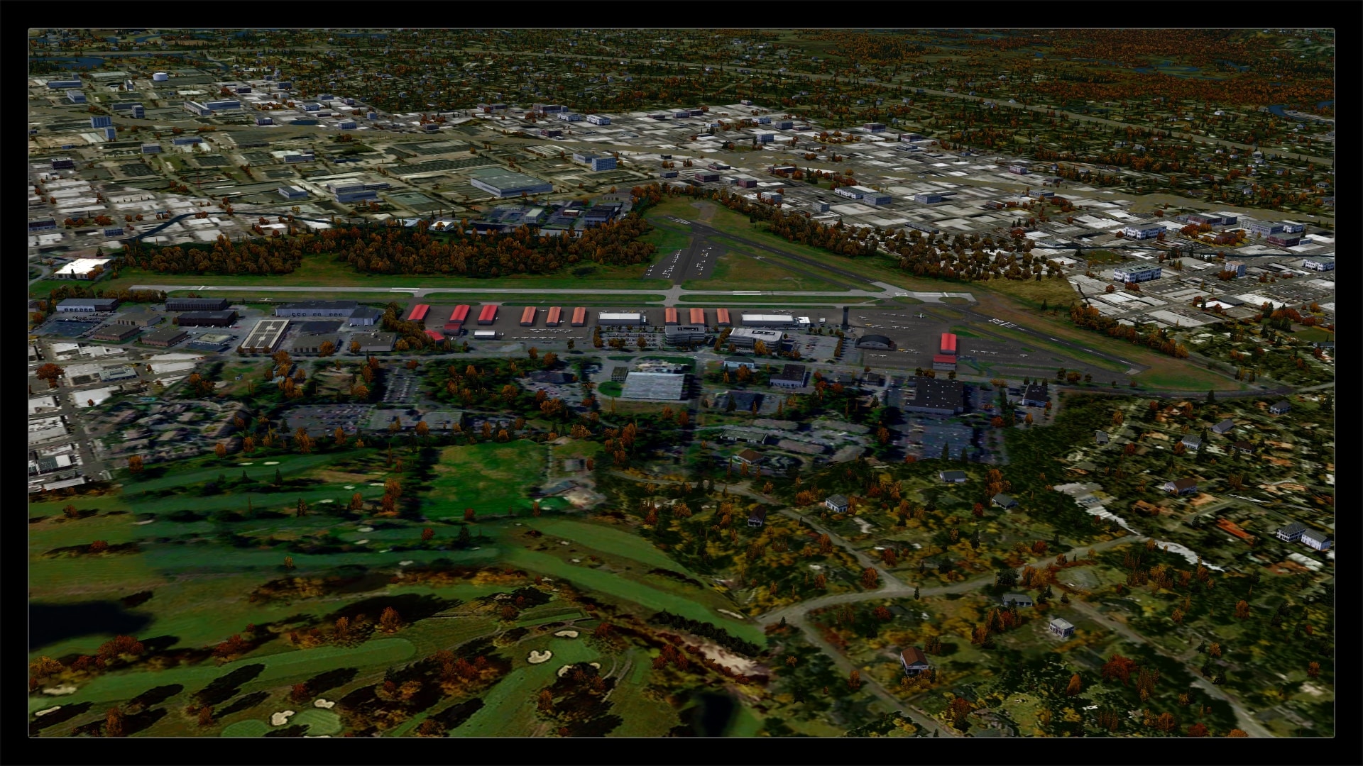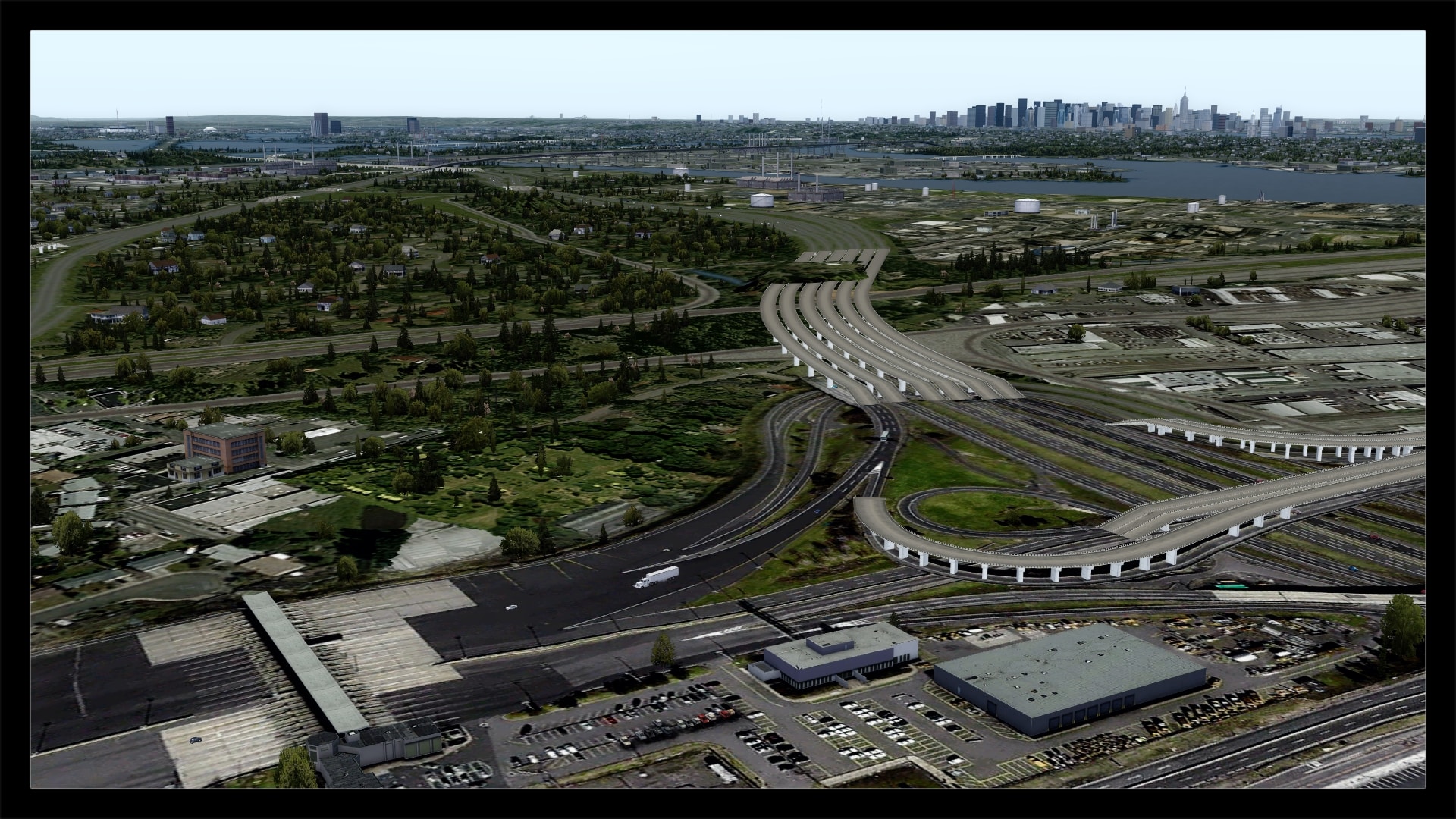 Eingebettet zwischen zwei Golfplätzen, liegt der Essex County Airport ca. 30 km nordwestlich von Manhattan. Abgewickelt wird ausschließlich GA Verkehr. Daher ist es auch nur schwer nachvollziehbar, wieso auf dem Flughafen ULD (Unit Load Device) Container rumstehen. Wie bei den anderen Airports sind die Bodentexturen ganz annehmbar. Allerdings ist der Qualitätsunterscheid zwischen Betonoberfläche und Grasnarbe teilweise stark ausgeprägt. Der Tower ist allenfalls eher rudimentär dargestellt. Der Platz an sich fügt sich sehr gut in die Umgebung ein. Einzig die Einflugschneise der Bahn 22 schneidet sich unschön in einen Teil des angrenzenden Industriegebietes ein. In der Realität ist der Straßenverlauf anders und das Industriegebiet nicht so geformt wie im Simulator ist unklar, und hier der Fehler bei Orbx oder Drzewiecki liegt kann ich nicht beurteilen. Die verwendeten statischen Modelle sind sehr schön und bedürfen keiner Kritik.