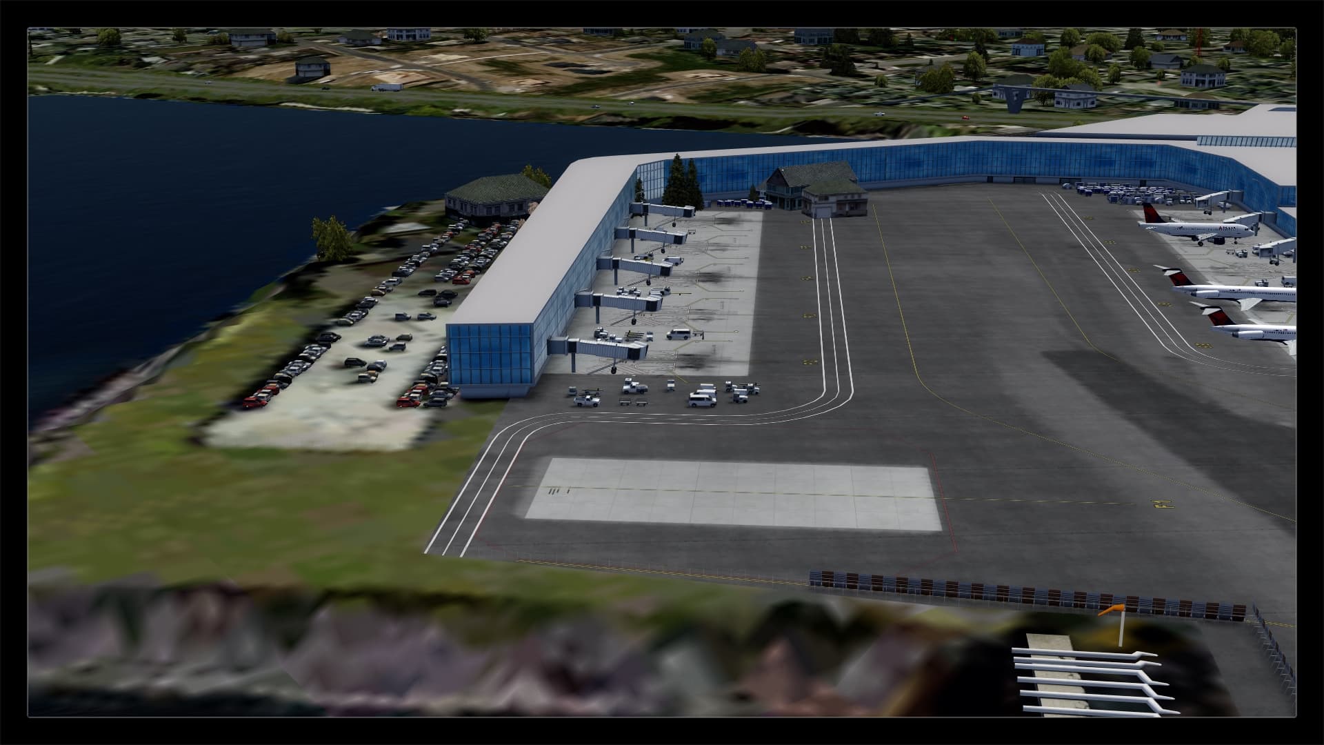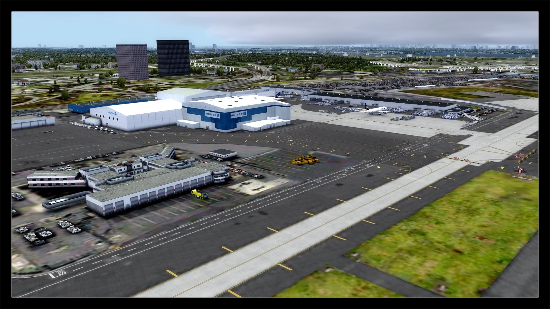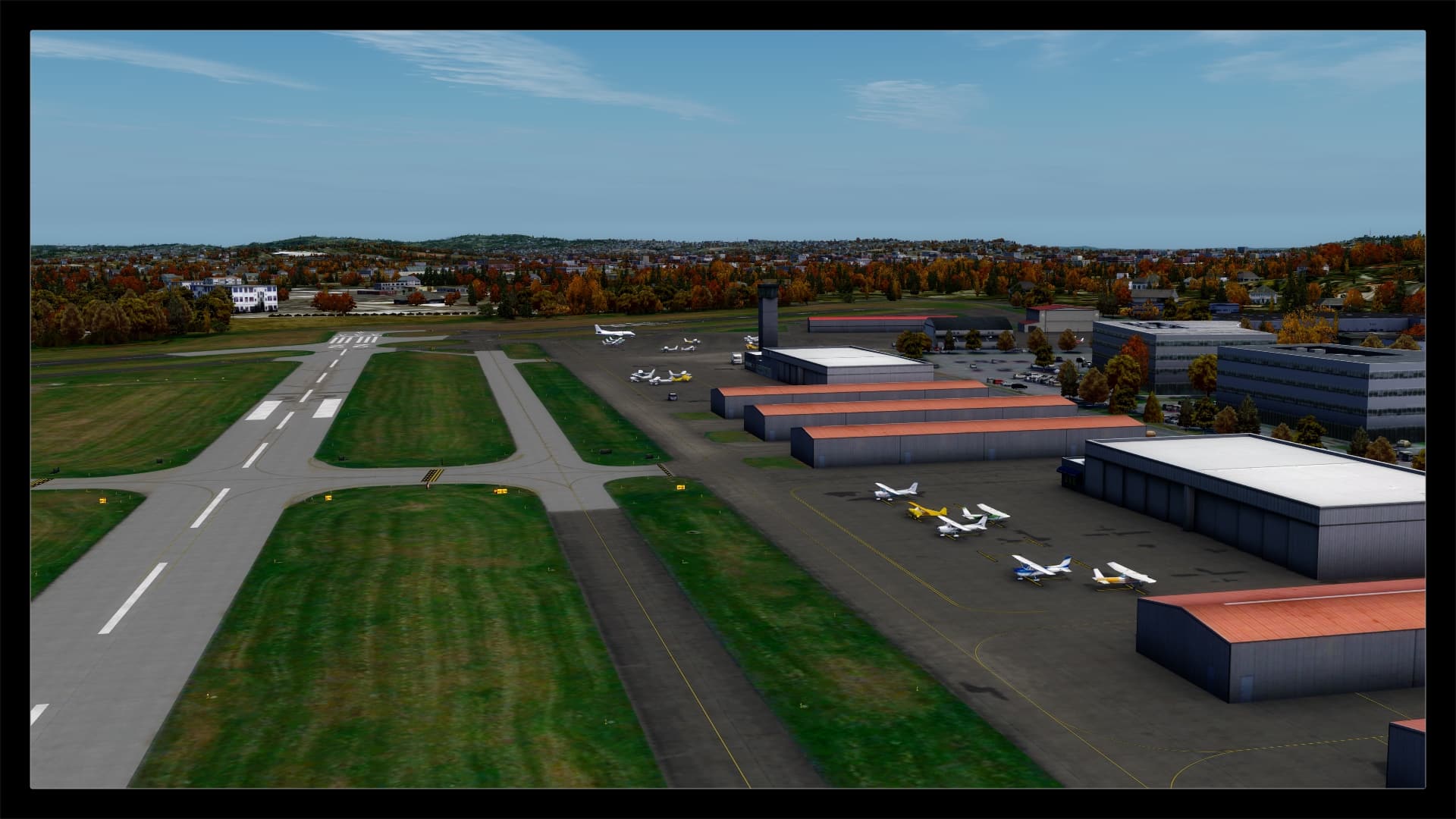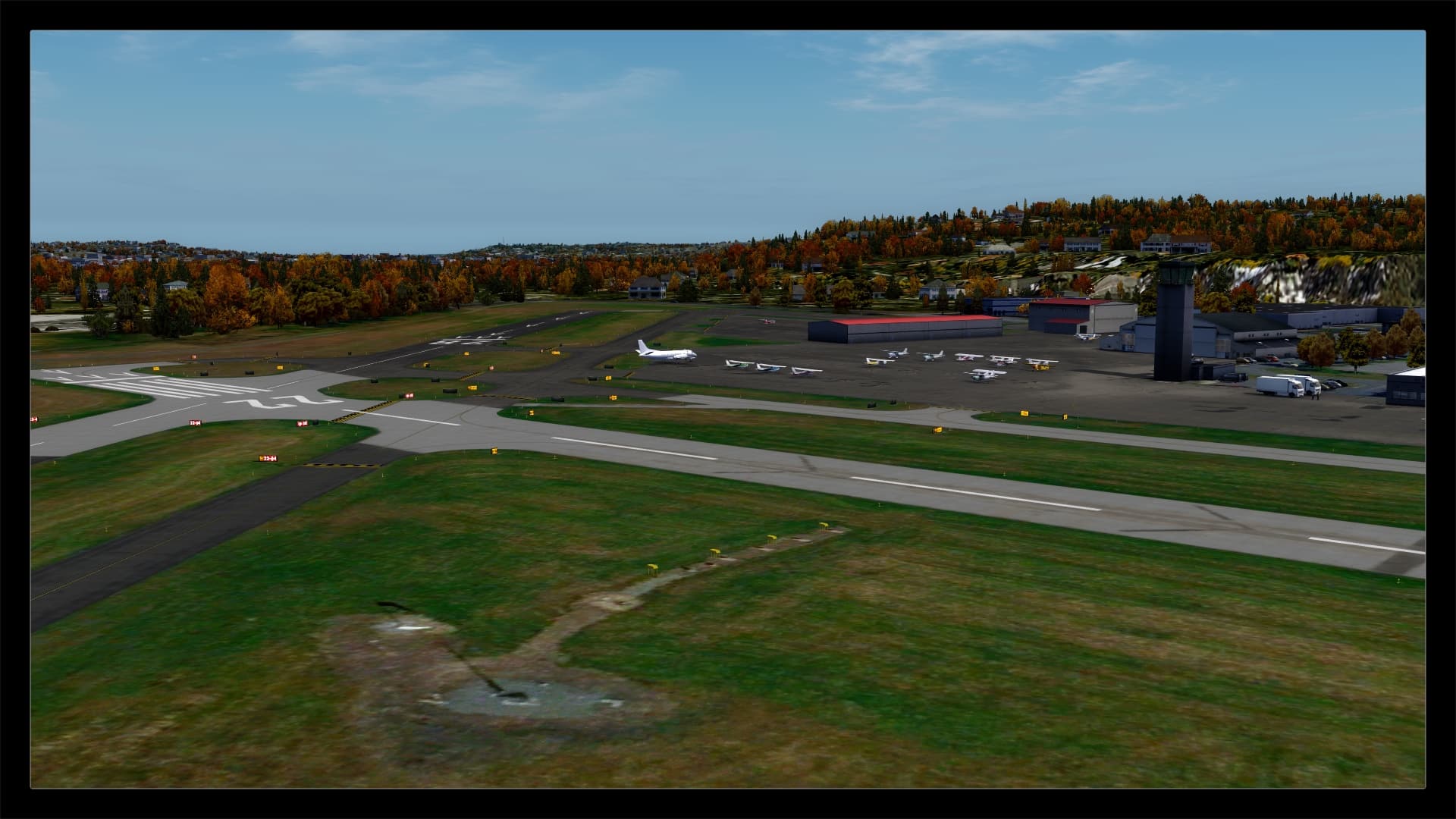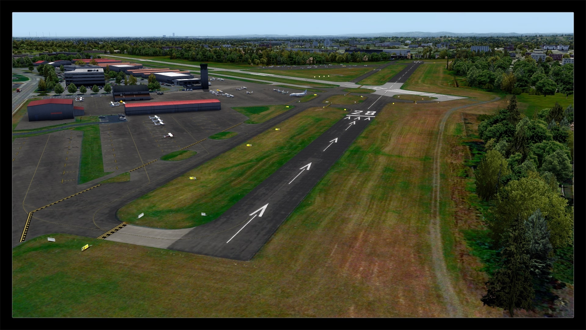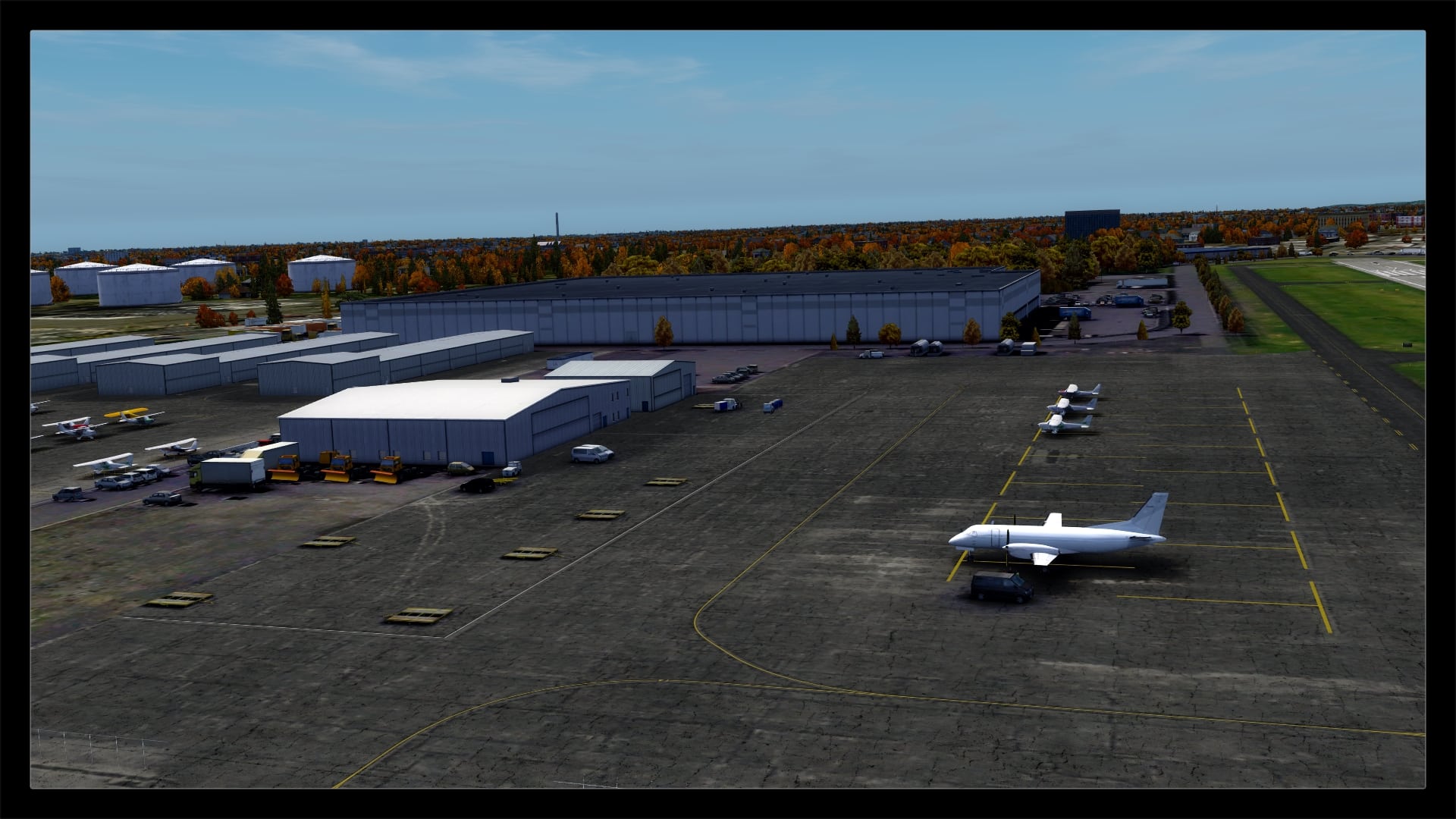 Eingebettet zwischen zwei Golfplätzen, liegt der Essex County Airport ca. 30 km nordwestlich von Manhattan. Abgewickelt wird ausschließlich GA Verkehr. Daher ist es auch nur schwer nachvollziehbar, wieso auf dem Flughafen ULD (Unit Load Device) Container rumstehen. Wie bei den anderen Airports sind die Bodentexturen ganz annehmbar. Allerdings ist der Qualitätsunterscheid zwischen Betonoberfläche und Grasnarbe teilweise stark ausgeprägt. Der Tower ist allenfalls eher rudimentär dargestellt. Der Platz an sich fügt sich sehr gut in die Umgebung ein. Einzig die Einflugschneise der Bahn 22 schneidet sich unschön in einen Teil des angrenzenden Industriegebietes ein. In der Realität ist der Straßenverlauf anders und das Industriegebiet nicht so geformt wie im Simulator ist unklar, und hier der Fehler bei Orbx oder Drzewiecki liegt kann ich nicht beurteilen. Die verwendeten statischen Modelle sind sehr schön und bedürfen keiner Kritik.
