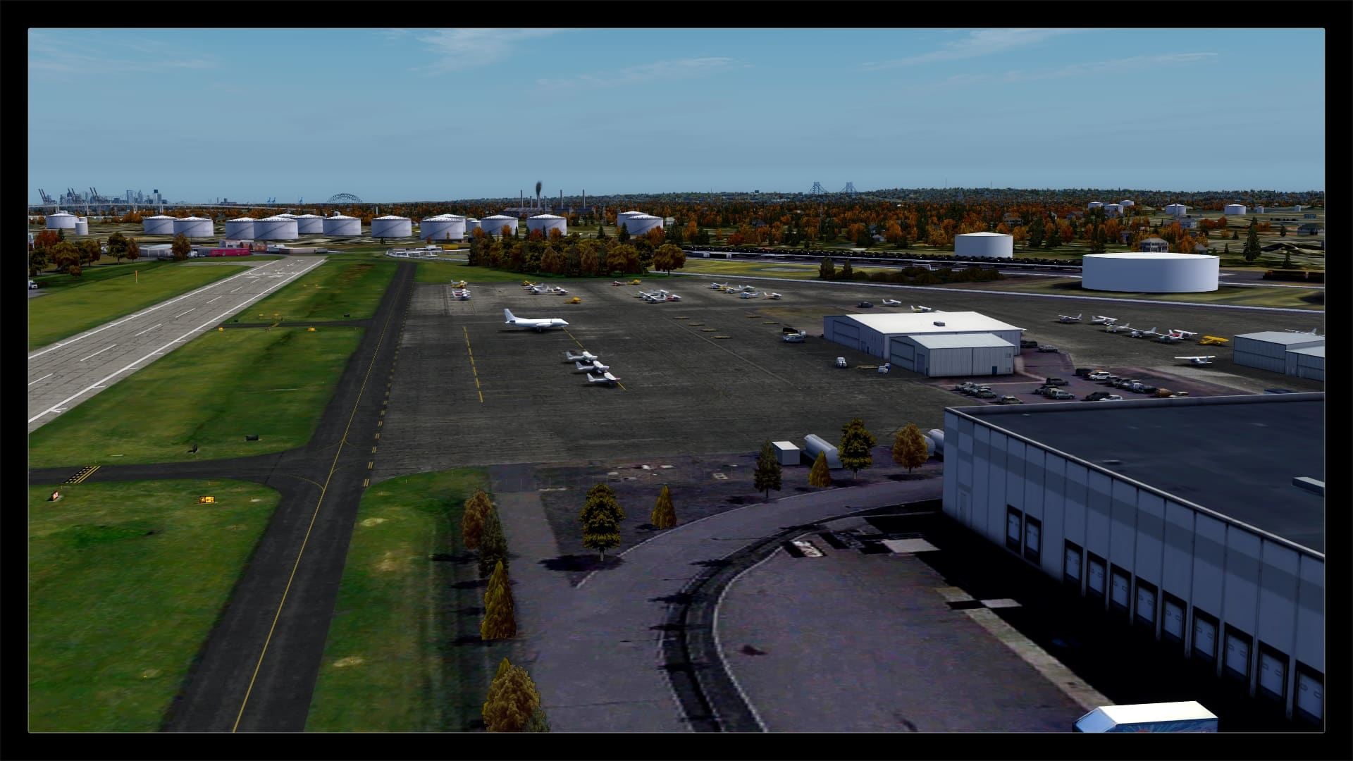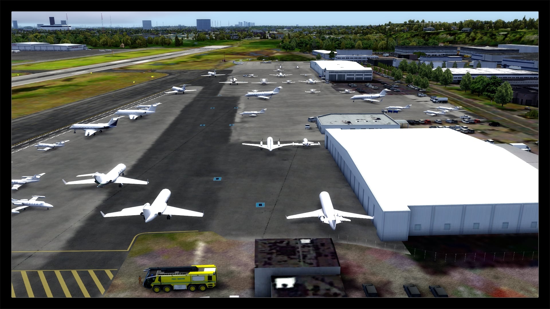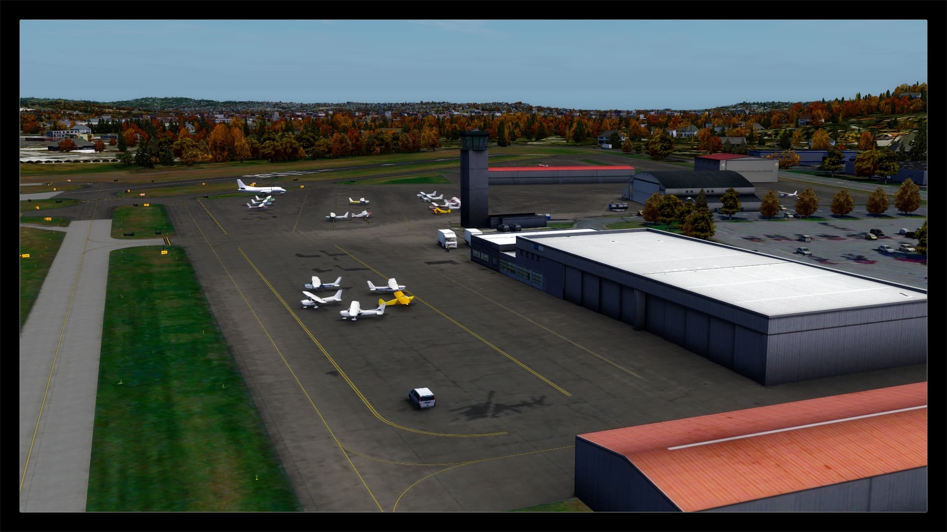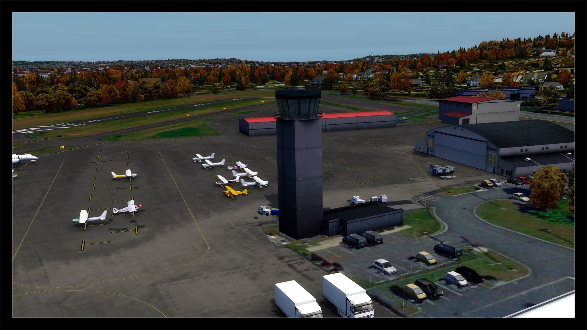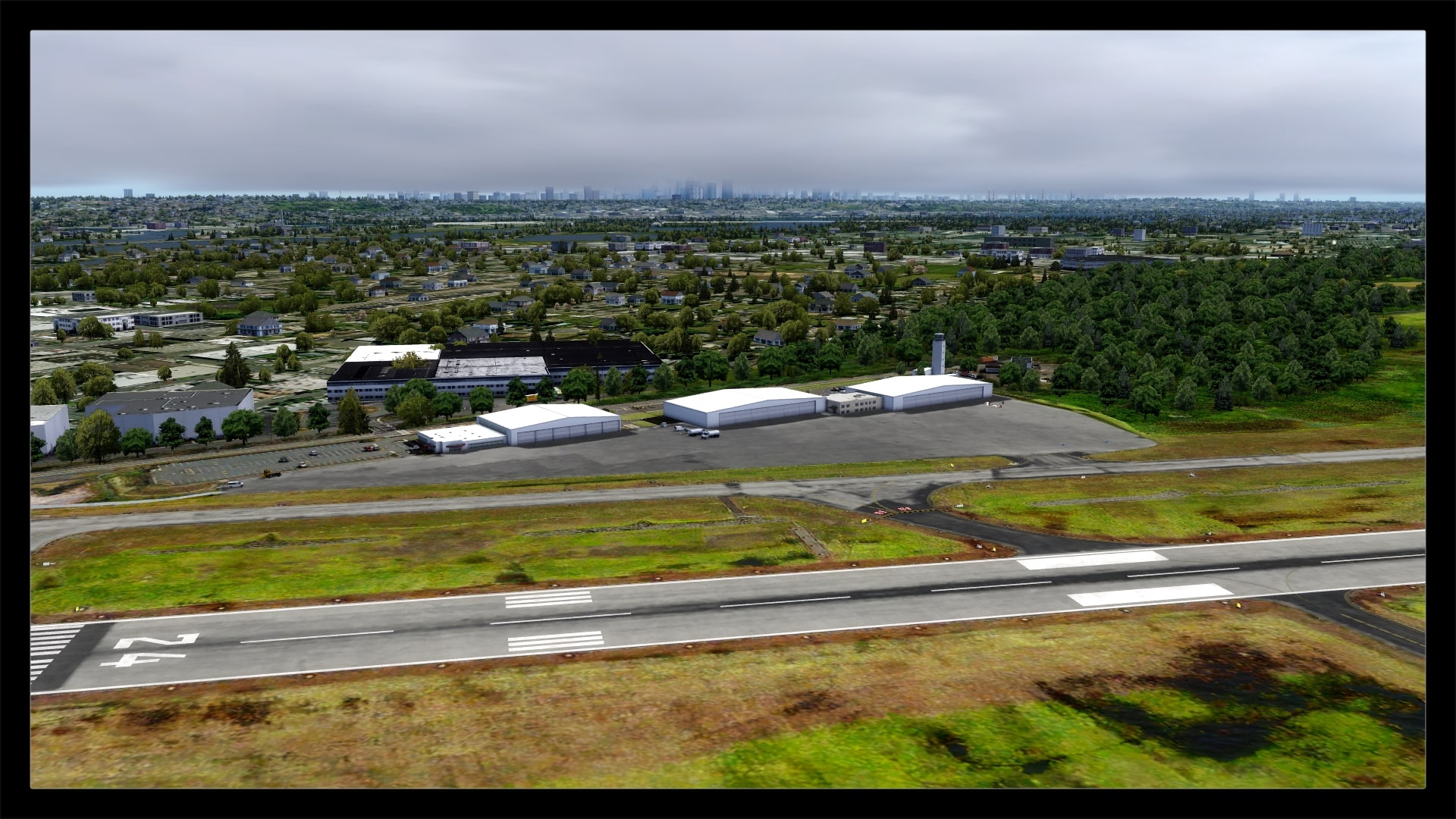 Eingebettet zwischen zwei Golfplätzen, liegt der Essex County Airport ca. 30 km nordwestlich von Manhattan. Abgewickelt wird ausschließlich GA Verkehr. Daher ist es auch nur schwer nachvollziehbar, wieso auf dem Flughafen ULD (Unit Load Device) Container rumstehen. Wie bei den anderen Airports sind die Bodentexturen ganz annehmbar. Allerdings ist der Qualitätsunterscheid zwischen Betonoberfläche und Grasnarbe teilweise stark ausgeprägt. Der Tower ist allenfalls eher rudimentär dargestellt. Der Platz an sich fügt sich sehr gut in die Umgebung ein. Einzig die Einflugschneise der Bahn 22 schneidet sich unschön in einen Teil des angrenzenden Industriegebietes ein. In der Realität ist der Straßenverlauf anders und das Industriegebiet nicht so geformt wie im Simulator ist unklar, und hier der Fehler bei Orbx oder Drzewiecki liegt kann ich nicht beurteilen. Die verwendeten statischen Modelle sind sehr schön und bedürfen keiner Kritik.
