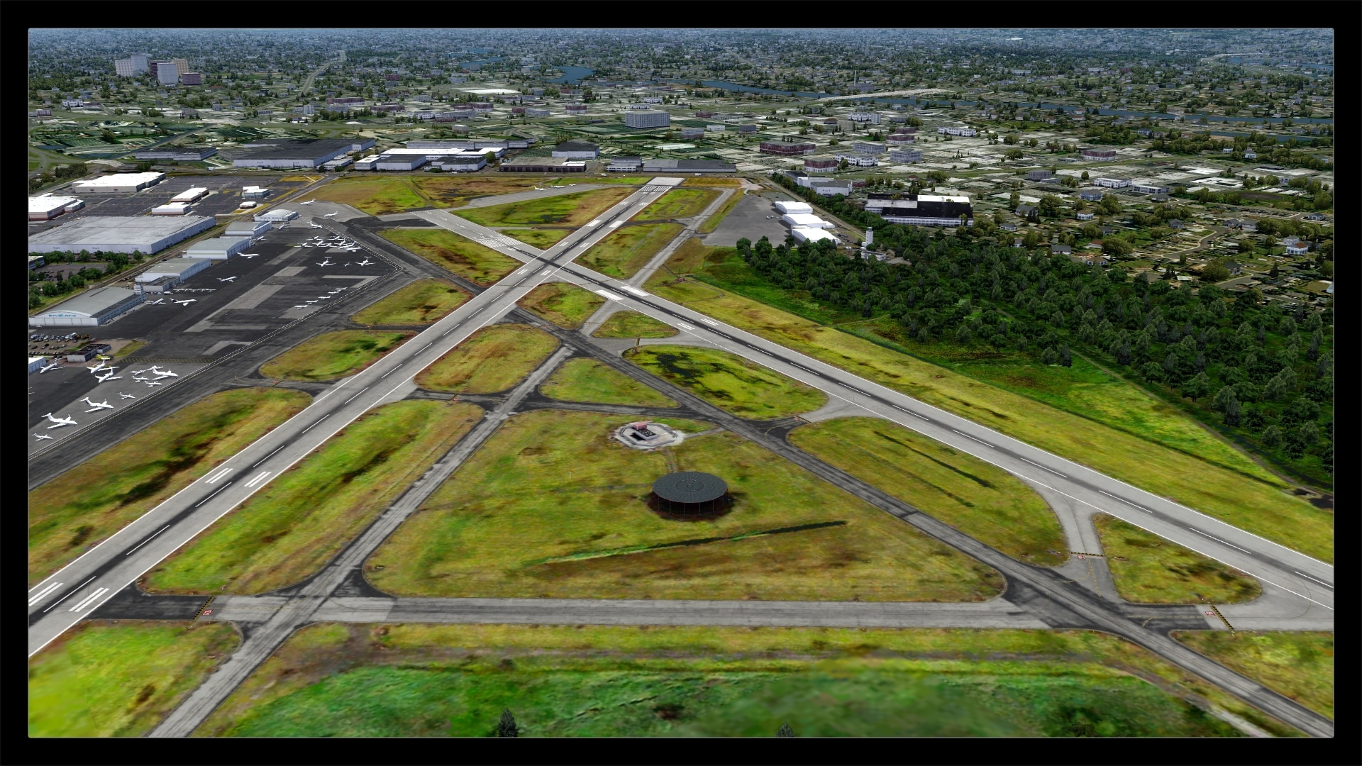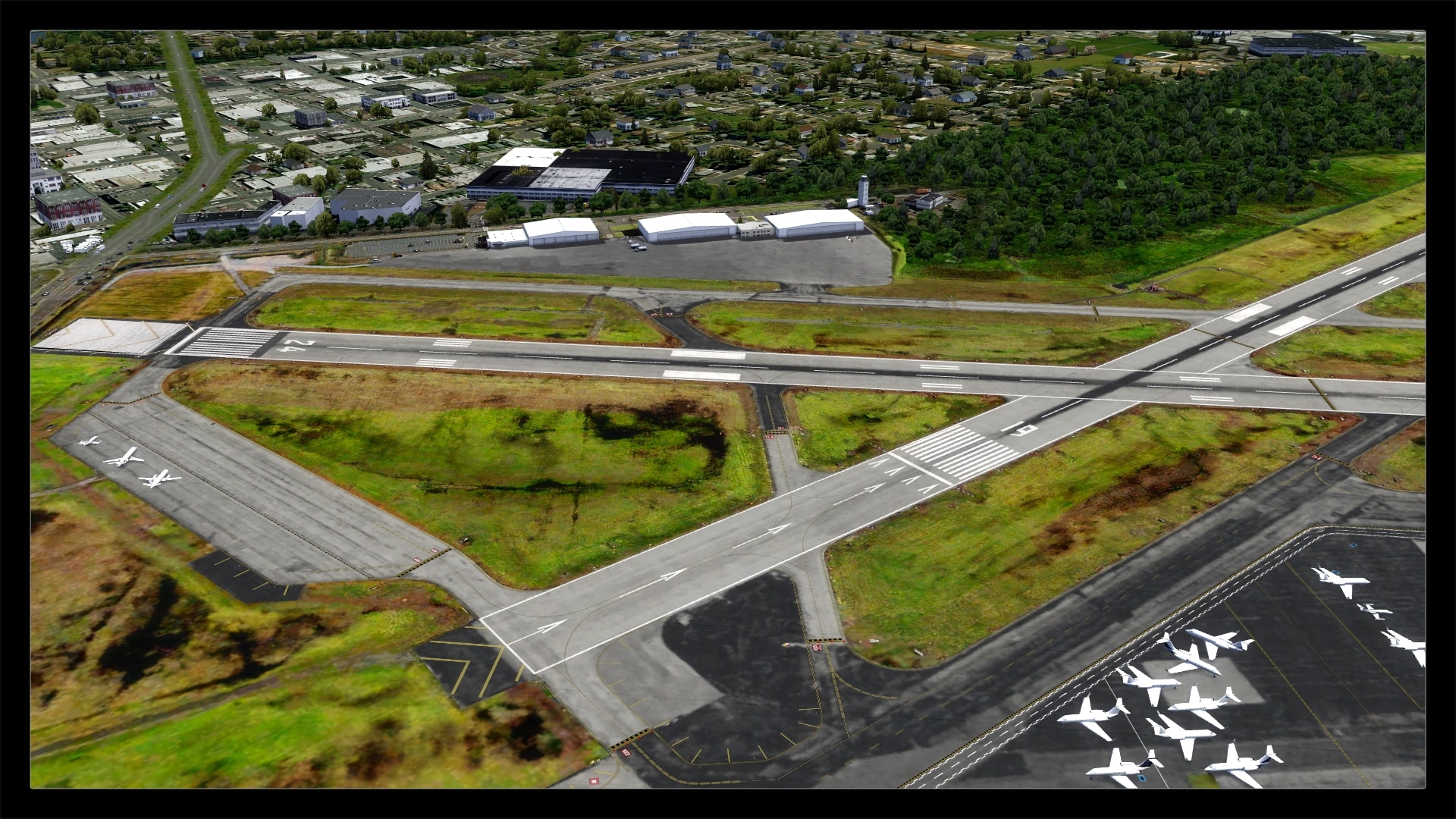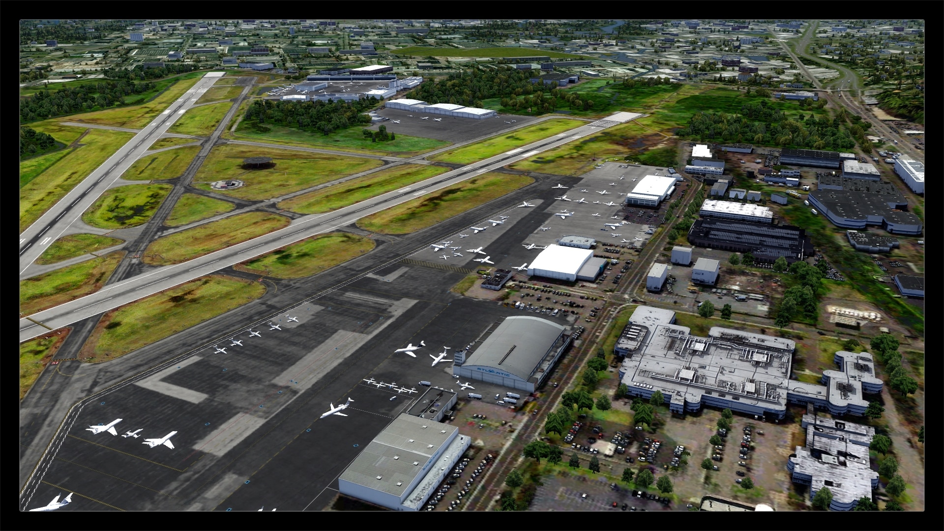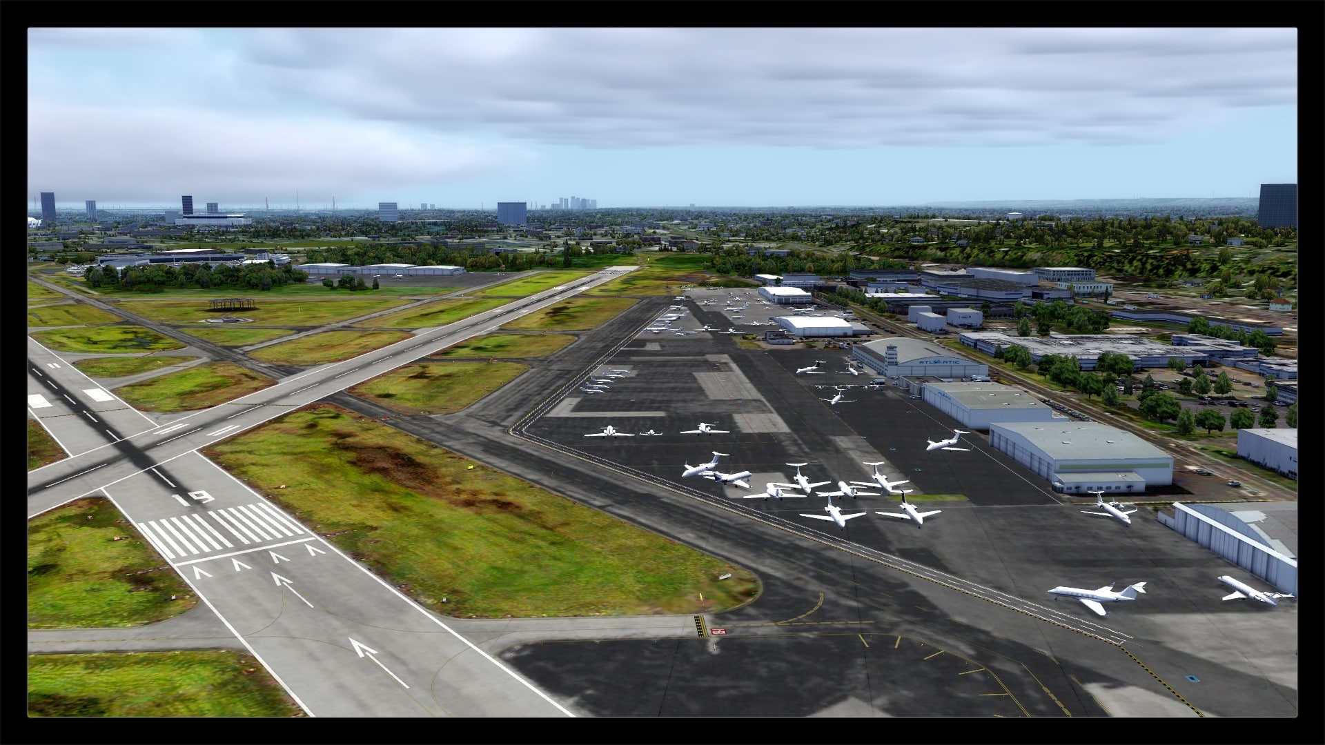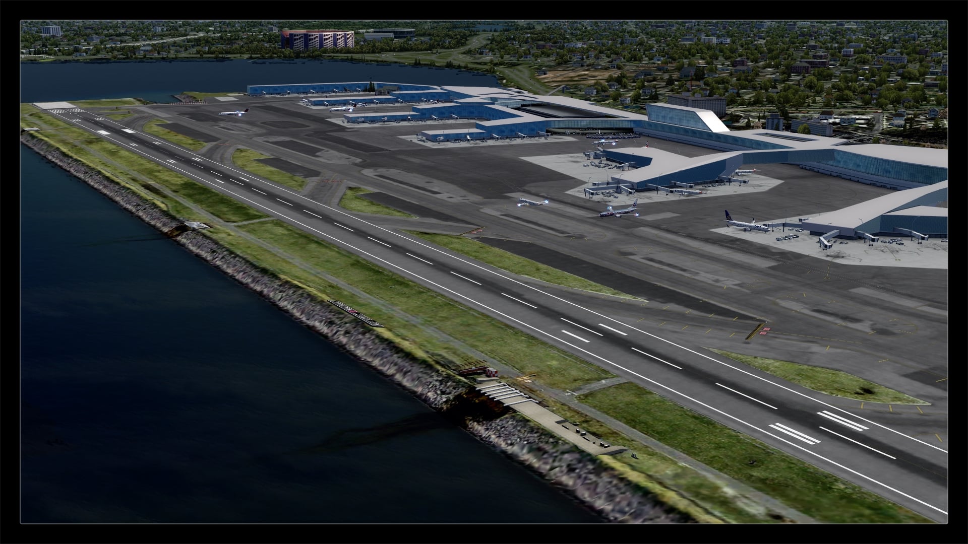Eingebettet zwischen zwei Golfplätzen, liegt der Essex County Airport ca. 30 km nordwestlich von Manhattan. Abgewickelt wird ausschließlich GA Verkehr. Daher ist es auch nur schwer nachvollziehbar, wieso auf dem Flughafen ULD (Unit Load Device) Container rumstehen. Wie bei den anderen Airports sind die Bodentexturen ganz annehmbar. Allerdings ist der Qualitätsunterscheid zwischen Betonoberfläche und Grasnarbe teilweise stark ausgeprägt. Der Tower ist allenfalls eher rudimentär dargestellt. Der Platz an sich fügt sich sehr gut in die Umgebung ein. Einzig die Einflugschneise der Bahn 22 schneidet sich unschön in einen Teil des angrenzenden Industriegebietes ein. In der Realität ist der Straßenverlauf anders und das Industriegebiet nicht so geformt wie im Simulator ist unklar, und hier der Fehler bei Orbx oder Drzewiecki liegt kann ich nicht beurteilen. Die verwendeten statischen Modelle sind sehr schön und bedürfen keiner Kritik.