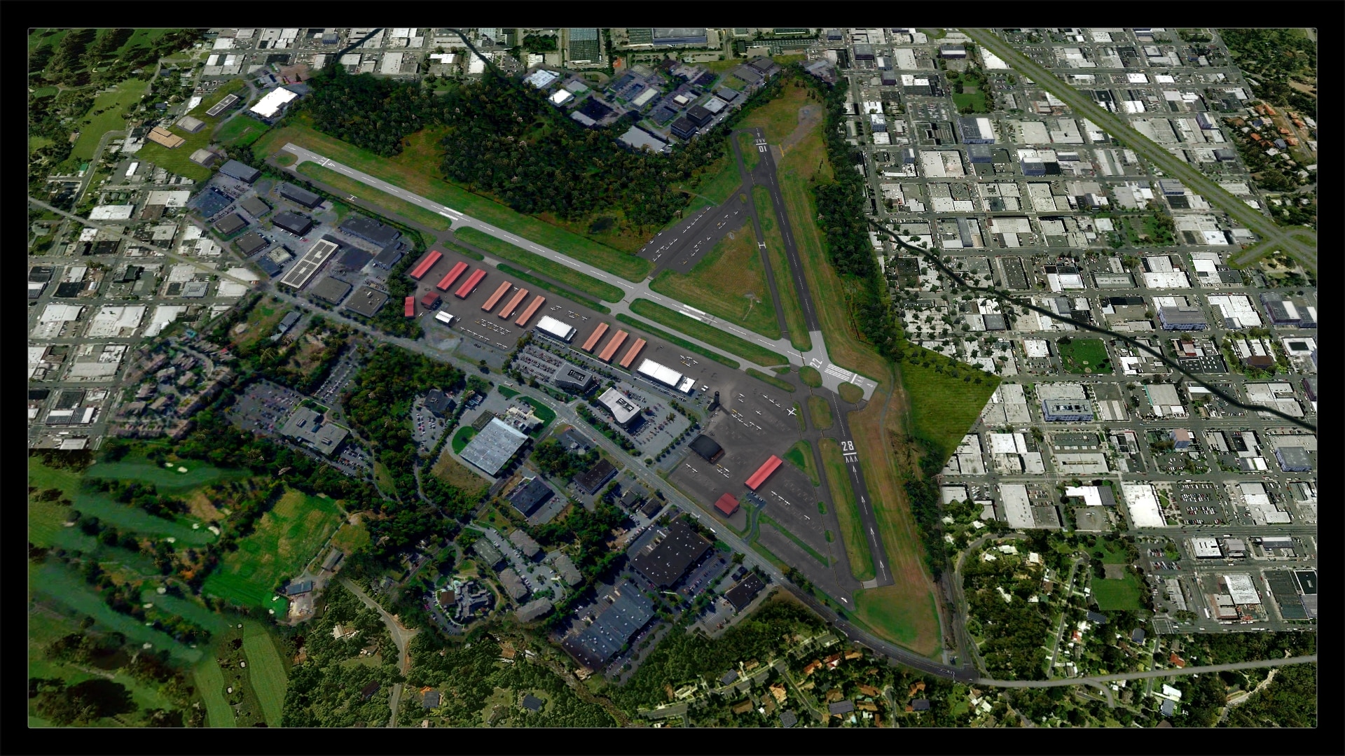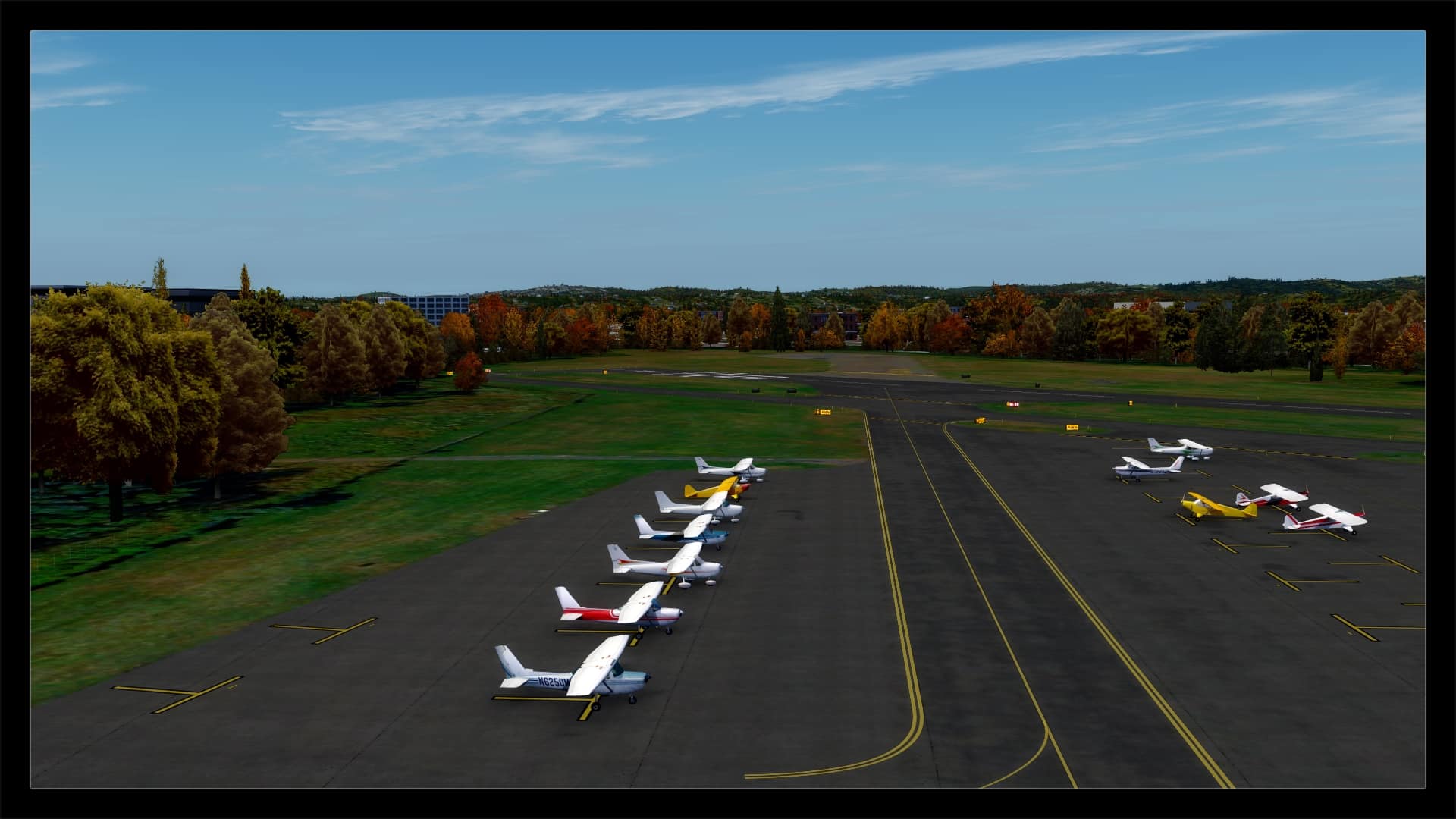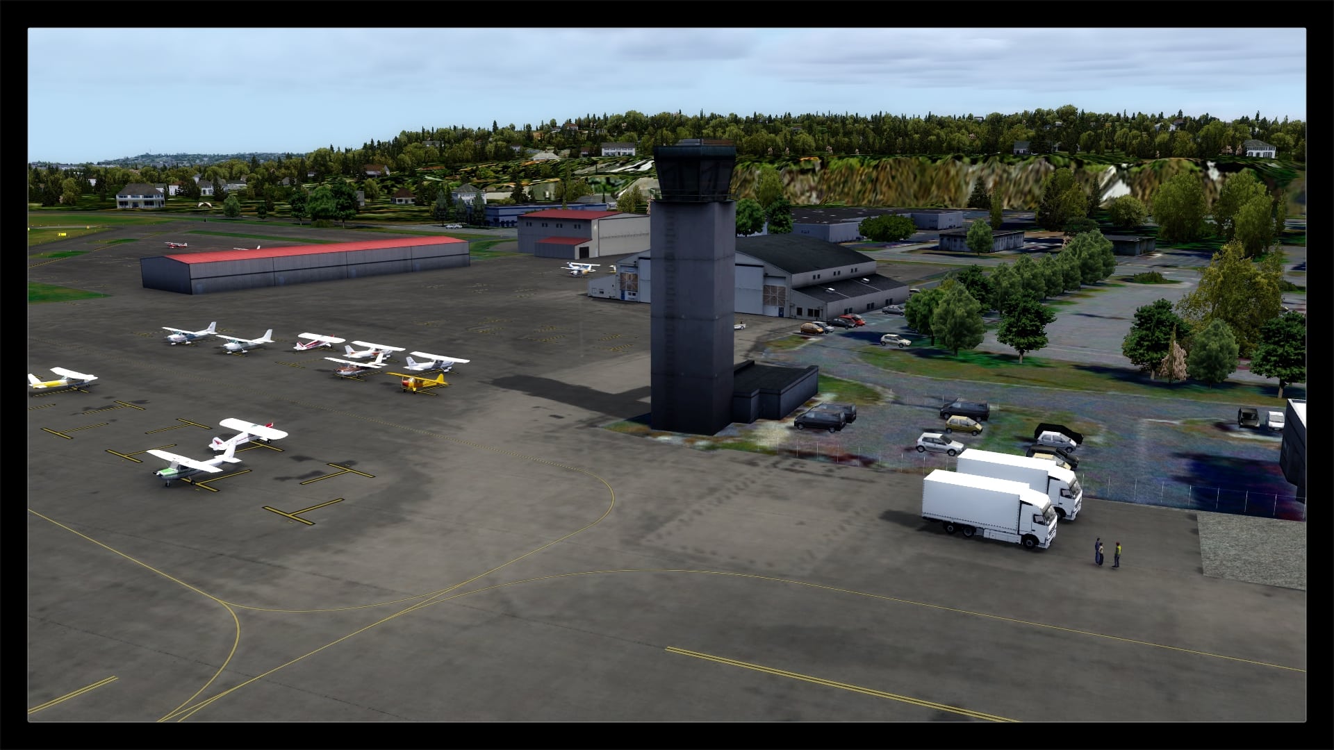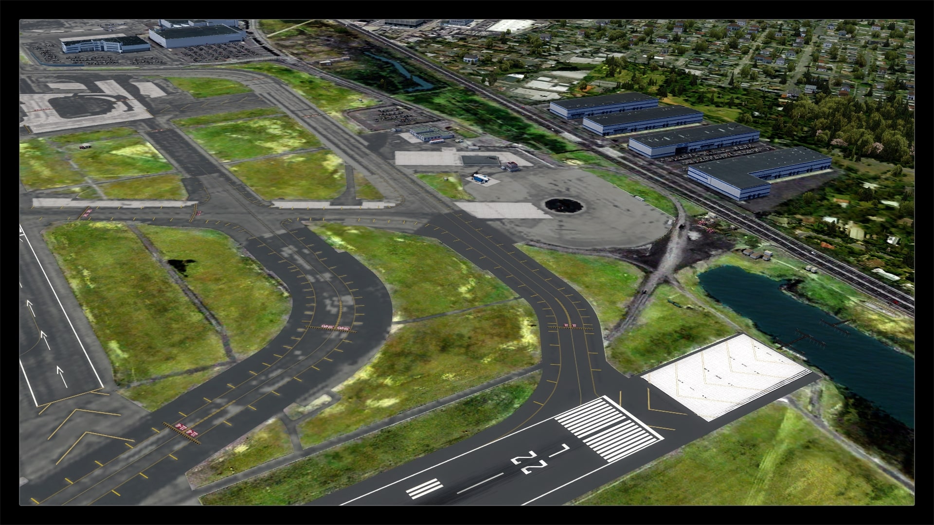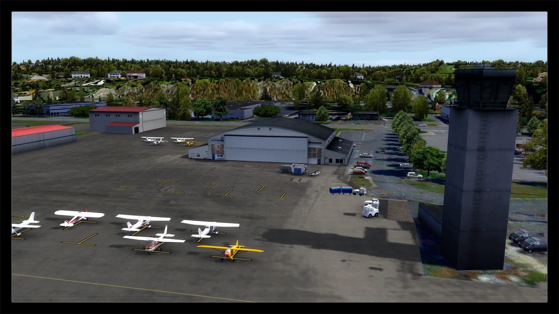 Eingebettet zwischen zwei Golfplätzen, liegt der Essex County Airport ca. 30 km nordwestlich von Manhattan. Abgewickelt wird ausschließlich GA Verkehr. Daher ist es auch nur schwer nachvollziehbar, wieso auf dem Flughafen ULD (Unit Load Device) Container rumstehen. Wie bei den anderen Airports sind die Bodentexturen ganz annehmbar. Allerdings ist der Qualitätsunterscheid zwischen Betonoberfläche und Grasnarbe teilweise stark ausgeprägt. Der Tower ist allenfalls eher rudimentär dargestellt. Der Platz an sich fügt sich sehr gut in die Umgebung ein. Einzig die Einflugschneise der Bahn 22 schneidet sich unschön in einen Teil des angrenzenden Industriegebietes ein. In der Realität ist der Straßenverlauf anders und das Industriegebiet nicht so geformt wie im Simulator ist unklar, und hier der Fehler bei Orbx oder Drzewiecki liegt kann ich nicht beurteilen. Die verwendeten statischen Modelle sind sehr schön und bedürfen keiner Kritik.