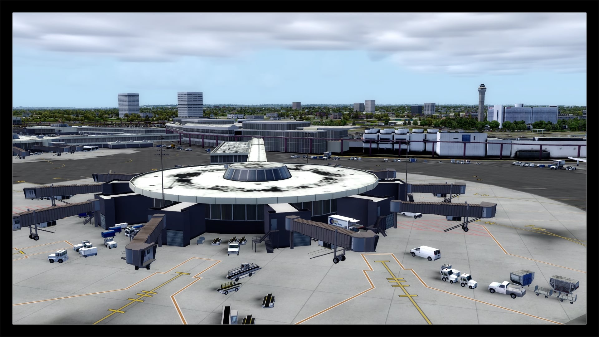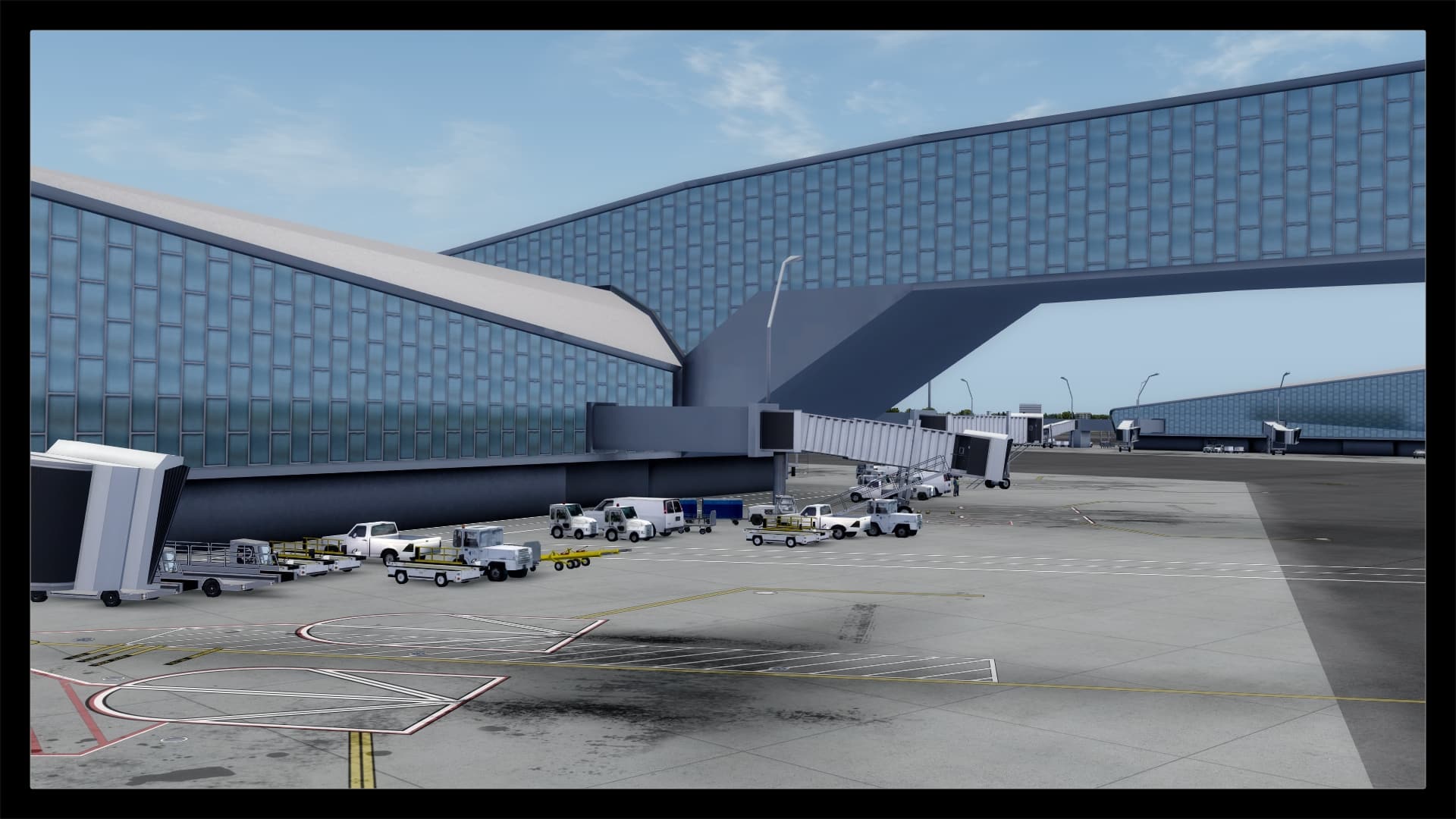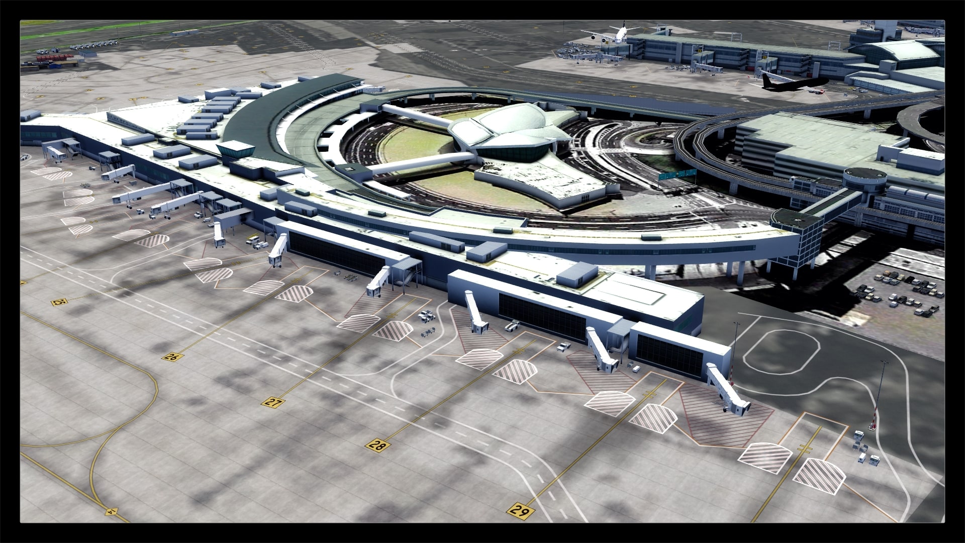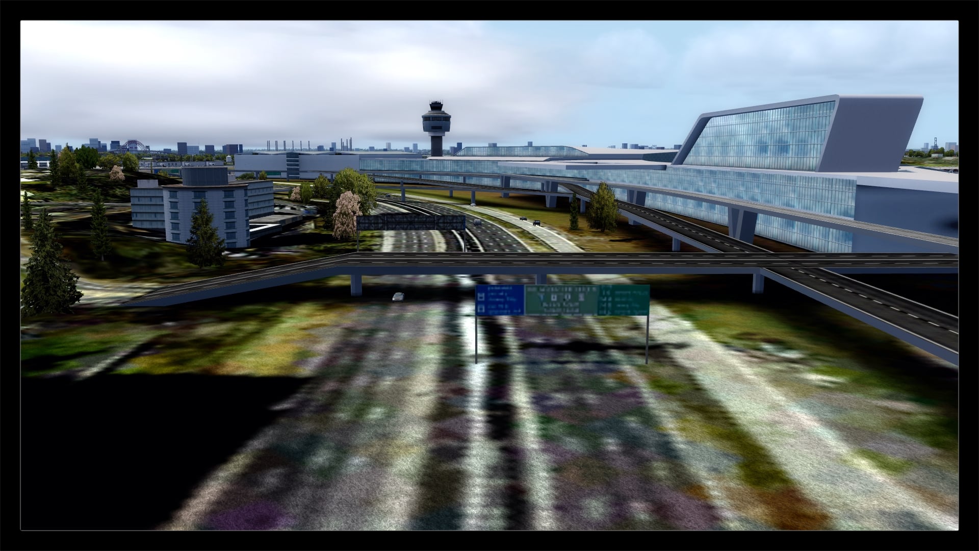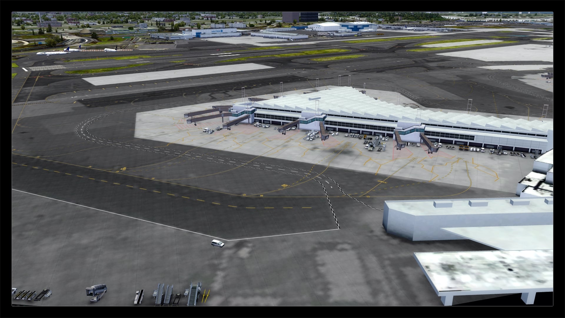 Beim ersten Anflug auf LaGuardia ist man etwas erschrocken, sofern man vorher das Manual nicht gelesen hat. Stimmt doch die Darstellung im Simulator so gar nicht mit der aktuellen Realität überein. Drzewiecki Design hat sich entschlossen, KLGA so darzustellen, wie es nach den umfangreichen Baumaßnahmen aussehen würde. Als Vorlage diente ihnen dabei ein Entwurf der Port Authority. Daher ist es schlicht unmöglich eine Aussage darüber zutreffen, ob die Umsetzung gut gelungen ist. Der Flughafen sieht jedenfalls sehr klinisch sauber aus, wobei die Bodentexturen ein besseres Bild abgeben als bei JFK. Die sehr moderne neue Konstruktion passt sich auch gefühlt sehr schwer in das Gesamtbild ein. Gerade im direkten Vergleich, wie z.B. beim Parkhaus, hat man teilweise das Gefühl, dass sich da zwei Szenerien ins Gehege kommen. Auch muss sich ein Fehler im hinteren Bereich des Airports eingeschlichen haben, denn hier stehen Wohnhäuser am Terminal. Insgesamt sind wieder ausreichend Bodengeräte vorhanden, die Gebäude sind zum Teil mit einigen Details versehen. Auch entdeckt man kleine dargestellte Szenerien. Alles in allem wirkt die Umsetzung aber lieblos und man wird den Eindruck nicht los, dass sie an manchen Stellen schlicht nicht wussten wie die finale Ausgestaltung aussehen wird.