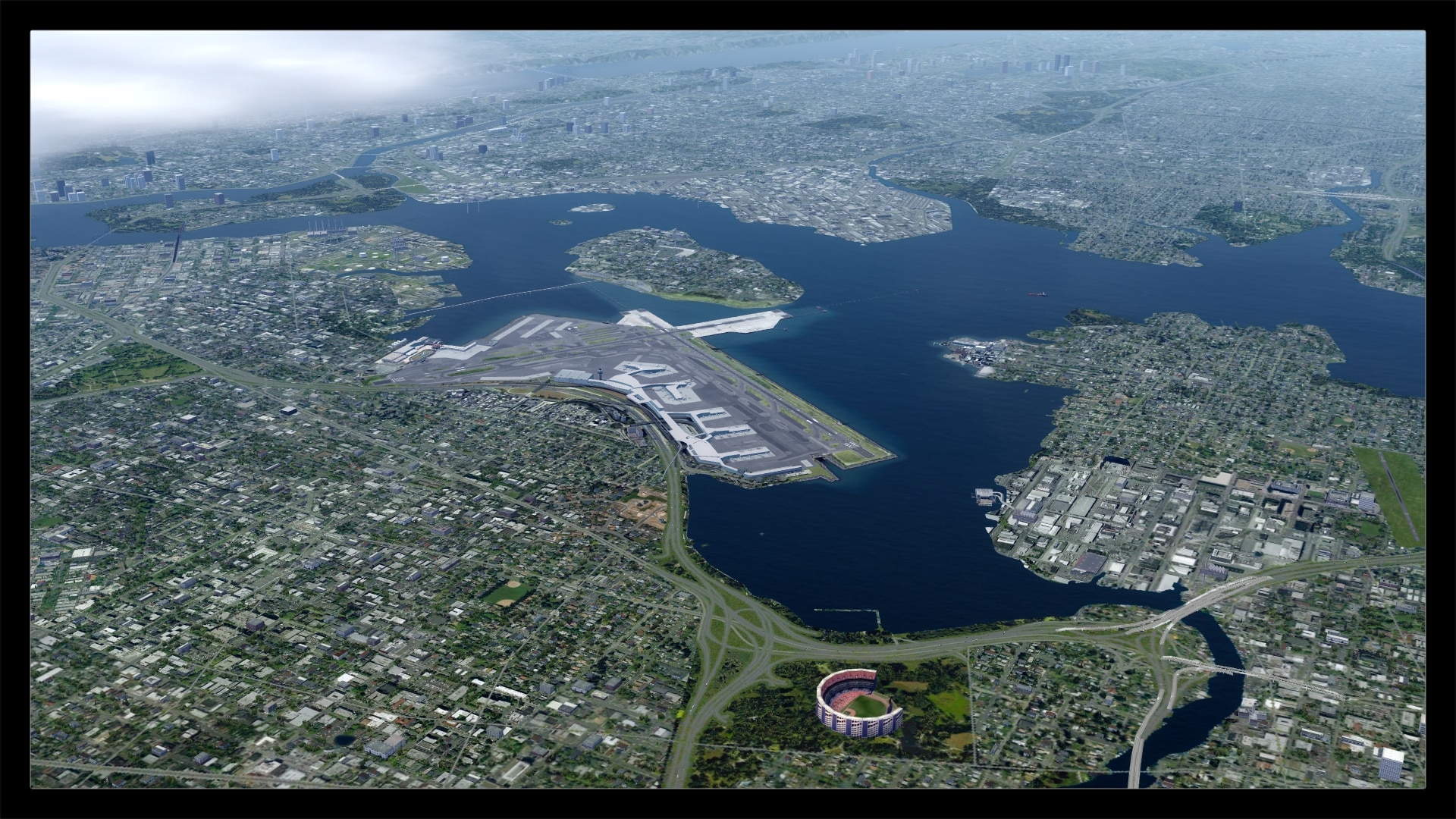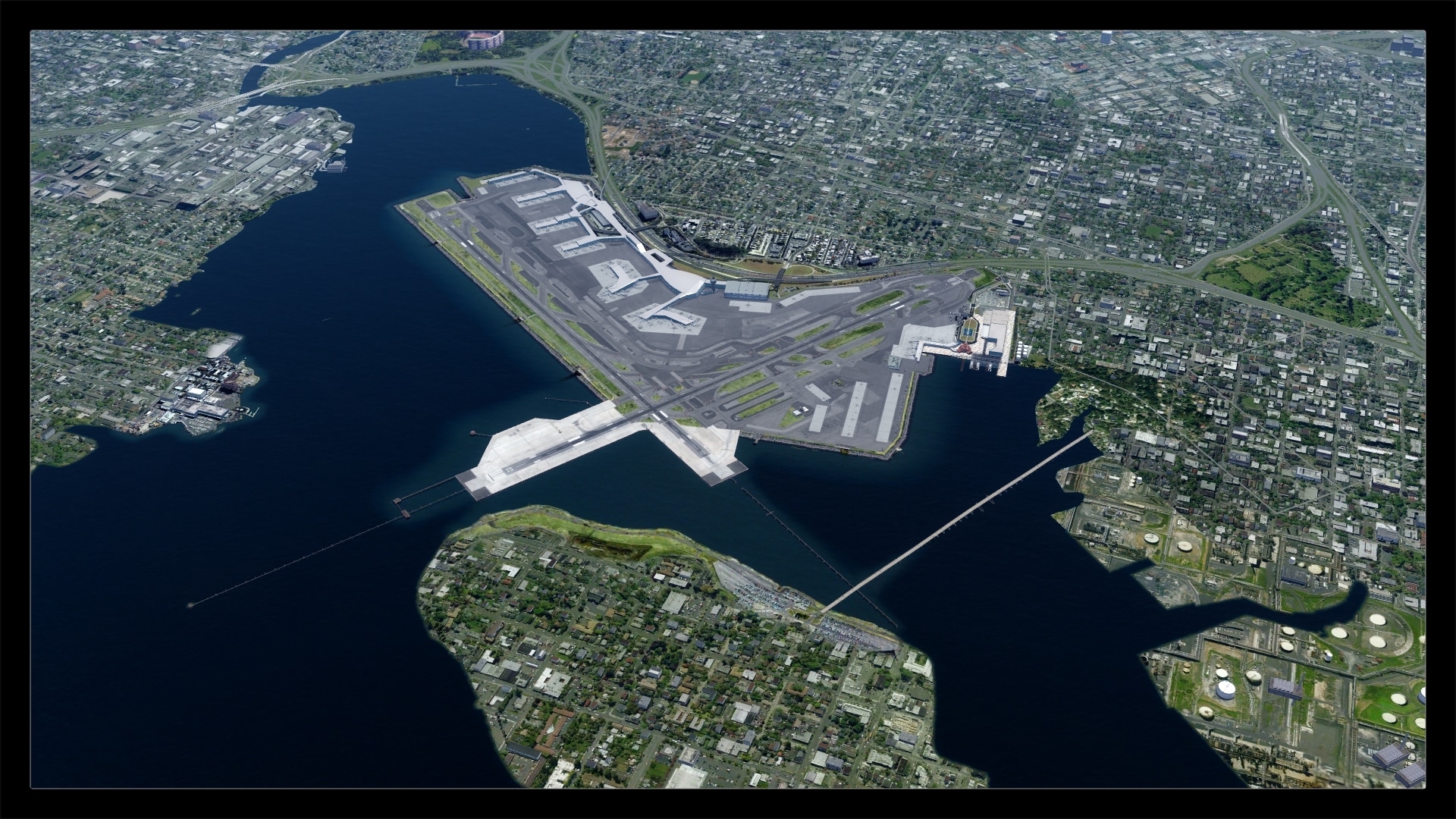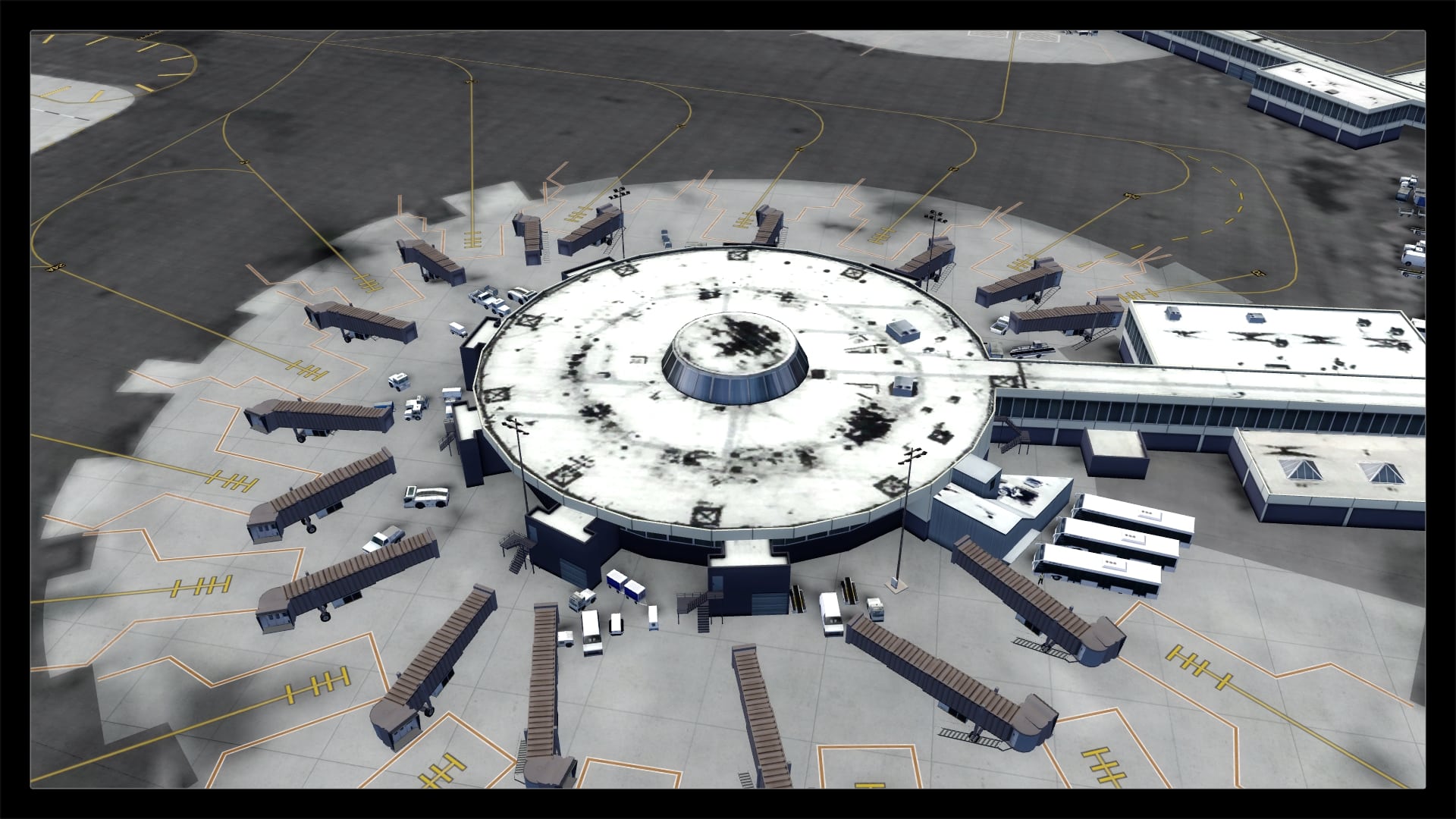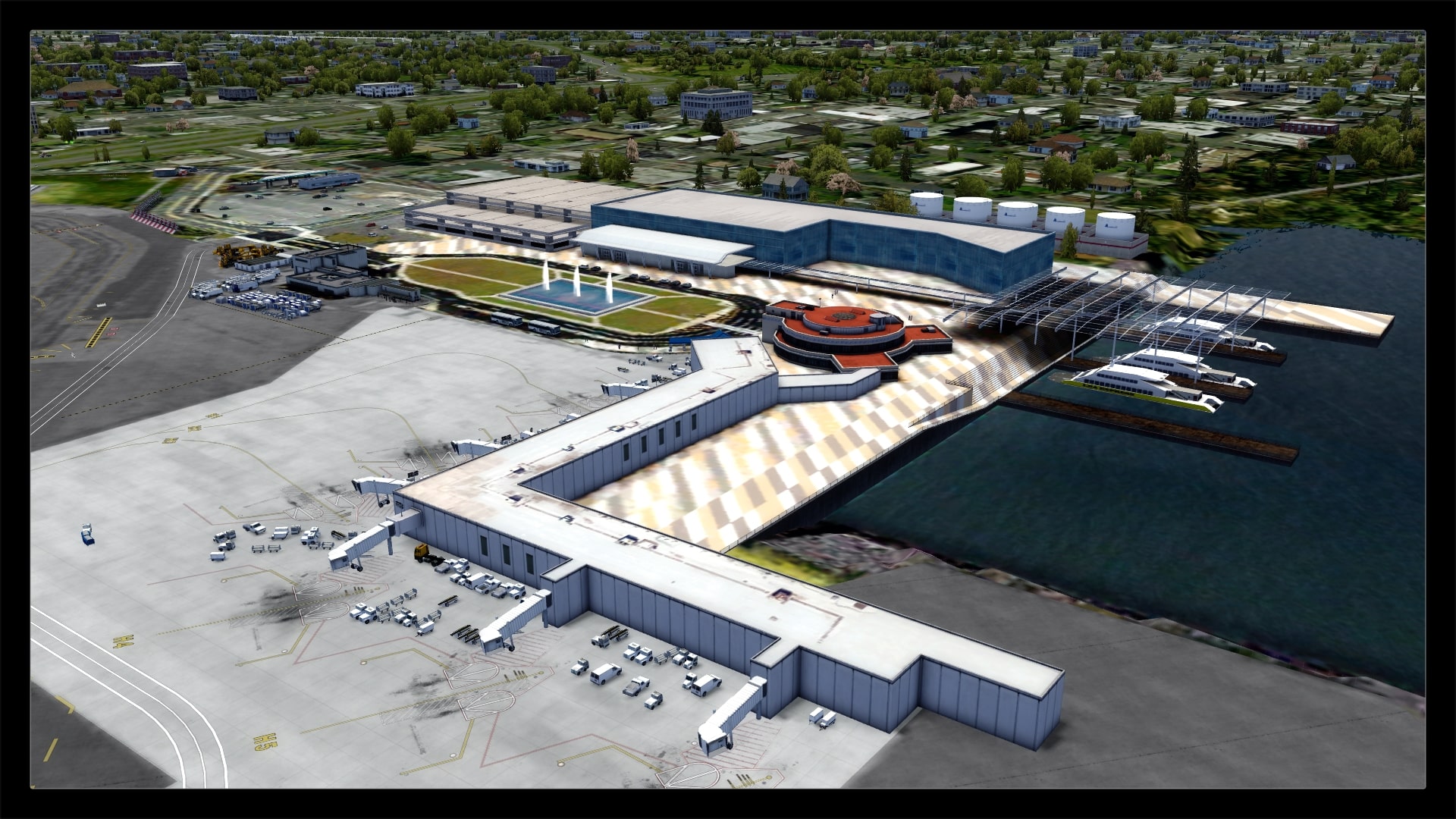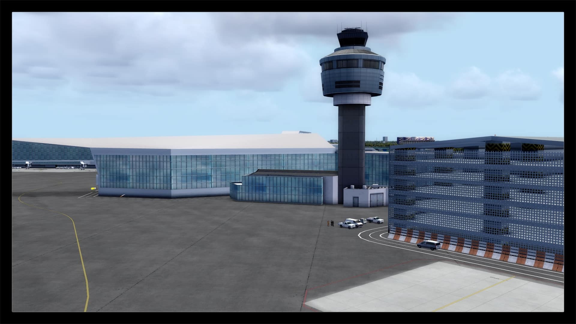 Beim ersten Anflug auf LaGuardia ist man etwas erschrocken, sofern man vorher das Manual nicht gelesen hat. Stimmt doch die Darstellung im Simulator so gar nicht mit der aktuellen Realität überein. Drzewiecki Design hat sich entschlossen, KLGA so darzustellen, wie es nach den umfangreichen Baumaßnahmen aussehen würde. Als Vorlage diente ihnen dabei ein Entwurf der Port Authority. Daher ist es schlicht unmöglich eine Aussage darüber zutreffen, ob die Umsetzung gut gelungen ist. Der Flughafen sieht jedenfalls sehr klinisch sauber aus, wobei die Bodentexturen ein besseres Bild abgeben als bei JFK. Die sehr moderne neue Konstruktion passt sich auch gefühlt sehr schwer in das Gesamtbild ein. Gerade im direkten Vergleich, wie z.B. beim Parkhaus, hat man teilweise das Gefühl, dass sich da zwei Szenerien ins Gehege kommen. Auch muss sich ein Fehler im hinteren Bereich des Airports eingeschlichen haben, denn hier stehen Wohnhäuser am Terminal. Insgesamt sind wieder ausreichend Bodengeräte vorhanden, die Gebäude sind zum Teil mit einigen Details versehen. Auch entdeckt man kleine dargestellte Szenerien. Alles in allem wirkt die Umsetzung aber lieblos und man wird den Eindruck nicht los, dass sie an manchen Stellen schlicht nicht wussten wie die finale Ausgestaltung aussehen wird.