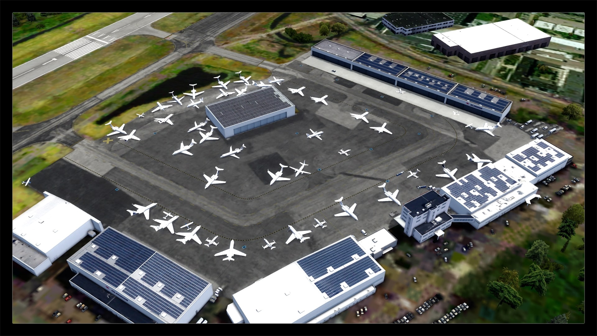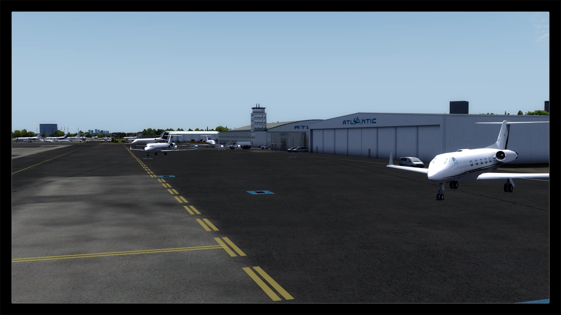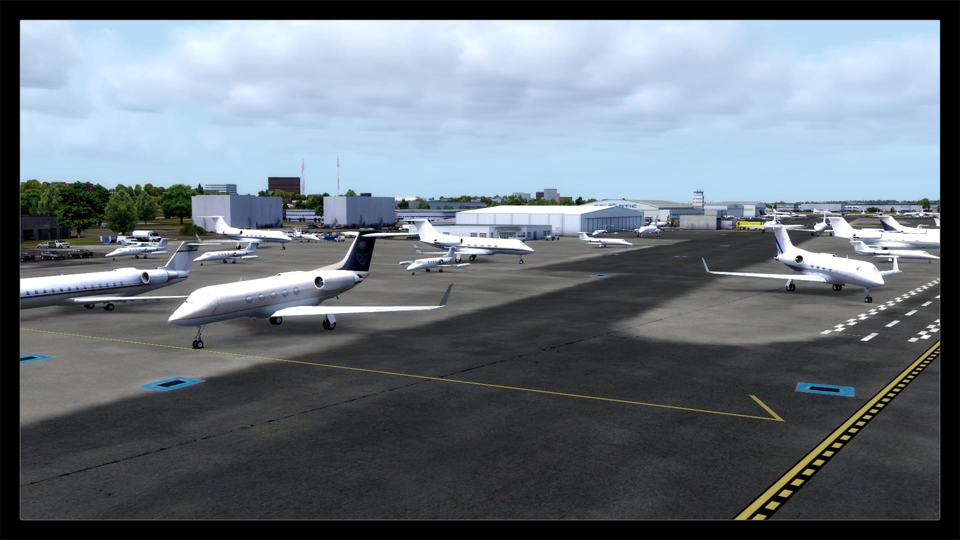 Teterboro wurde gut getroffen und strahlt das Flair und den Charme eines Business Airports aus. Das Zusammenspiel der Texturen passt ganz gut, auch wenn die Grastexturen mancherorts recht grob aufgelöst wirken. Die ordentlich umgesetzten Gebäude komplettieren das Bild. Gerade die farbliche Gestaltung ist gut gelungen, auch die Detaillierung ist ausreichend. Die mitgelieferten statischen Flugzeuge geben ebenso ein gutes Bild ab. Manche der Flieger haben sogar die Einstiegstür geöffnet. Fehler konnte ich keine erkennen – alles in allem ist der Platz ganz gut umgesetzt.