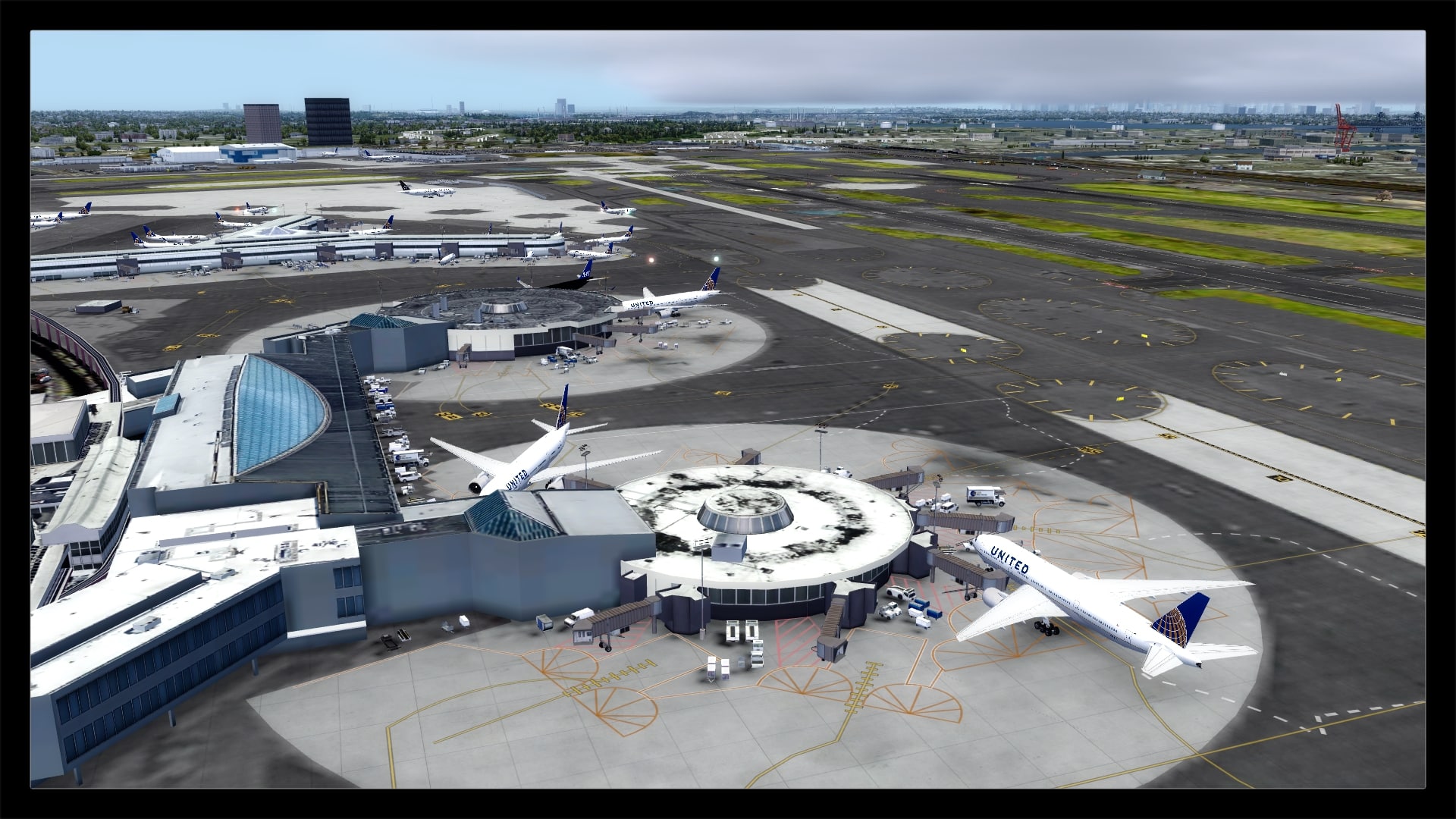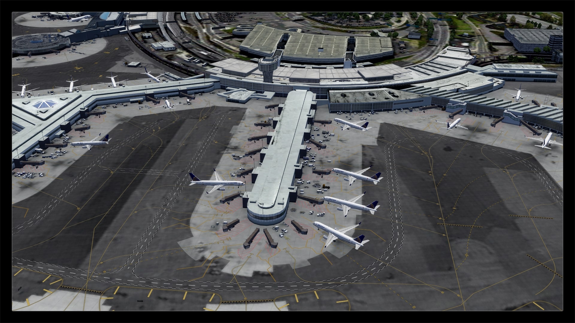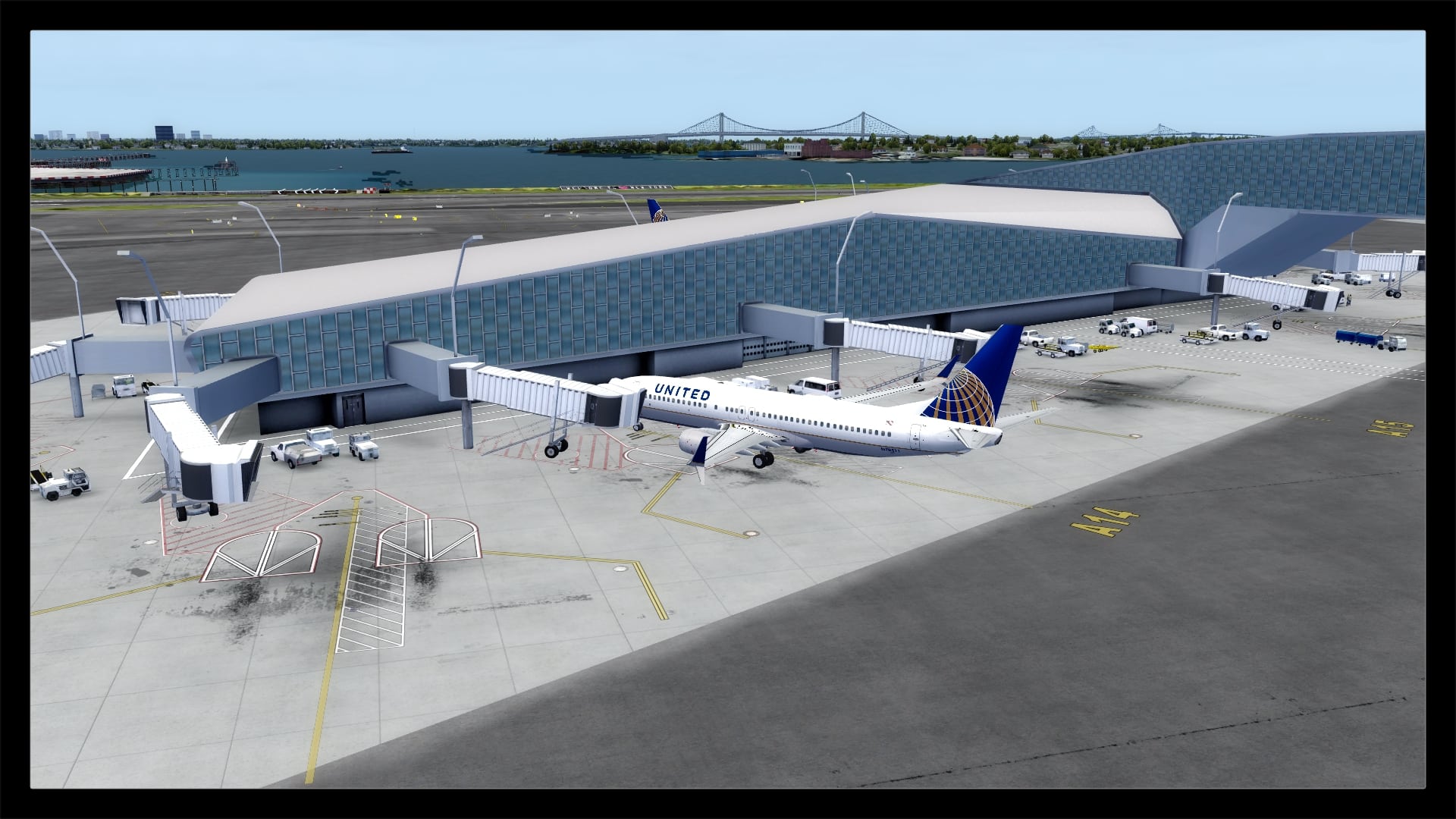 Neben JFK ist Newark sicherlich mit der wichtigste Airport in der New York Region für uns Stubenpiloten. Noch dazu wurde er wirklich gut umgesetzt. Die Bodentexturen sehen gut aus, ebenso wie die Einpassung in die Stadt bzw. Orbx Umgebung. Die Performance ist erfreulicherweise sehr gut, auch mit Ai Traffic. Auch die platzierten Objekte kommen in ihrer Anzahl nicht zu kurz. Einen unansehnlichen Aspekt gibt es dann aber doch, auch wenn der halb so wild ist: Aus großer Entfernung schweben die Fluggastbrücken vor dem Terminal und sind mit diesem nicht verbunden. Am Anfang dachte ich, dass der Fehler bei mir liegt. Die Neuinstallation, sowohl der Airports als auch Sode, brachte keine Besserung. Beim Betrachten der Produktbilder merkte ich dann jedoch, dass es bei den hauseigenen Drzewiecki Bildern ebenfalls zu sehen ist. Diese Unzulänglichkeit verschwindet jedoch, umso näher man dem Terminal kommt. Auch ist es nicht bei jedem Airport gleich stark ausgeprägt wie hier.