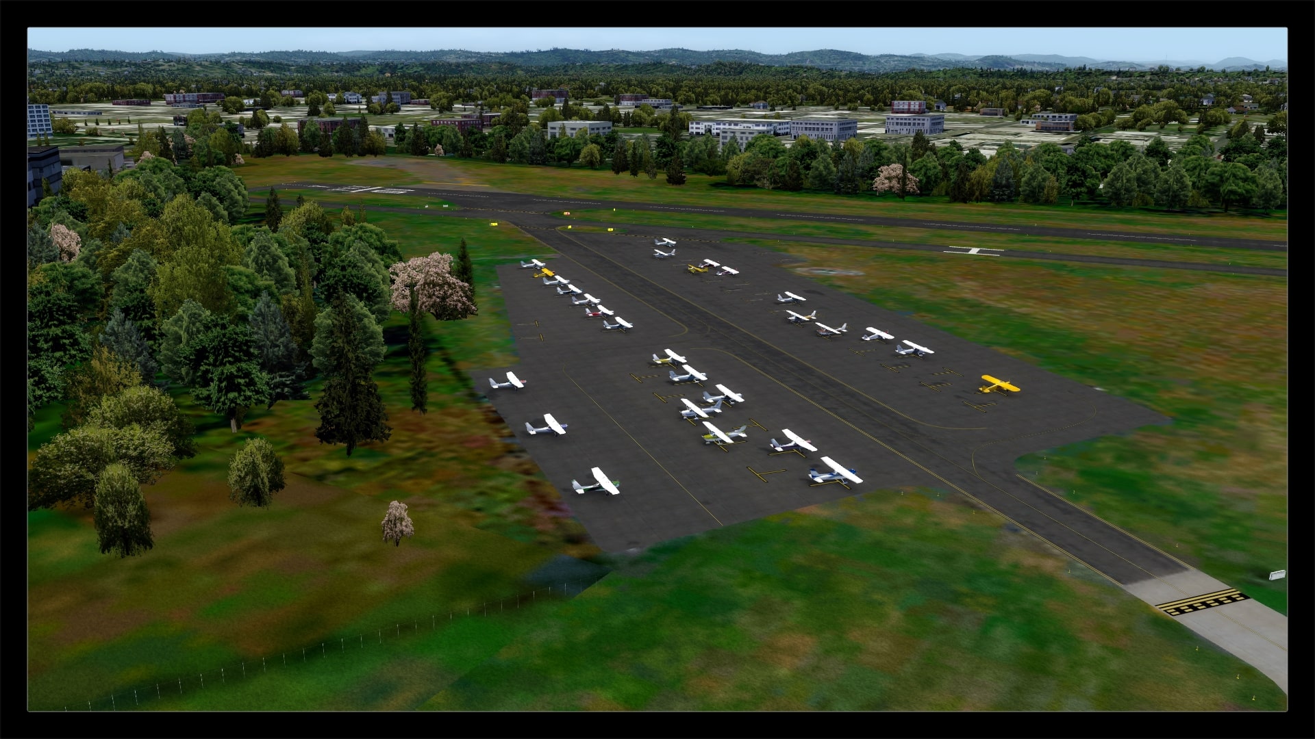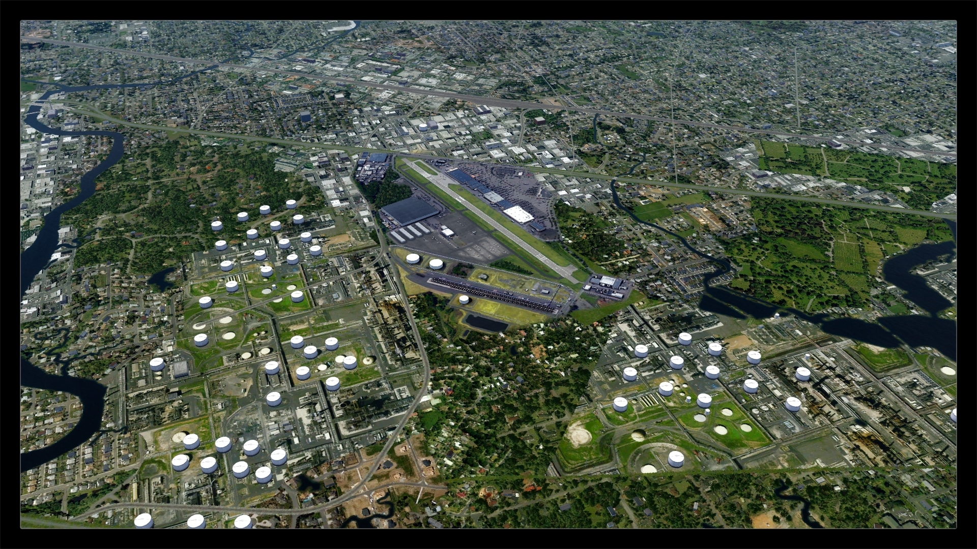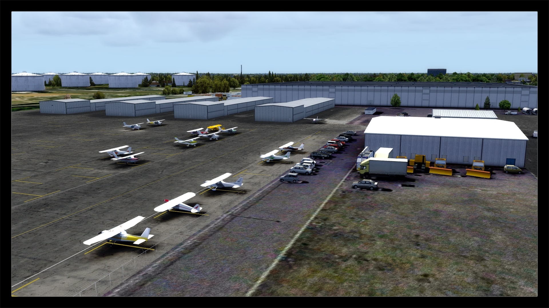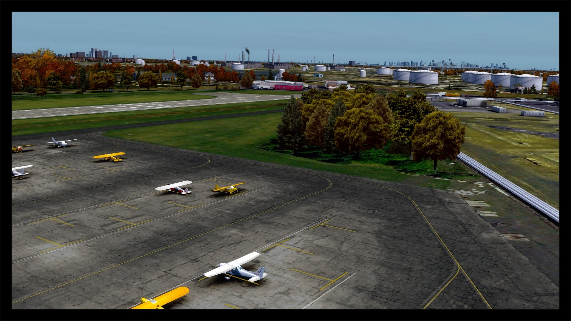 Dieser kleine GA Flugplatz, 20 km entfernt von Manhattan, lässt nur minimale Kritik zu. Die statischen Modelle sehen gut aus, die Texturen passen auch und die Gebäude fügen sich nahtlos in das Bild ein. Beim Anflug auf die Bahn 27 überfliegt man linksseitig noch einen Güterbahnhof sowie einige Chemietanks. Leider passt sich der Untergrund dieser Tanks nicht sonderlich gut ein. Ob man dies Drzewiecki oder Orbx anlasten muss, lasse ich mal dahingestellt sein. Dennoch ist Linden ein schöner kleiner Platz.