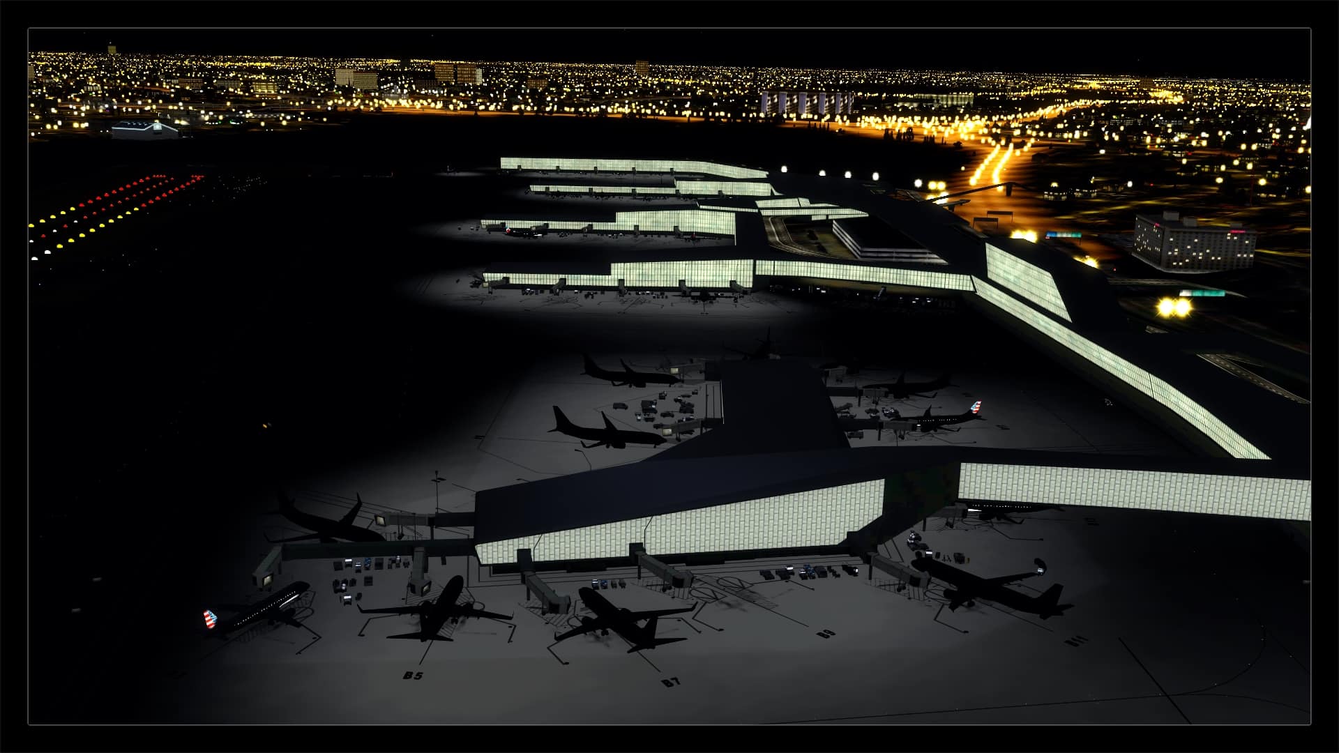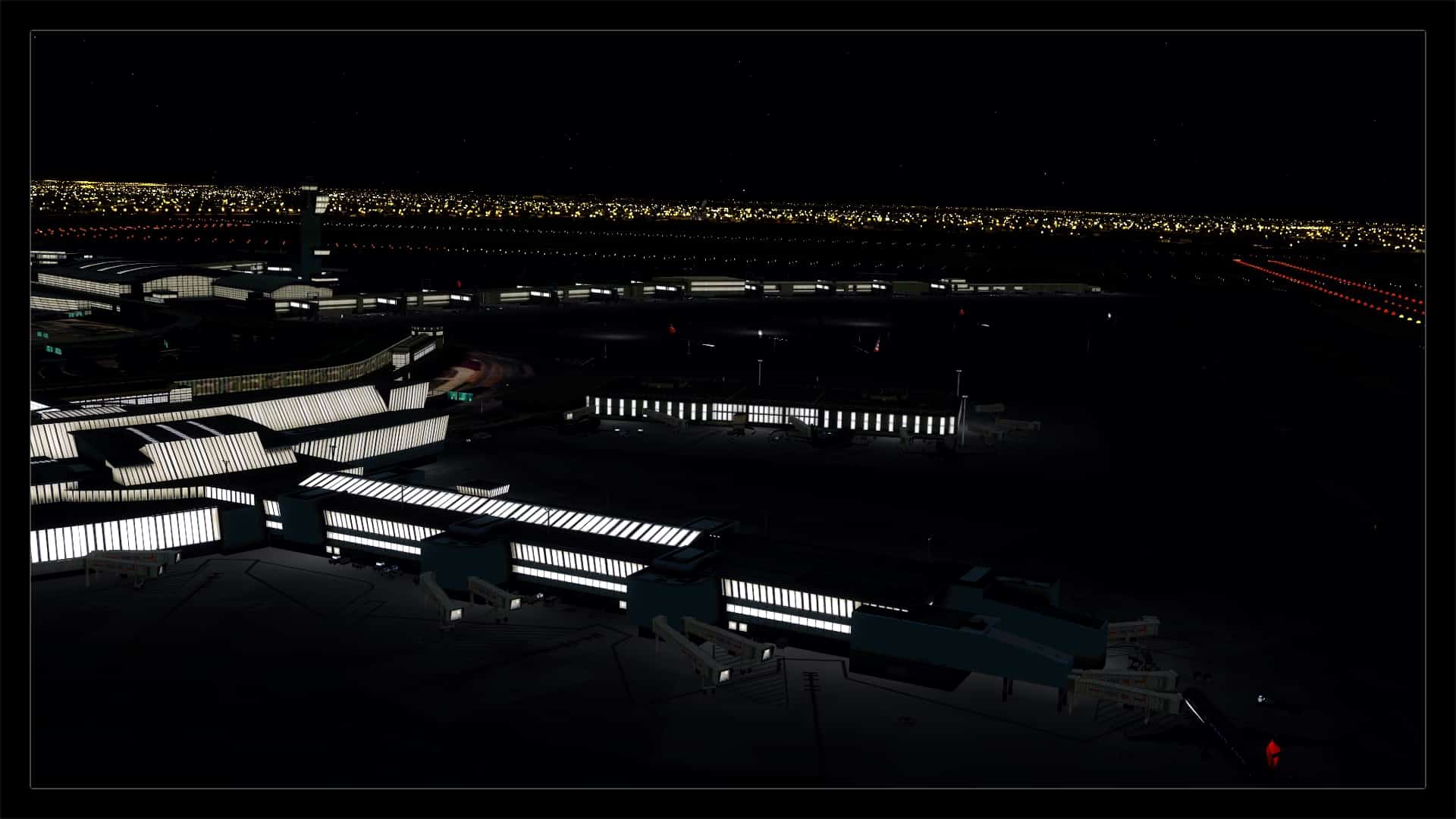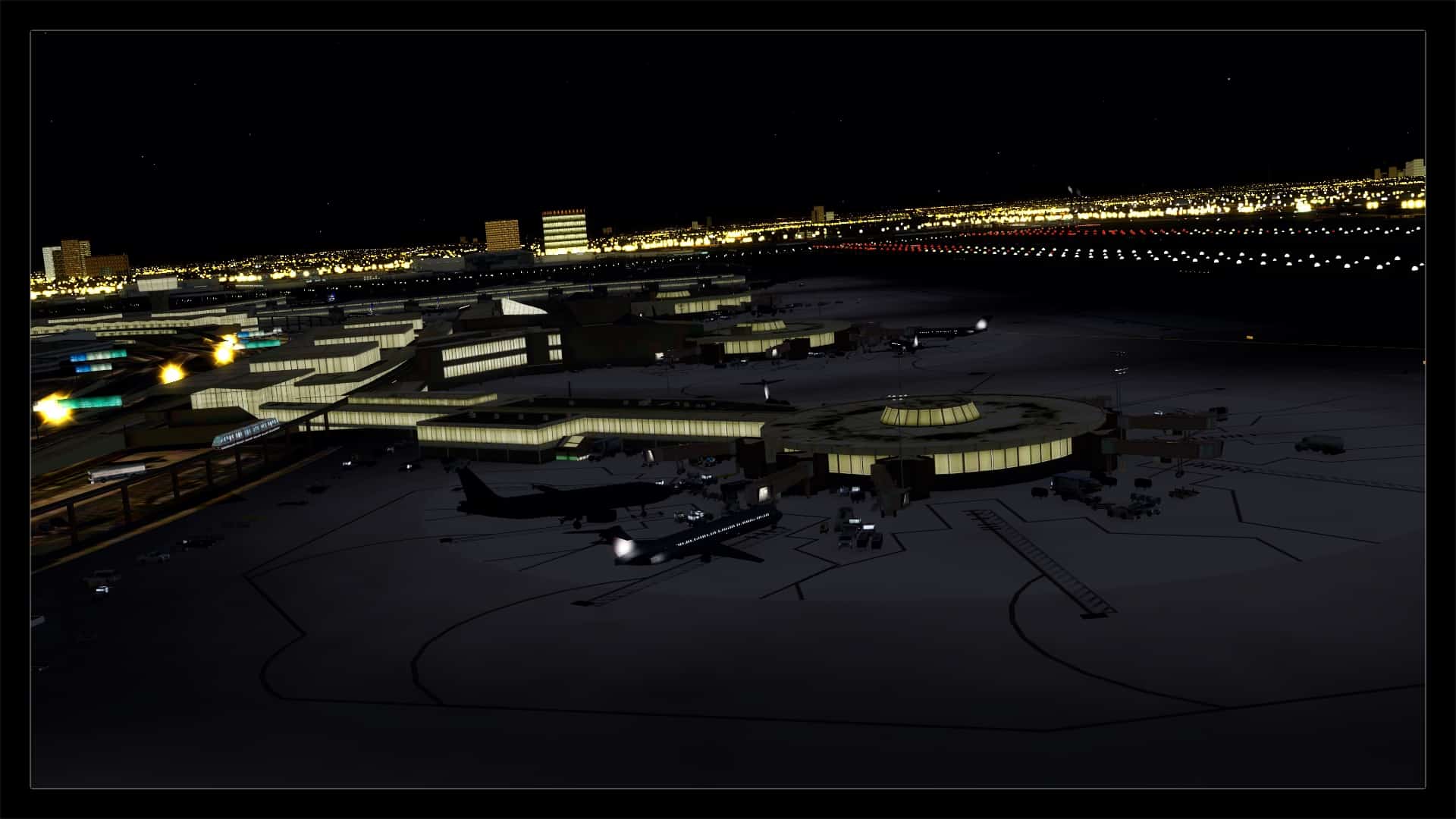 Die Nachtumsetzung der einzelnen Airports ist eigentlich ganz gut gelungen, eine Offenbarung ist sie aber nicht. Hier und da sind Gebäude überstrahlt oder einfach unansehnlich gestaltet. Teilweise sind auch Bereiche beleuchtet, die über keinerlei Lichtquellen verfügen. Dynamische Beleuchtung besitzen die Airports nicht, allerdings wird dies von Drzewiecki Design auch nicht beworben.