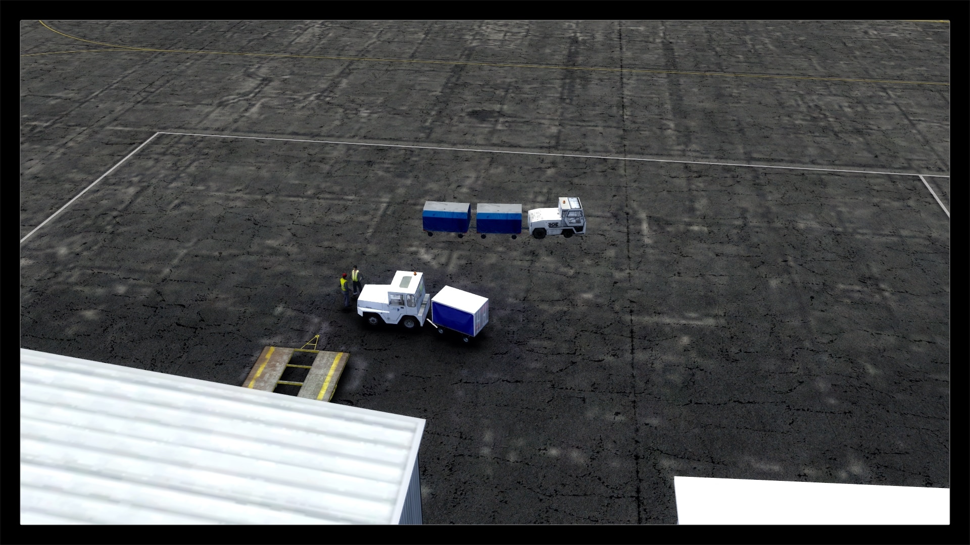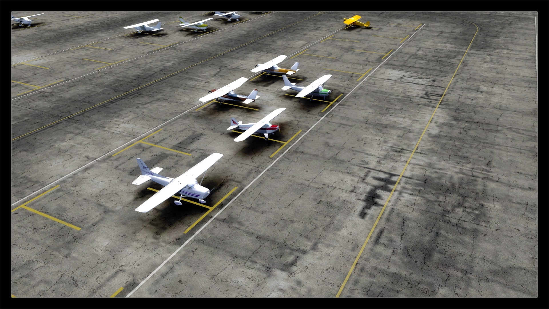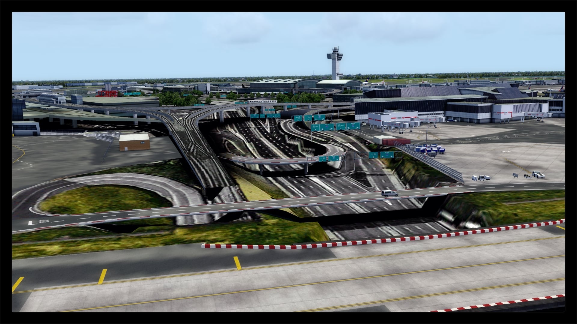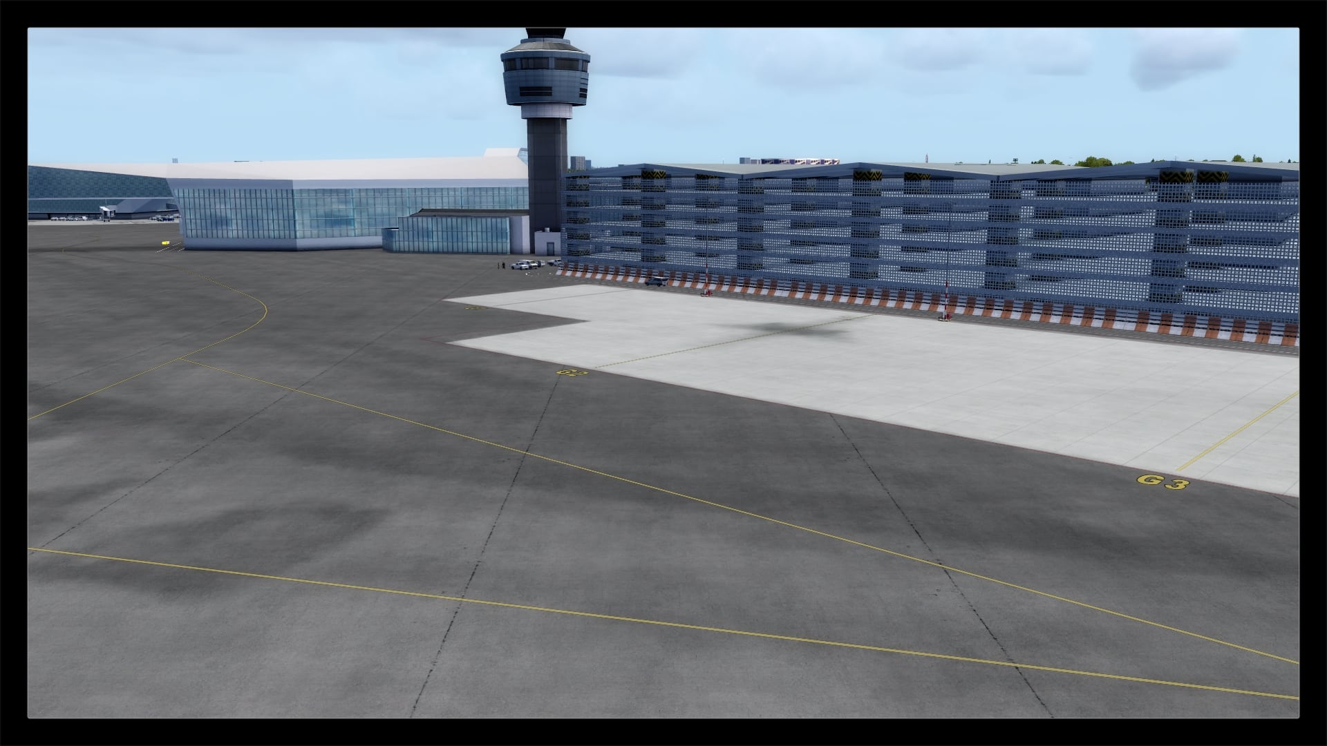 Die Umsetzung ist eindeutig auf Performance ausgelegt und wohl auch auf niedrige Speichernutzung. Die Texturen sind teilweise schon sehr unscharf, sowohl bei den Gebäuden, als auch bei den Boden- und Taxiwaytexturen. Diese sind auch sehr fleckig gestaltet. Zum einen sollen die Flecken Verschmutzungen darstellen und zum anderen die Verfärbung von Beton bzw. der Rollwegoberflächen durch Verwitterung. Dies ist aber eher nicht so gut gelungen. Die scharfen Rollwegmarkierungen wirken bei den unscharfen Bodentexturen ebenfalls wie aufgemalt und passen sich nicht in das Gesamtbild ein. Die Gebäude sind ganz passabel gestaltet, weisen oberflächliche Detaillierungen auf, wie Treppen, Laternen oder Trägerkonstruktionen. Sehr üppig dargestellt und verteilt sind die zahlreichen Bodenfahrzeuge wie Schlepper, Gepäckwagen oder Rolltreppen. Die Fokussierung auf eine gute Ablaufgeschwindigkeit ist sehr zu begrüßen bei dem Airport, warum man dann aber bei den Texturen und den Gebäuden spart, dafür aber hunderte statische Taxis positioniert erschließt sich mir nicht. Diese kann man im Installer zwar abschalten, allerdings nicht als einzelne Position, sondern nur im Paket mit all den anderen statischen Bodenobjekten. Alles in allem ist die Umsetzung zwar zu gebrauchen, schlussendlich aber doch enttäuschend.