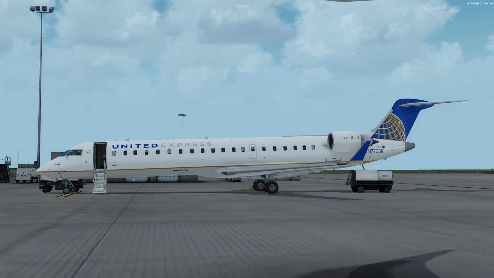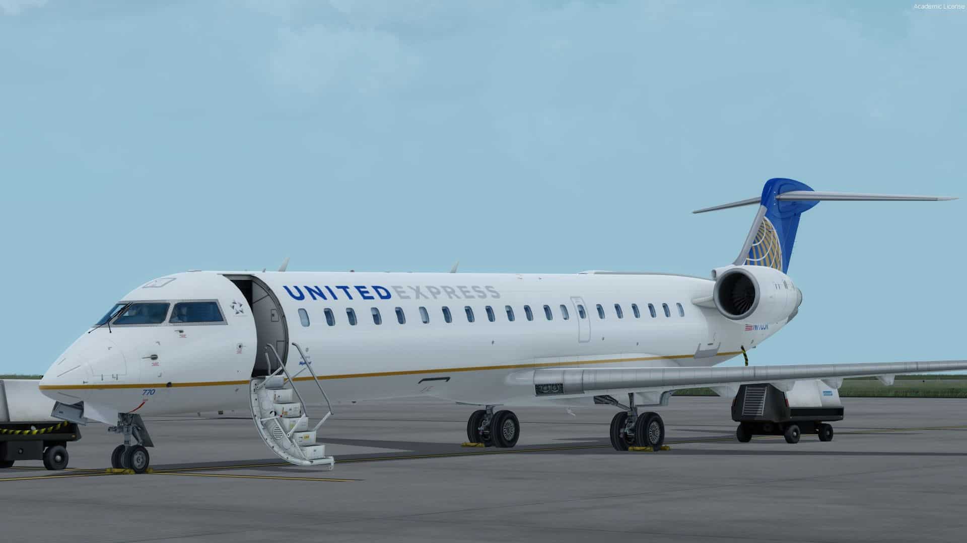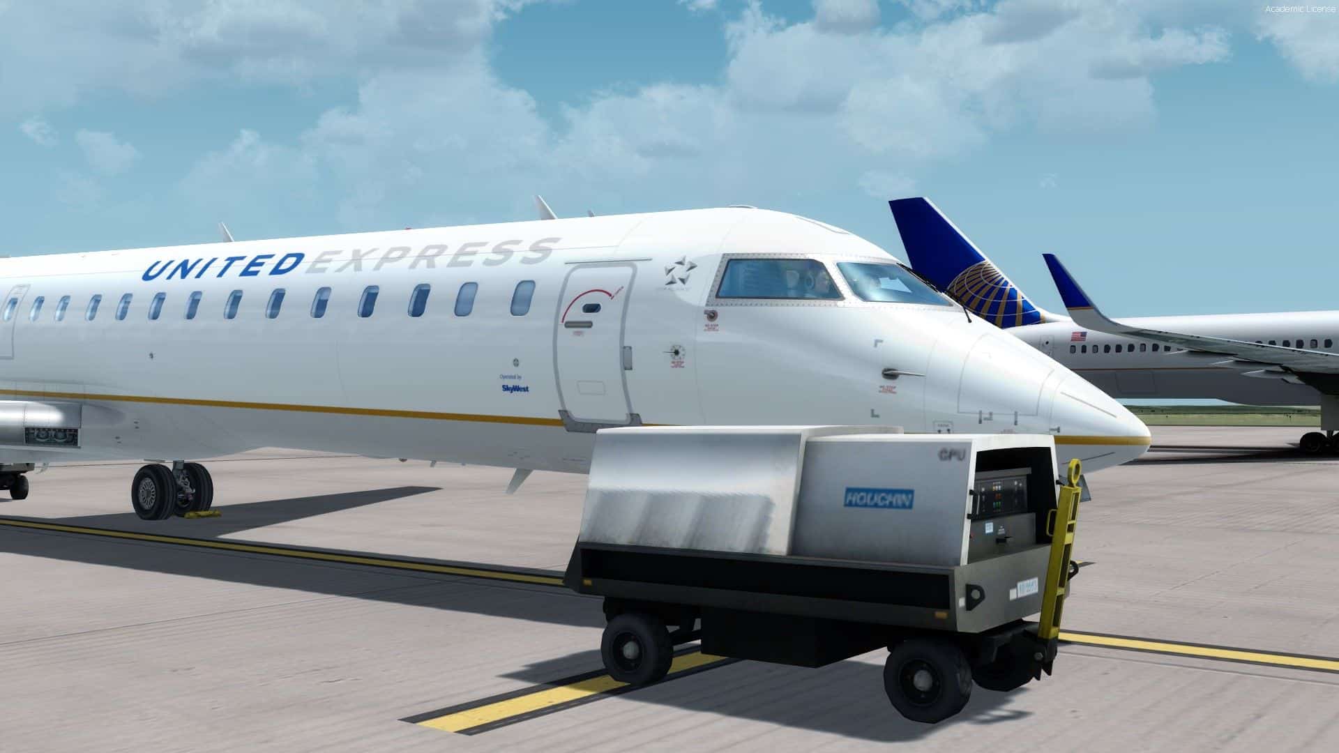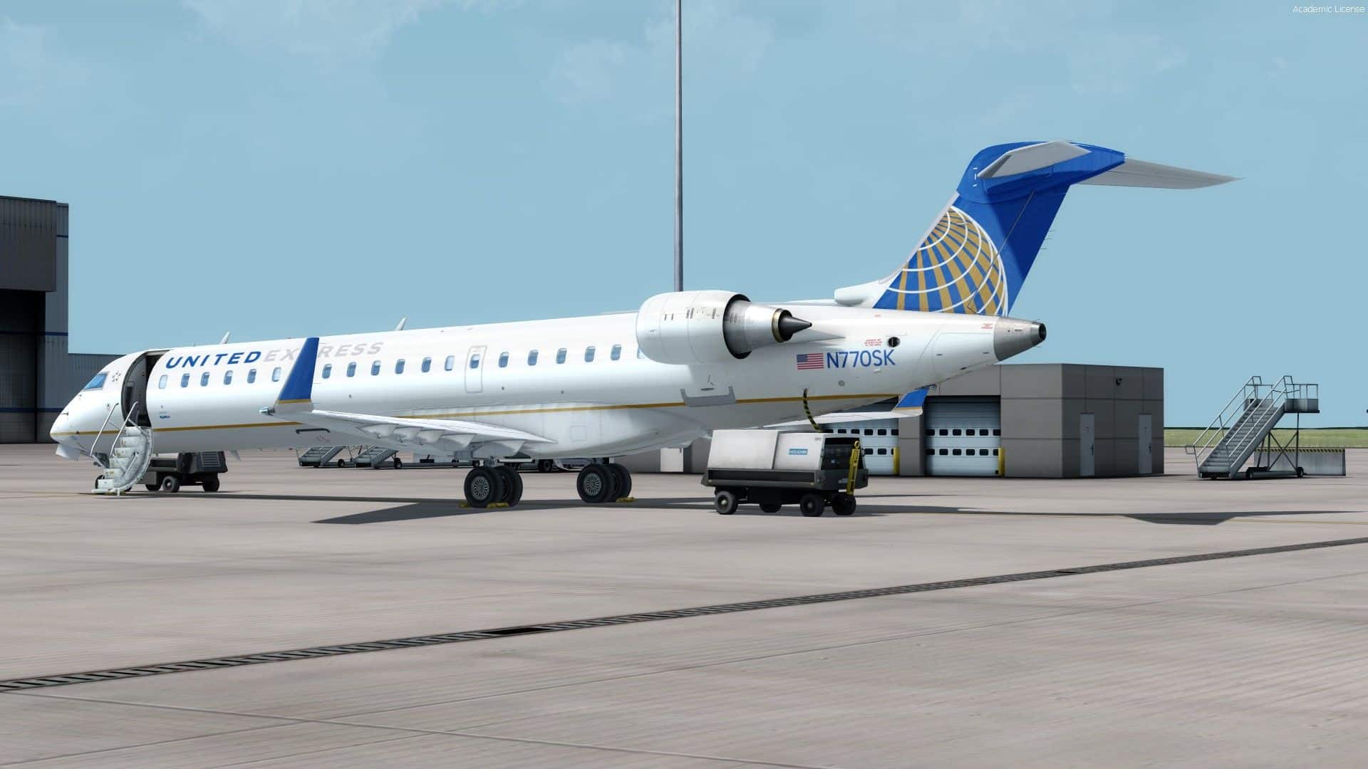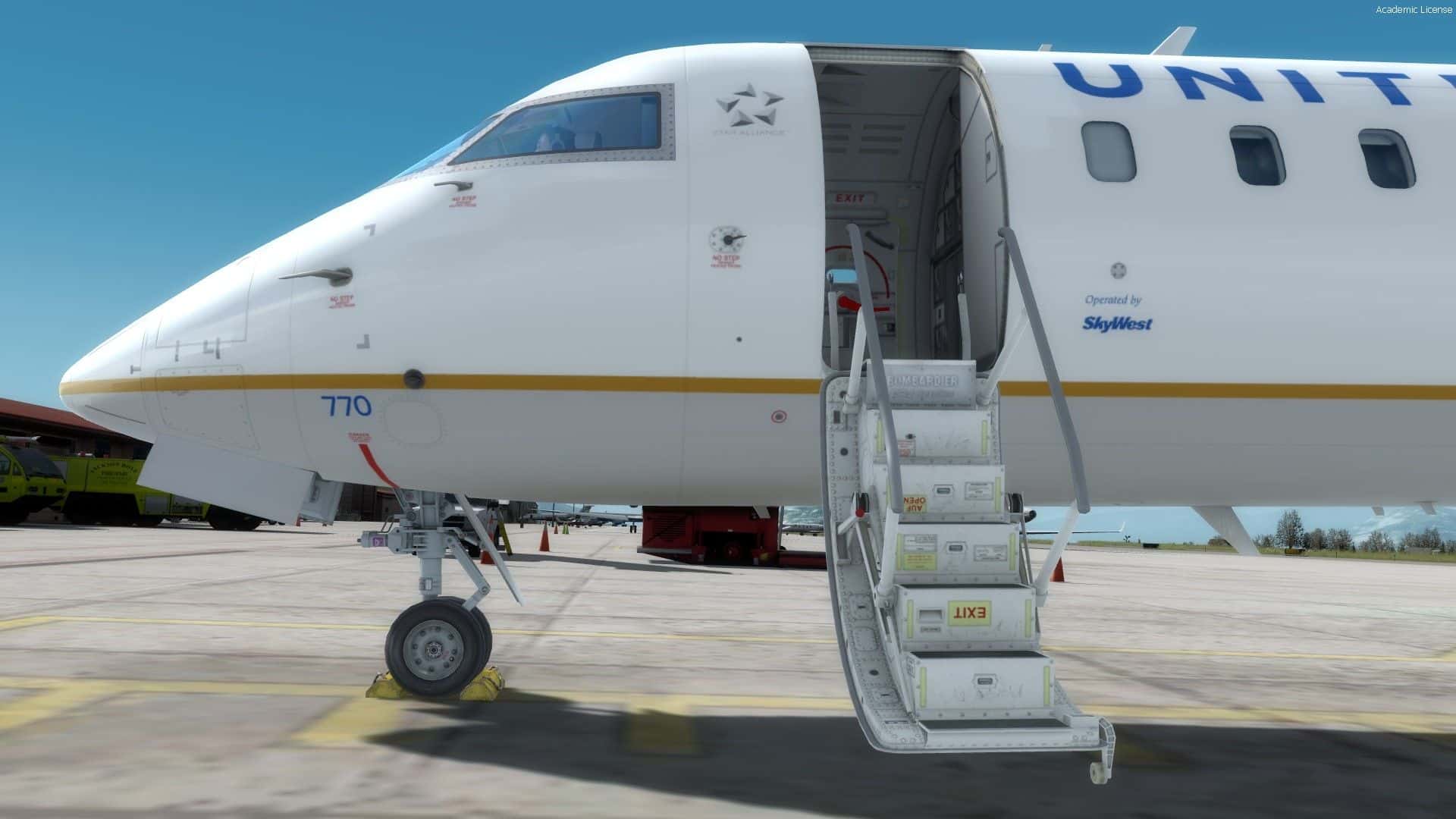 Für mein kleines Typerating steht ein Bombardier CRJ-700 mit der Registrierung N77oSK der Skywest in Denver im Bereich der United Airlines Technik. Die Maschine ist kalt und dunkel und wird mit Bodenstrom und Bleed Air versorgt. Bevor das Flugzeug aufweckt und vorbereitet wird, bietet sich ein erster Blick auf das Modell an.