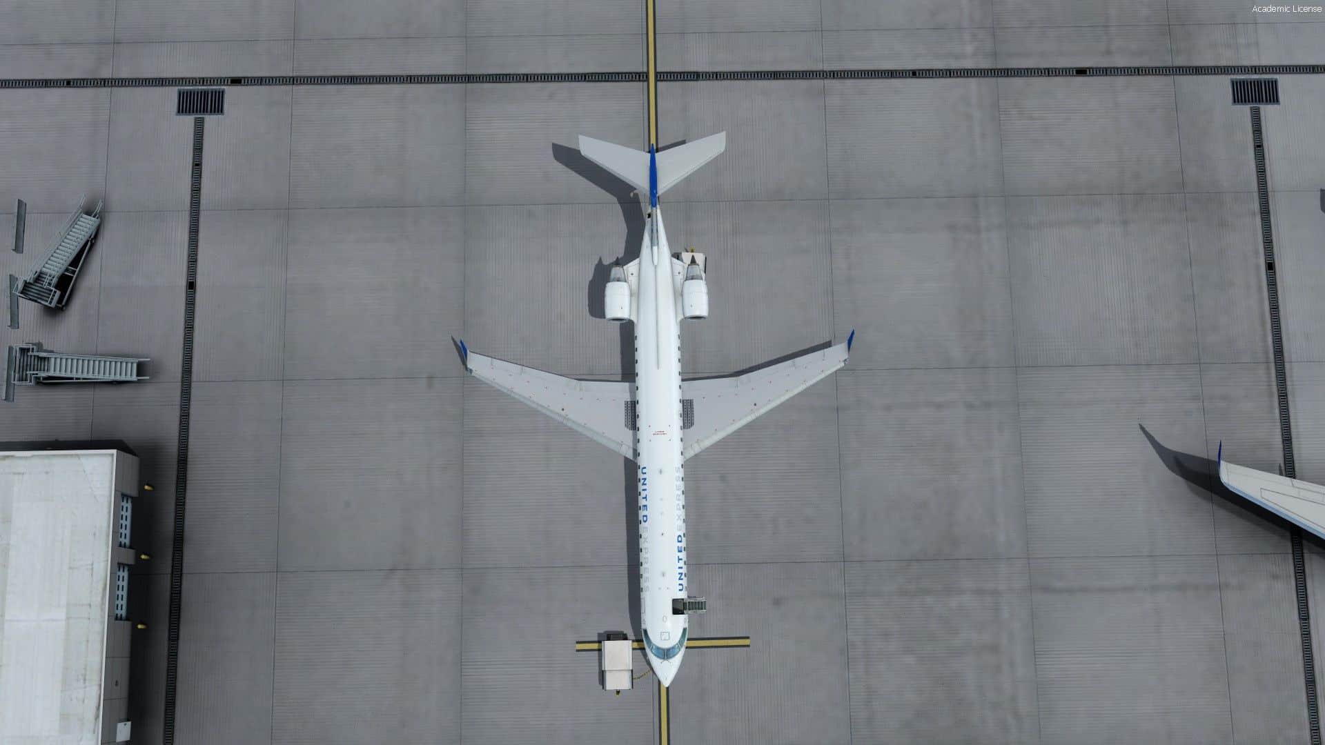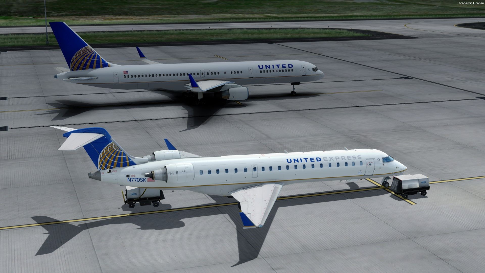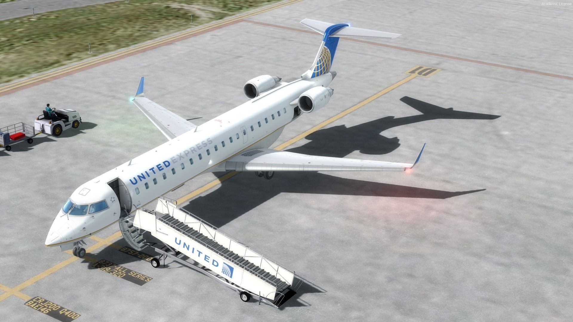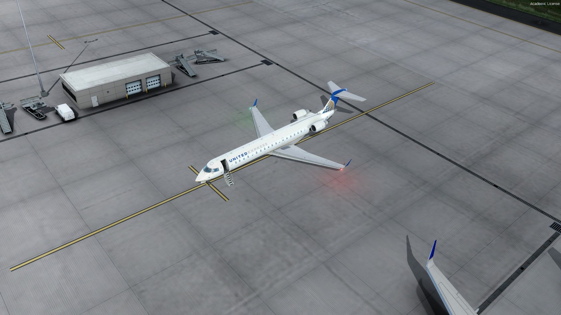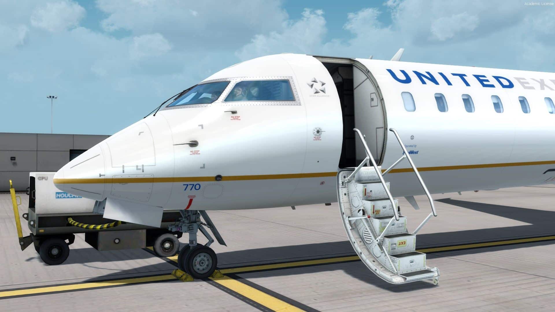 Für mein kleines Typerating steht ein Bombardier CRJ-700 mit der Registrierung N77oSK der Skywest in Denver im Bereich der United Airlines Technik. Die Maschine ist kalt und dunkel und wird mit Bodenstrom und Bleed Air versorgt. Bevor das Flugzeug aufweckt und vorbereitet wird, bietet sich ein erster Blick auf das Modell an.