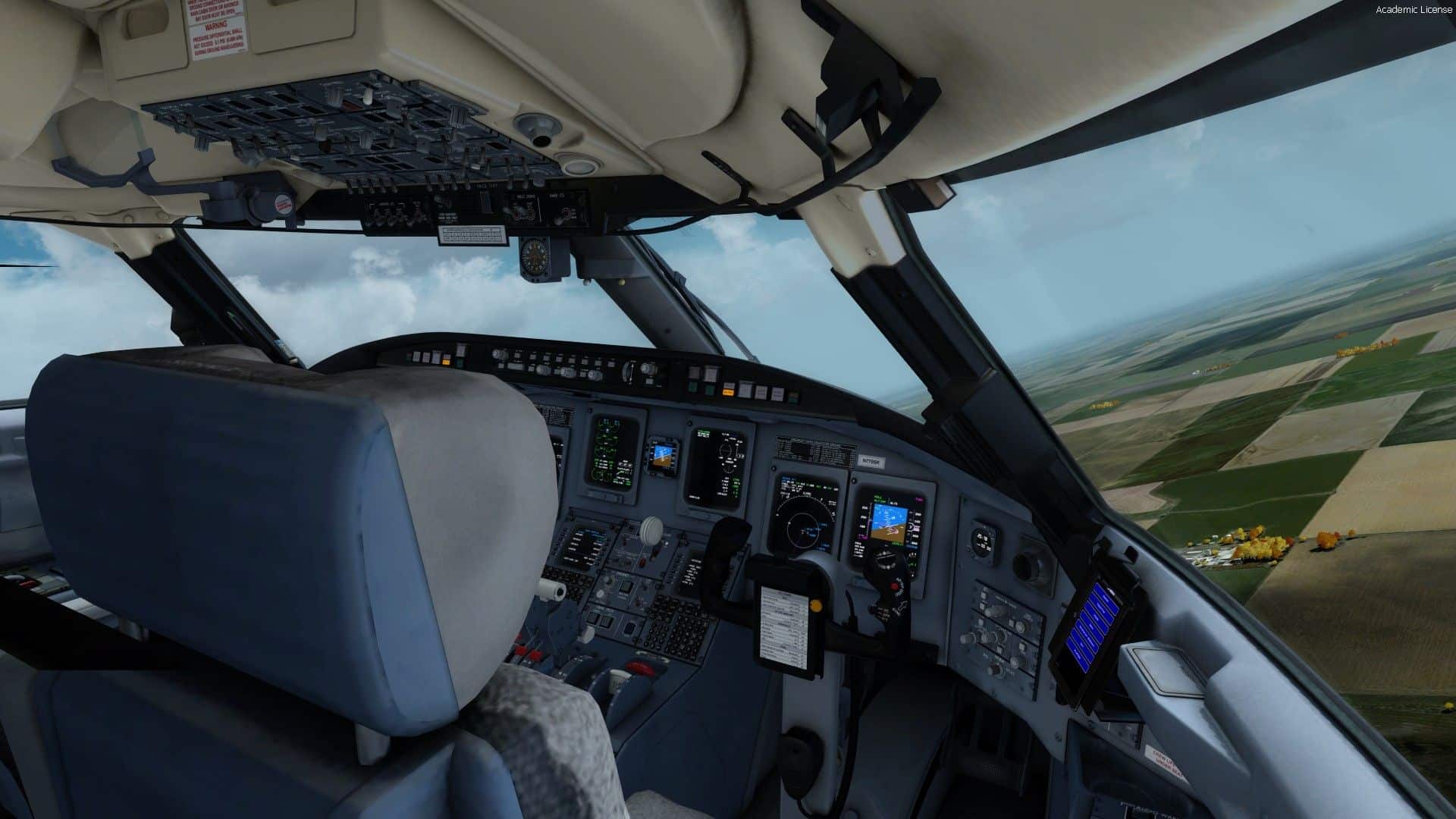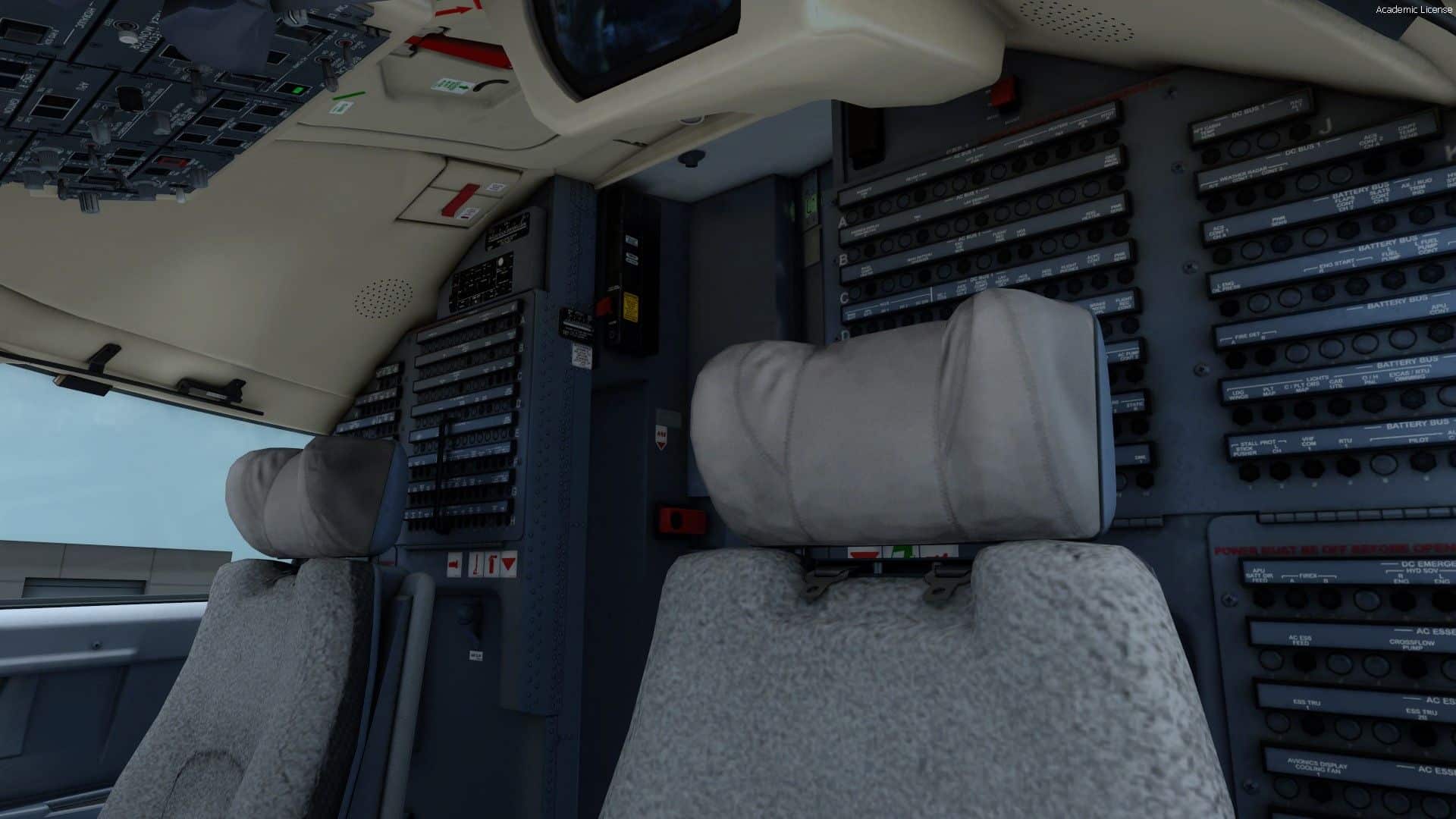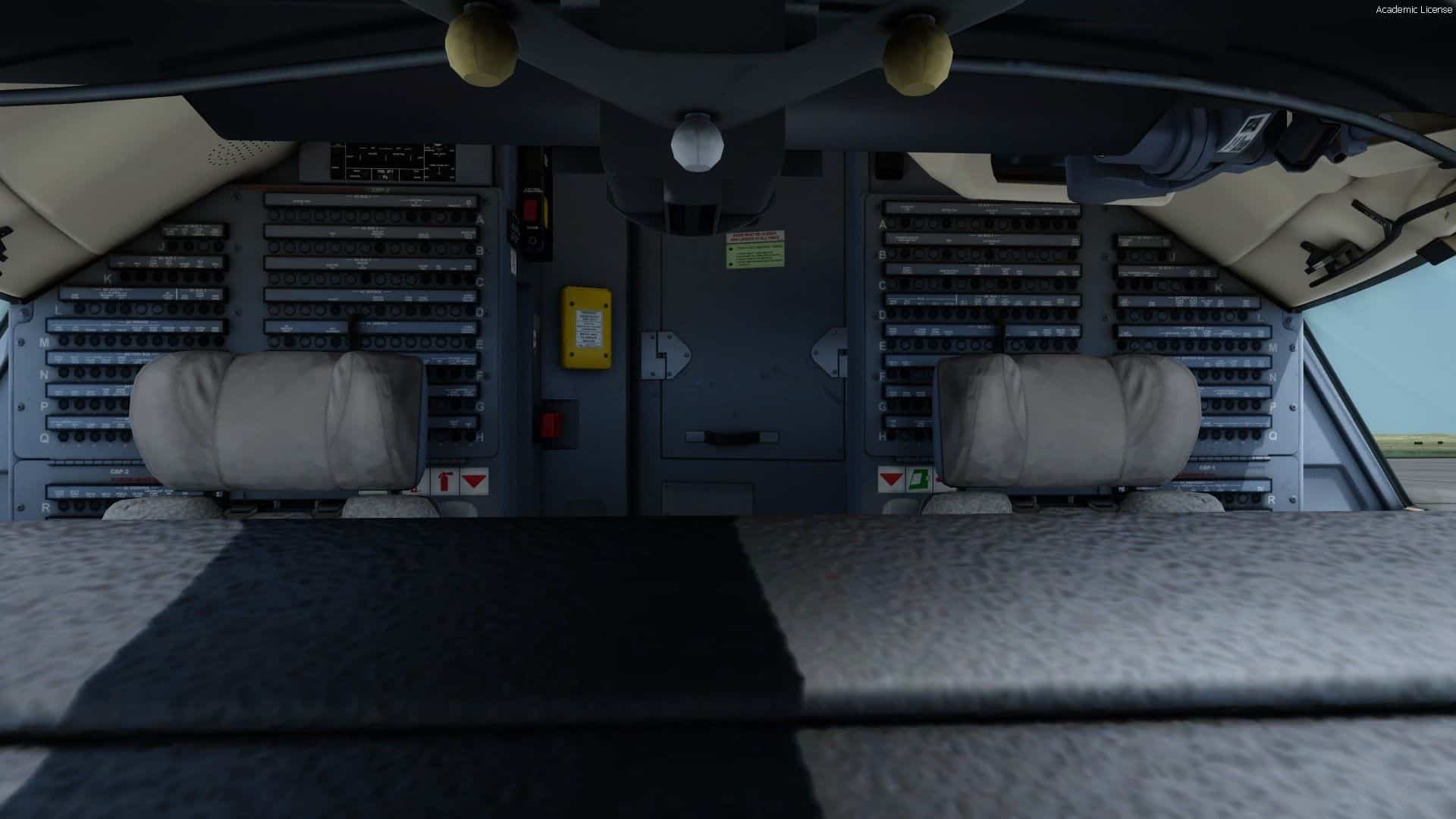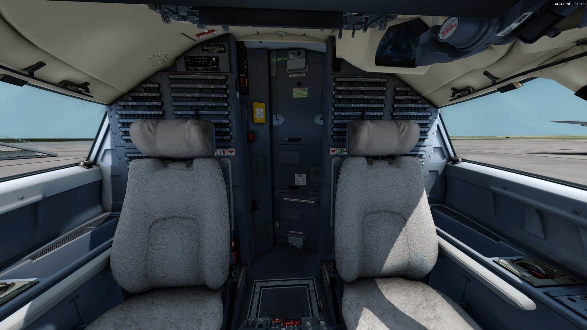 Das VC gefällt mir persönlich sehr gut. Die Texturen sind wunderbar detailreich und überaus scharf. An einigen Stellen sind Abnutzungsspuren zu finden und selbst Sicherungen und der Türbereich sind hoch aufgelöst abgebildet. Die Farben und Kontraste sind sehr stimmig und schaffen mit dem schicken Schattenwurf des Prepar3D eine super Atmosphäre. Hinzu kommen aufwendige Modelle von Sitzen, Knöpfen und Steuerhörnern, sowie die Gestaltung unterschiedlicher Materialien. Von einem CRJ-Piloten habe ich mir jedoch sagen lassen, dass am Sitz eine Trittstufe fehlt, die nötig ist um den Notausgang zu erreichen. Eine Kleinigkeit, im Rahmen eines Review jedoch erwähnenswert.