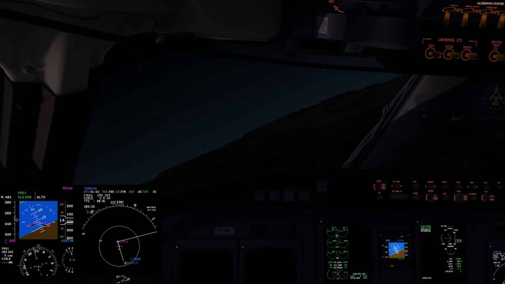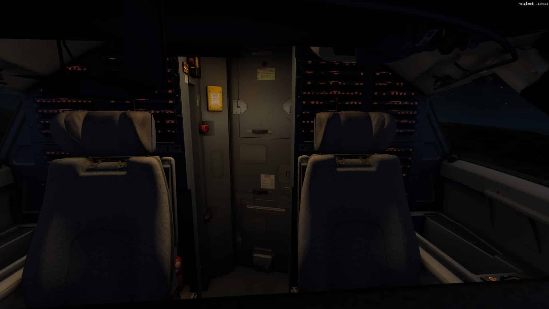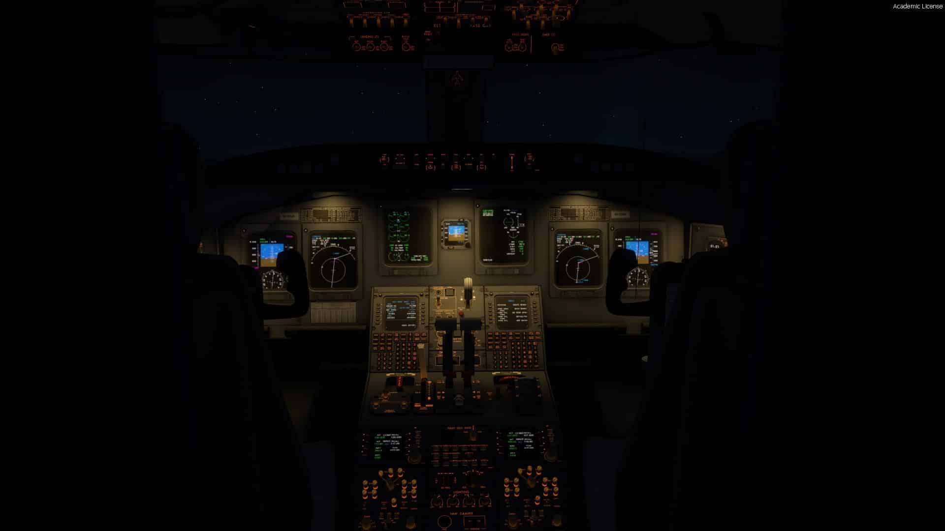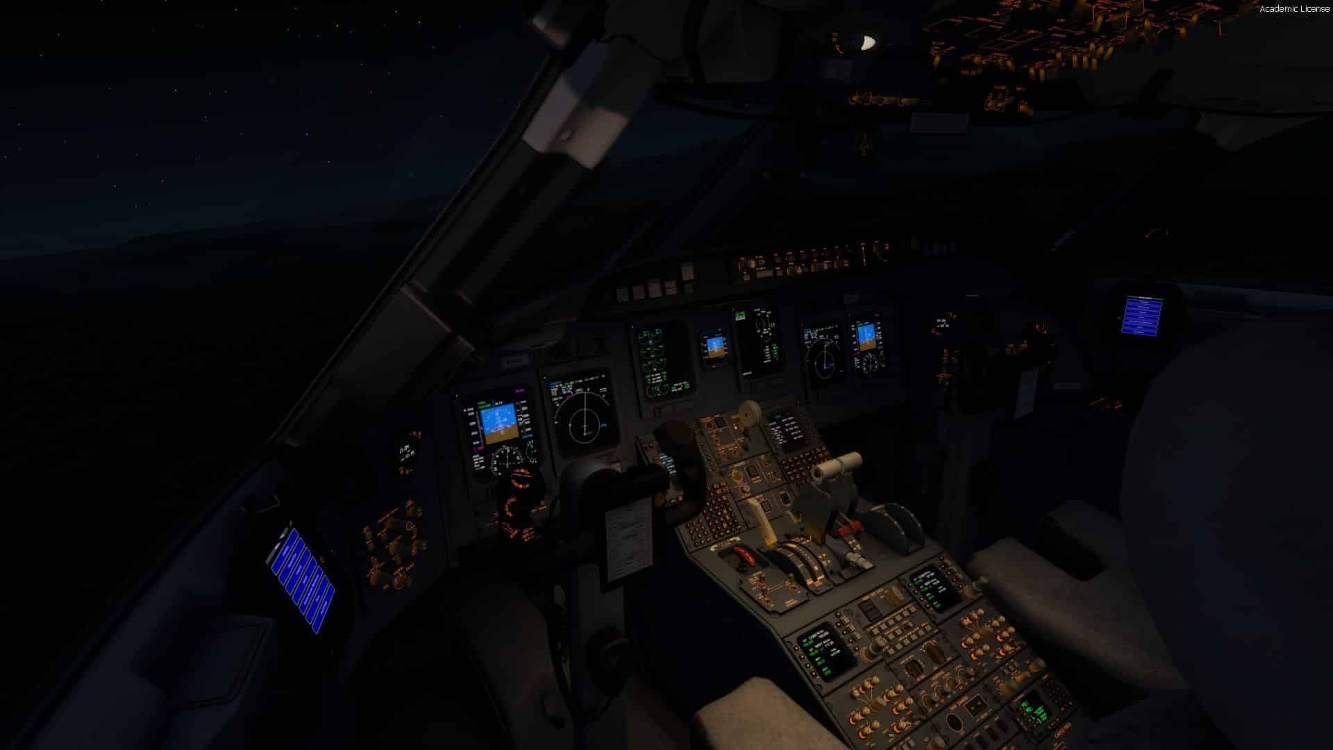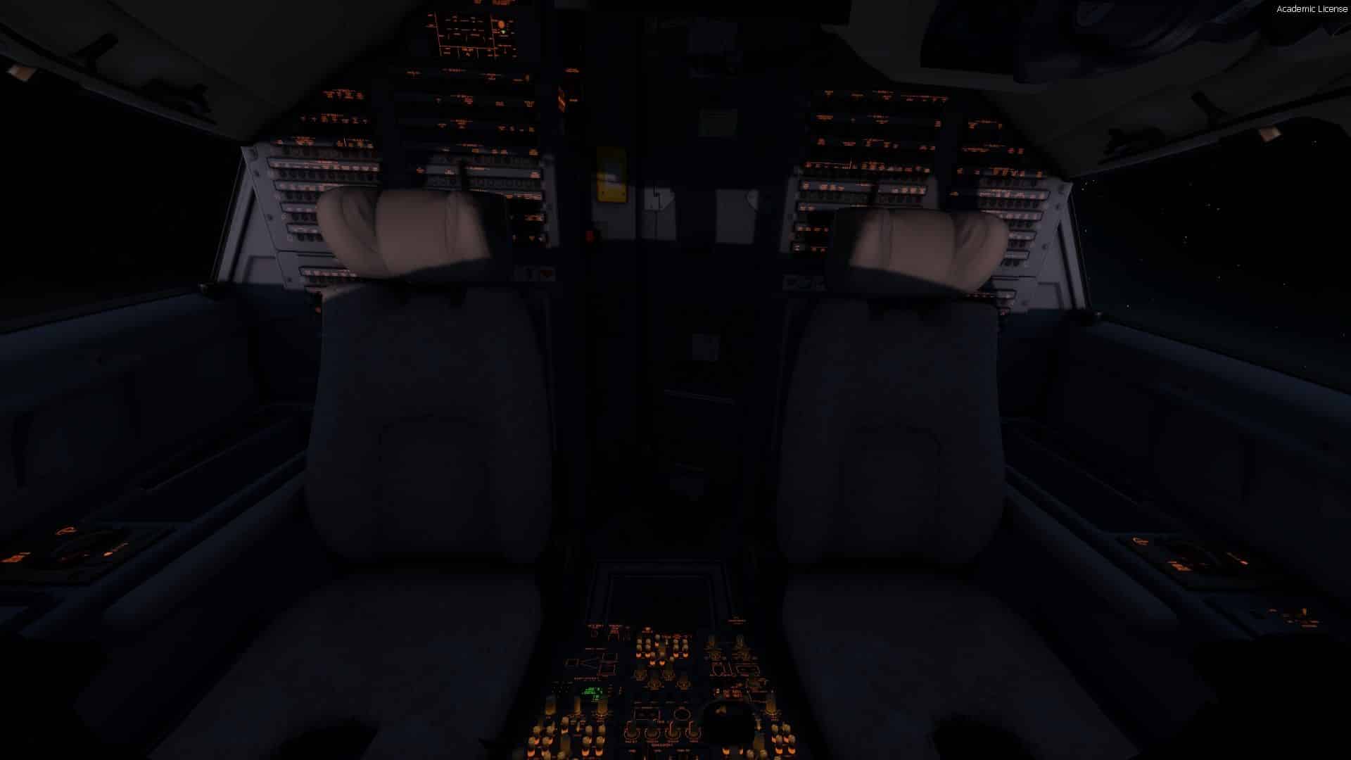 Die Innenbeleuchtung überzeugt sogar noch mehr. Durch stimmige Farben und gute Kontraste entsteht im dunklen Cockpit eine tolle Nacht-Atmosphäre. Alle Bedienelemente sind auch gut texturiert und verarbeitet, sodass man keine Probleme mit der Lesbarkeit hat. Der Workflow wird in keiner Weise gestört. Alle Lampen und Lichtquellen im Cockpit wurden von Aerosoft funktional umgesetzt. Verschiedene Dome-Lights und Leseichter sind ebenso einschaltbar, wie die Beleuchtung der Sicherungen hinter dem Sitz. Einziger Minuspunkt ist die fehlende Möglichkeit der Helligkeitsanpassung. Zwar sind die Lichter wie im Original über Drehschalter zu bedienen, allerdings gibt es nur ein An, oder Aus. Dimmen kann man das Licht nicht. Trotzdem überzeugt das CRJ-Cockpit des Nachts voll und ganz. Es sieht gut aus, schafft Atmosphäre und ist weiterhin gut zu bedienen. Da machen Nachtflüge Spaß!
