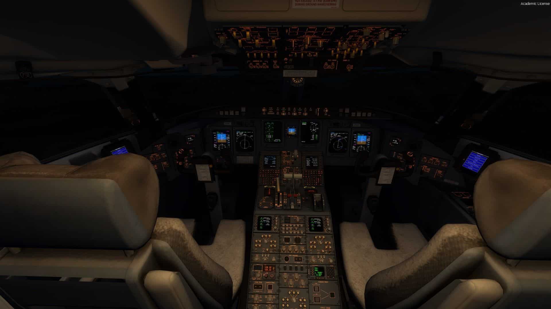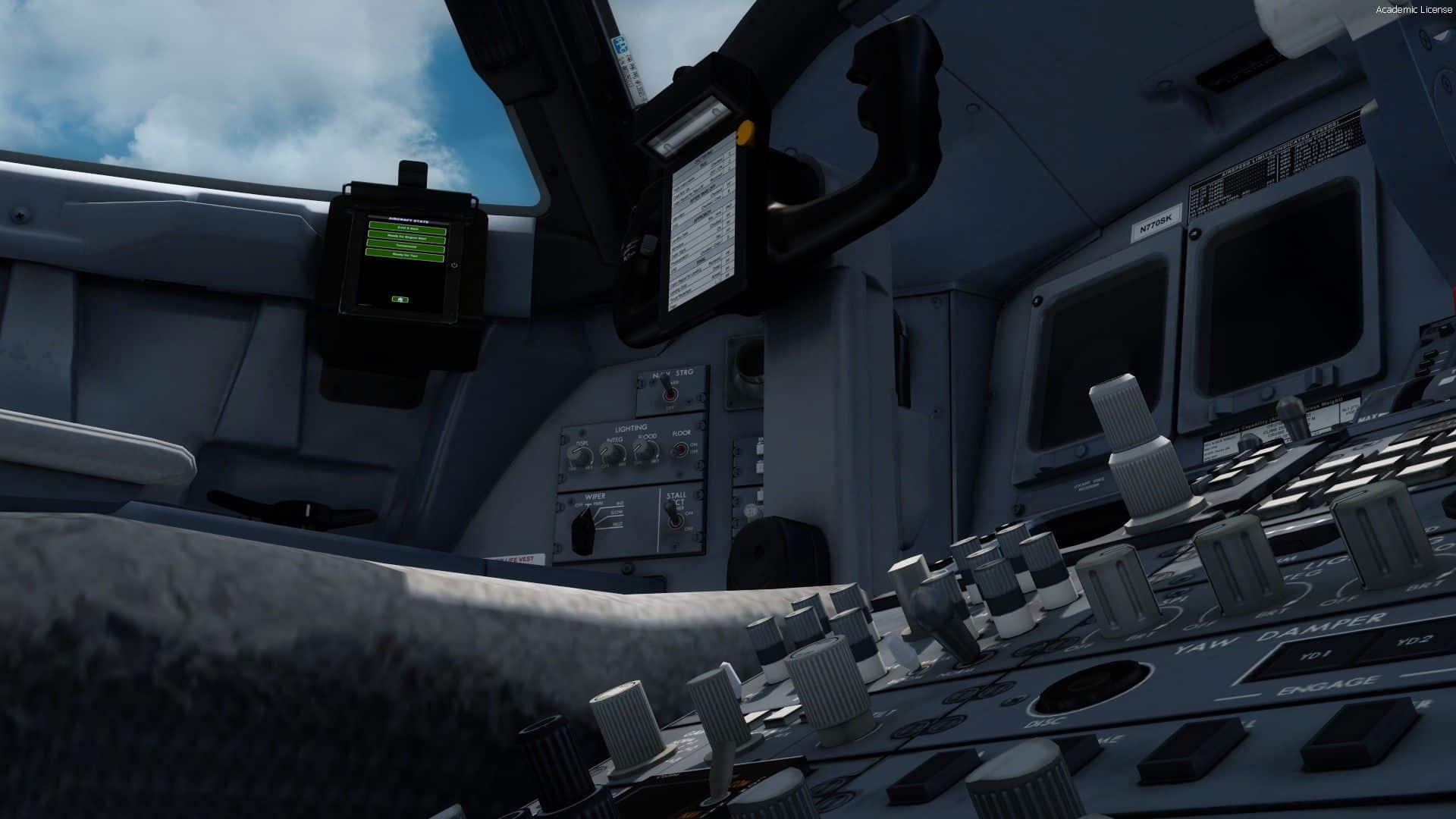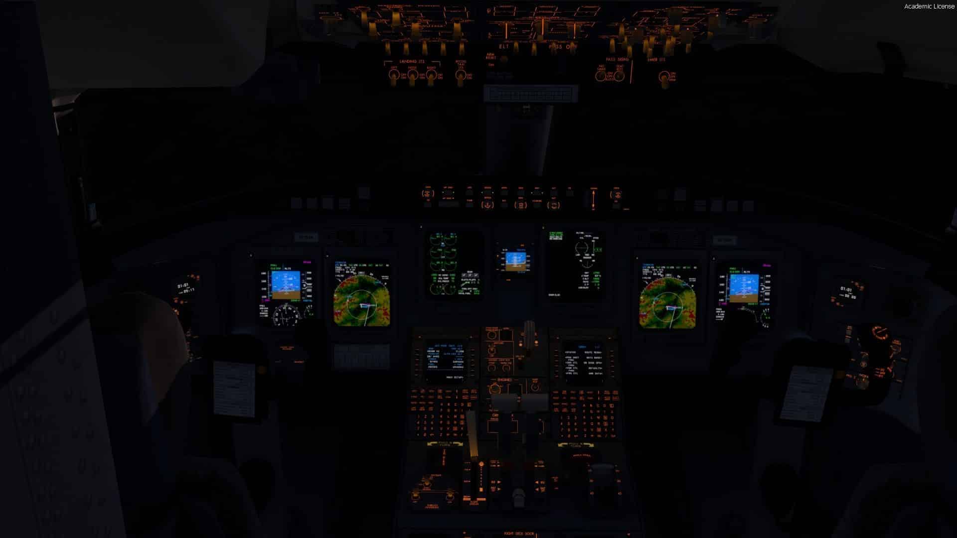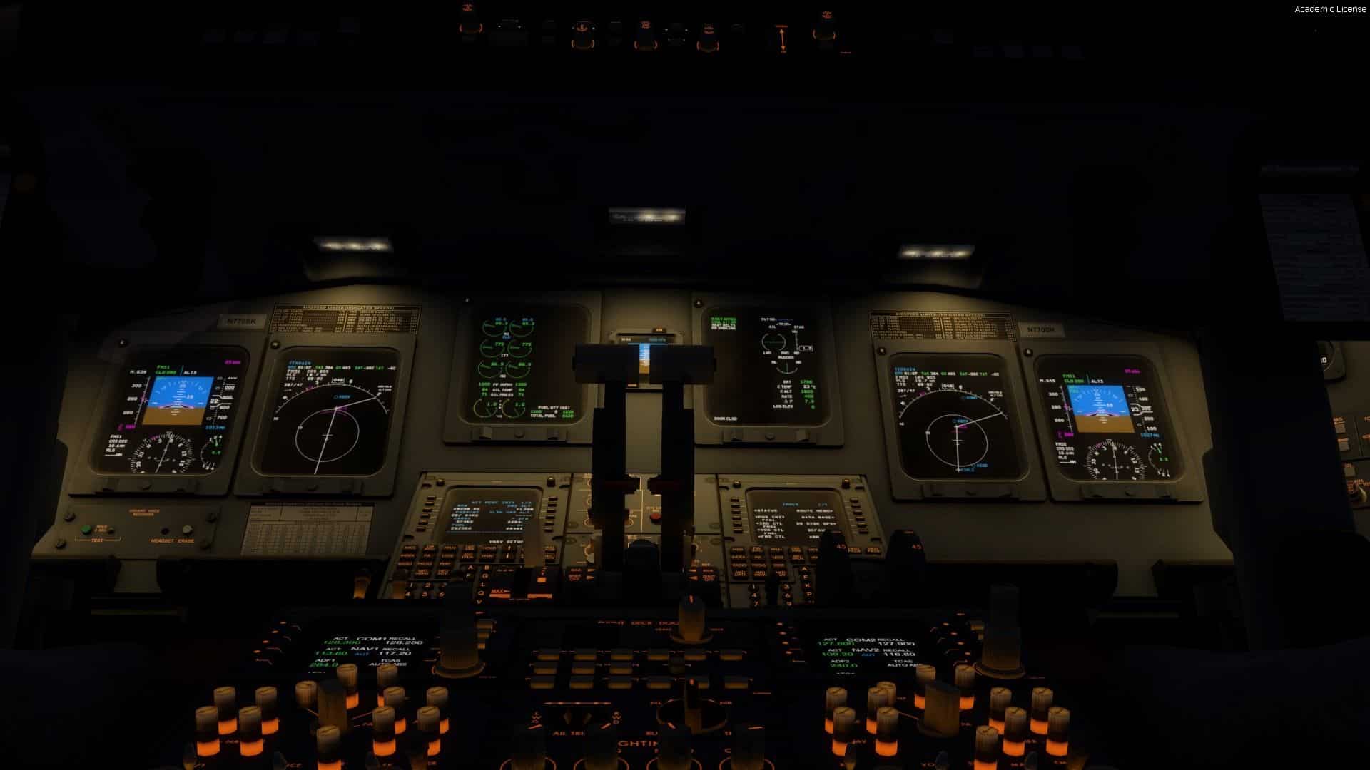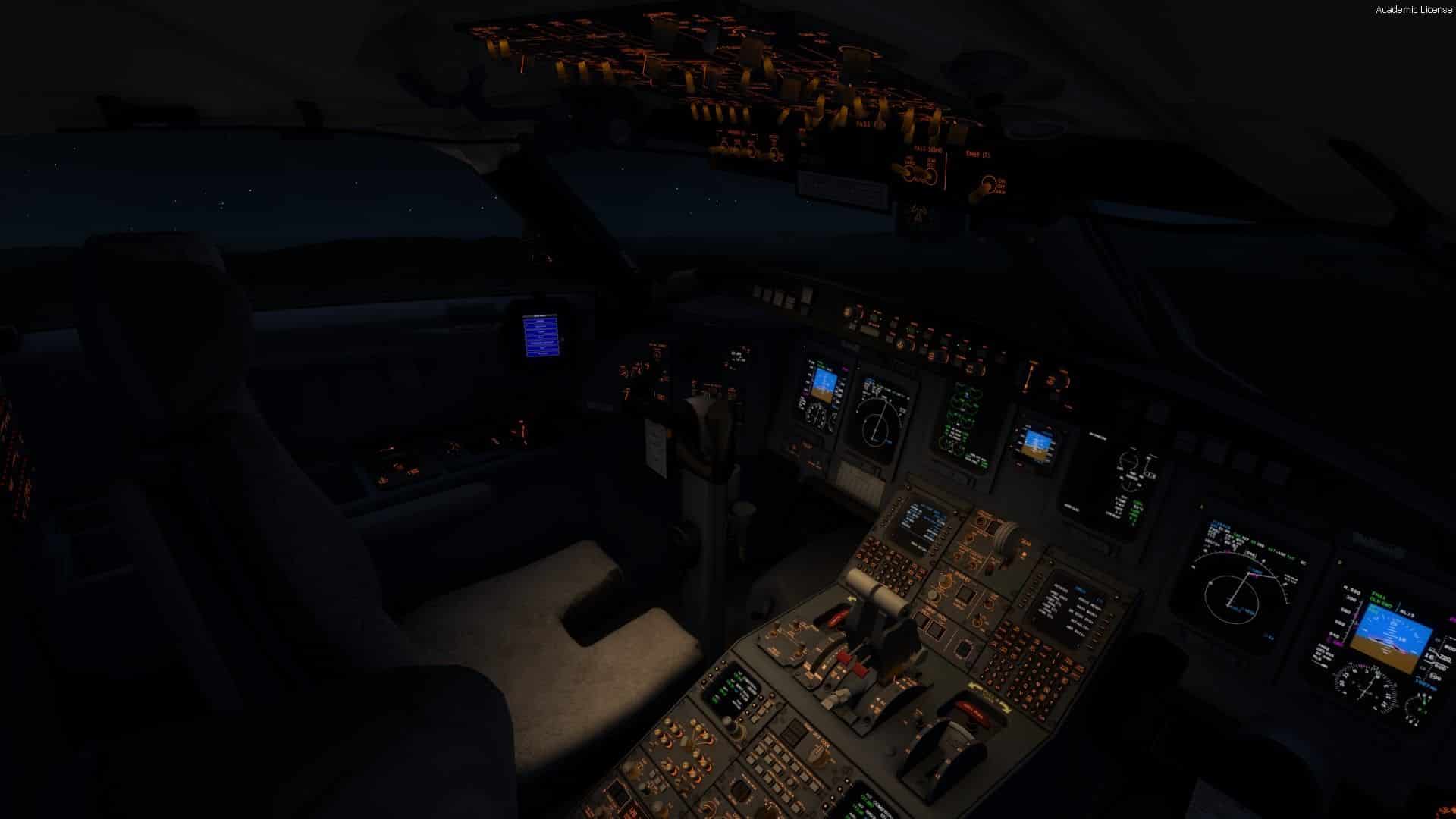 Die Innenbeleuchtung überzeugt sogar noch mehr. Durch stimmige Farben und gute Kontraste entsteht im dunklen Cockpit eine tolle Nacht-Atmosphäre. Alle Bedienelemente sind auch gut texturiert und verarbeitet, sodass man keine Probleme mit der Lesbarkeit hat. Der Workflow wird in keiner Weise gestört. Alle Lampen und Lichtquellen im Cockpit wurden von Aerosoft funktional umgesetzt. Verschiedene Dome-Lights und Leseichter sind ebenso einschaltbar, wie die Beleuchtung der Sicherungen hinter dem Sitz. Einziger Minuspunkt ist die fehlende Möglichkeit der Helligkeitsanpassung. Zwar sind die Lichter wie im Original über Drehschalter zu bedienen, allerdings gibt es nur ein An, oder Aus. Dimmen kann man das Licht nicht. Trotzdem überzeugt das CRJ-Cockpit des Nachts voll und ganz. Es sieht gut aus, schafft Atmosphäre und ist weiterhin gut zu bedienen. Da machen Nachtflüge Spaß!